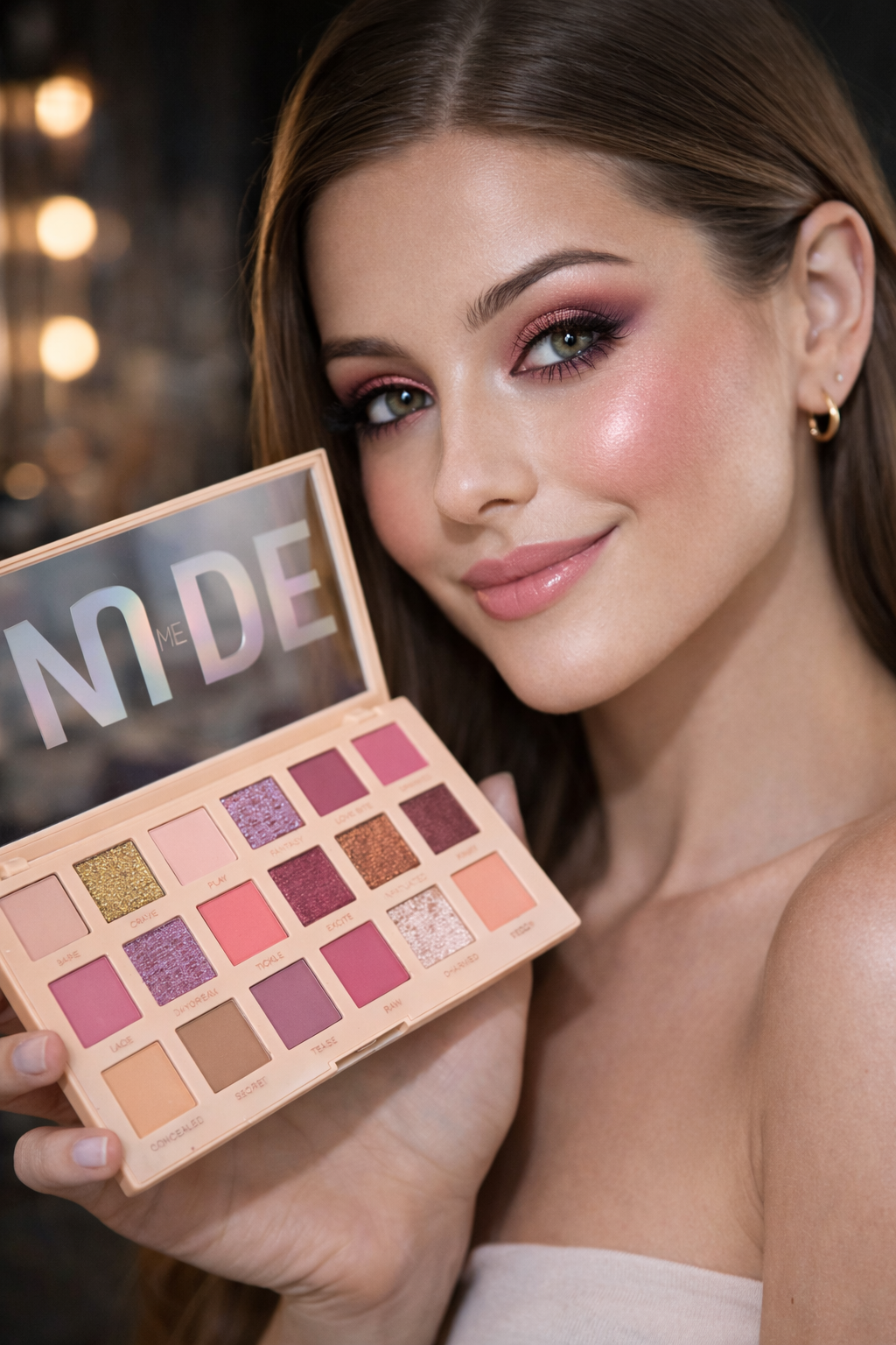 Nude, pembe, bordo, kahve ve altın tonları sayesinde doğal gündüz makyajından yoğun gece makyajına kadar farklı stiller oluşturulabilir.