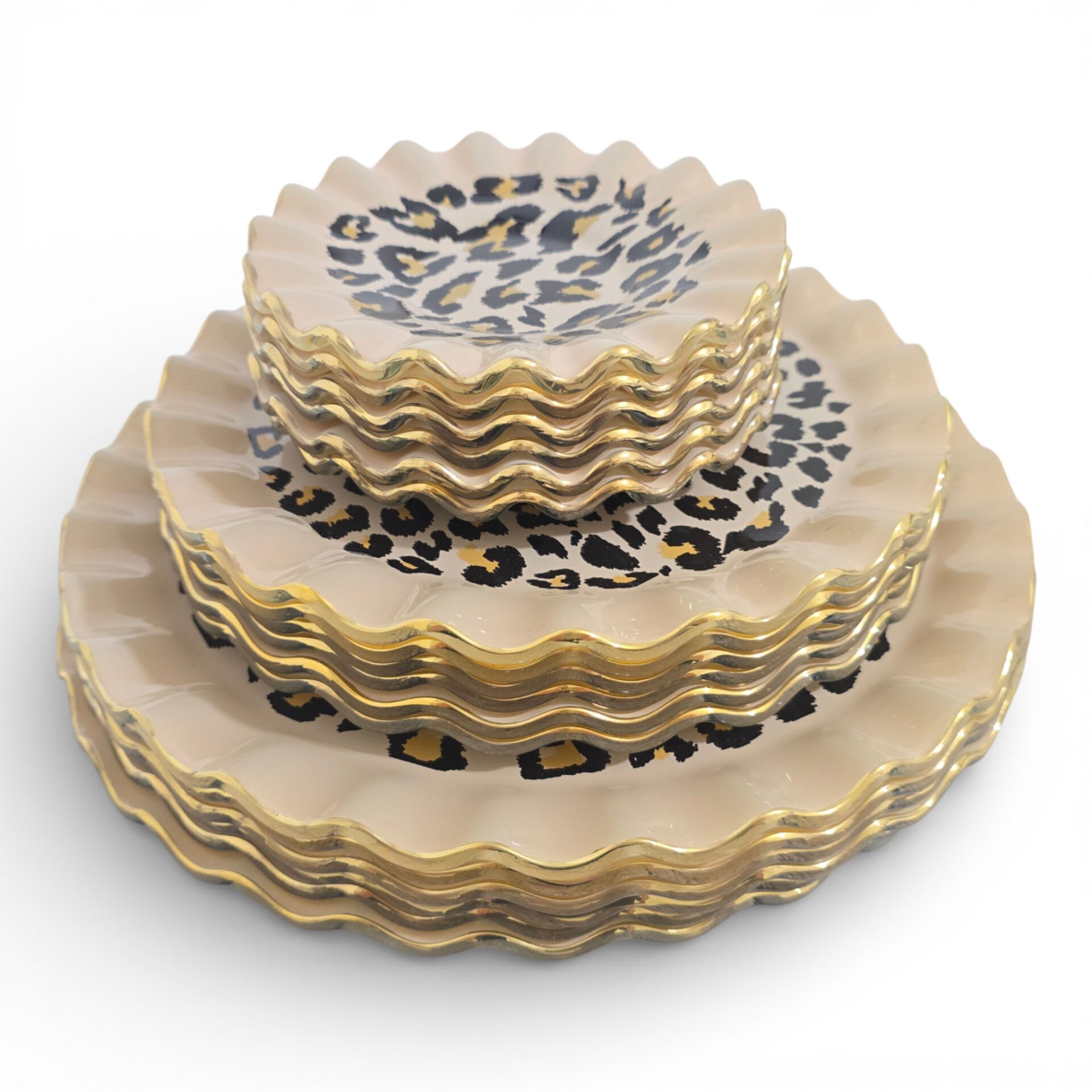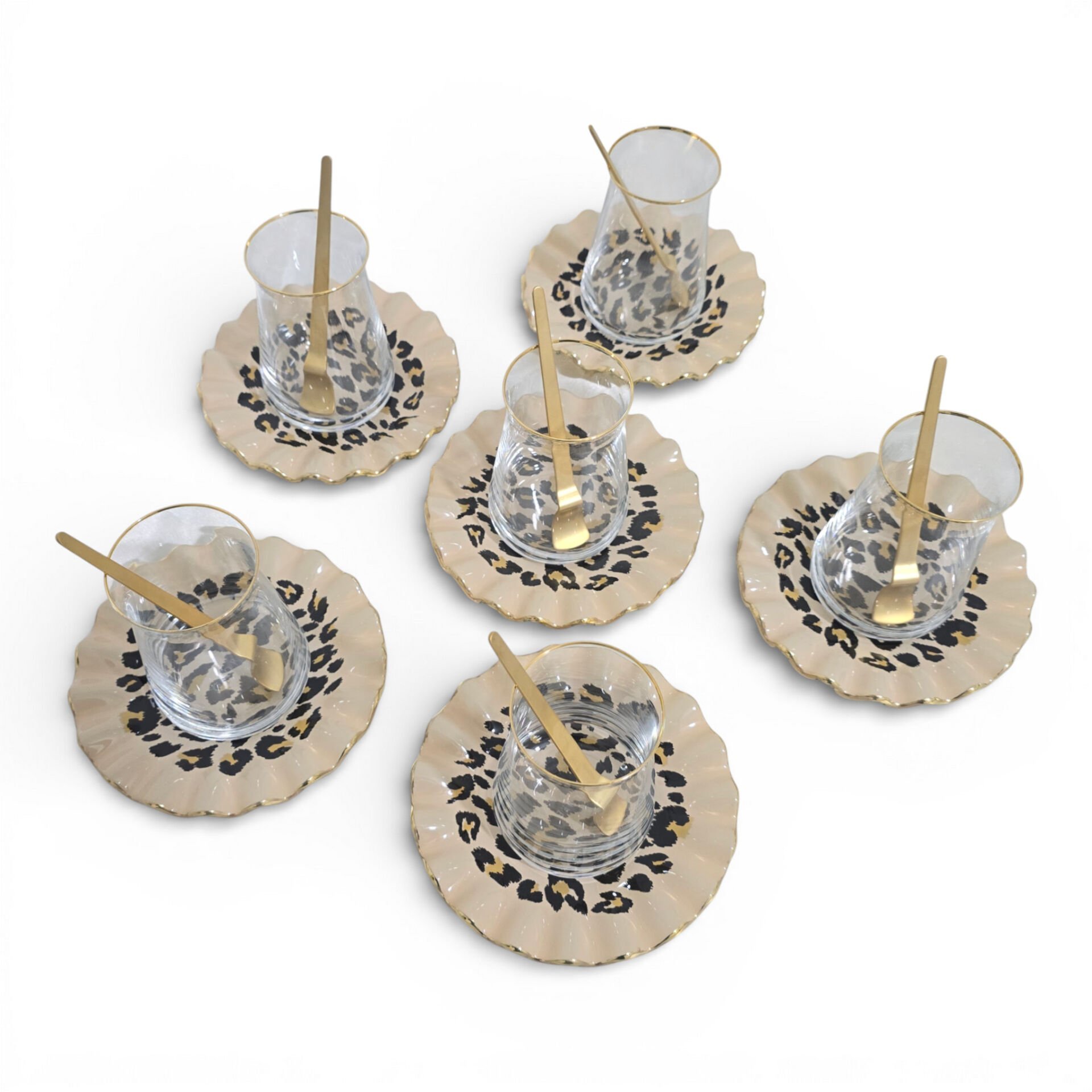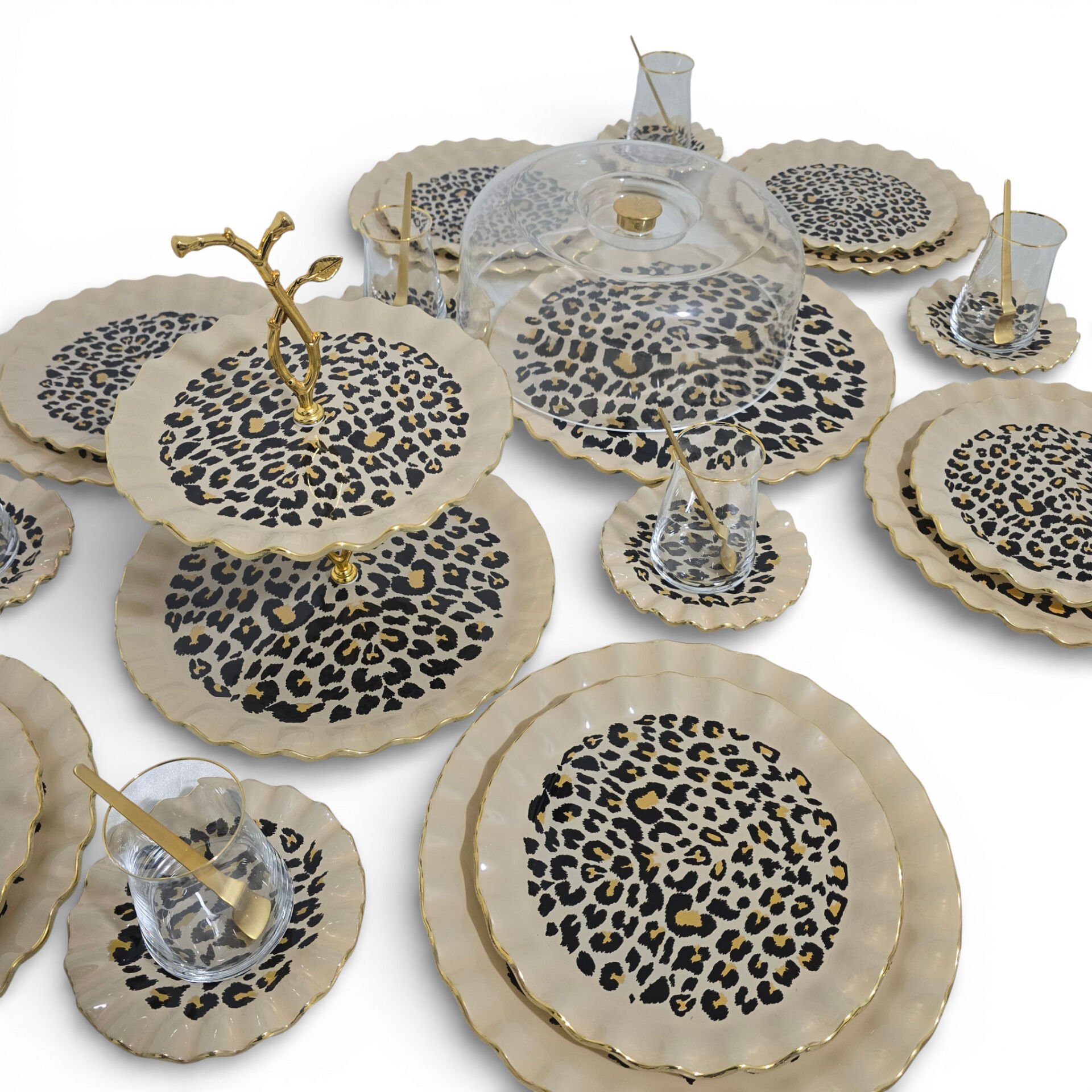 Sudedİ Home Leopar Desenli Gerçek Altın Yaldızlı 34 Parça Çay Pasta İkram Seti 6 Kişilik