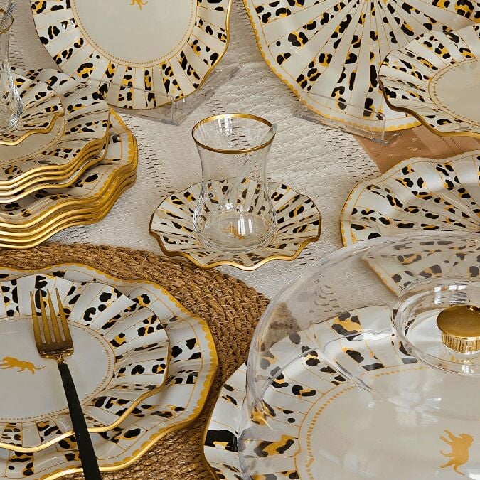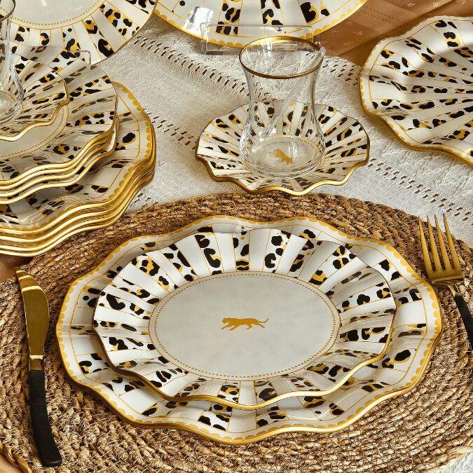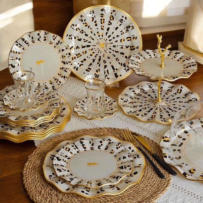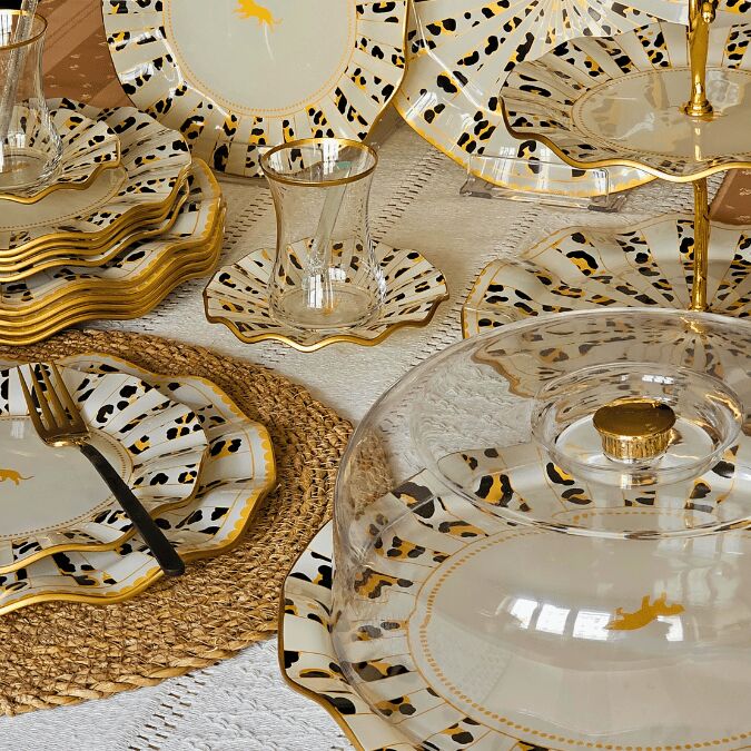 Altın Yaldızlı 6 Kişilik 34 Parça Pasta Çay Servis İkram Takımı