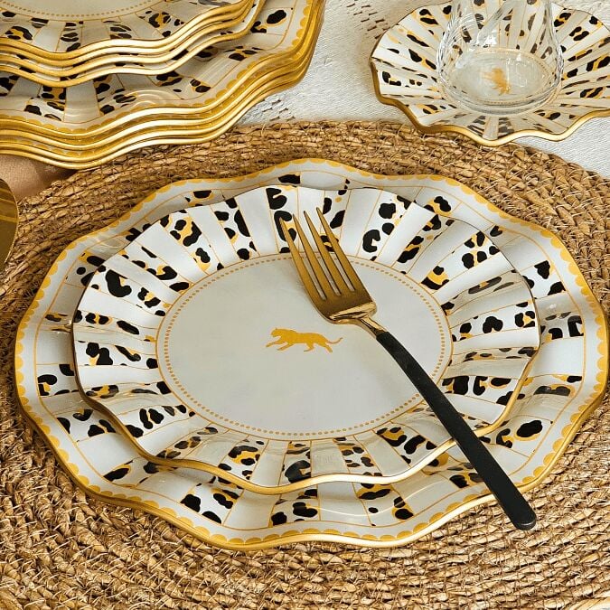 6 adet 21cm altın yaldızlı cam pasta tabağı