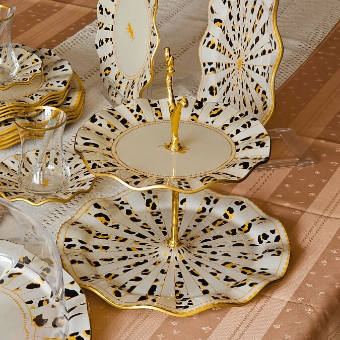 1 adet 31cm altın yaldızlı cam kek tepsisi