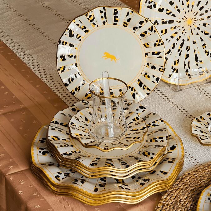 34 Parça Mayon Krem Surf altın Yaldızlı Çay Servis İkram Takımı