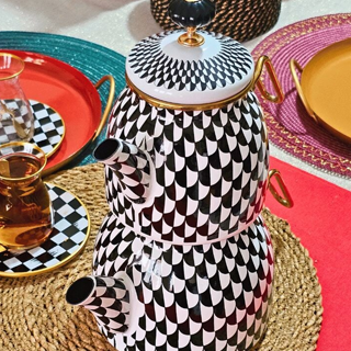 ACAR Kitchen Beyond Dama Desen Siyah-krem Mini Emaye Çaydanlık Takımı 5758