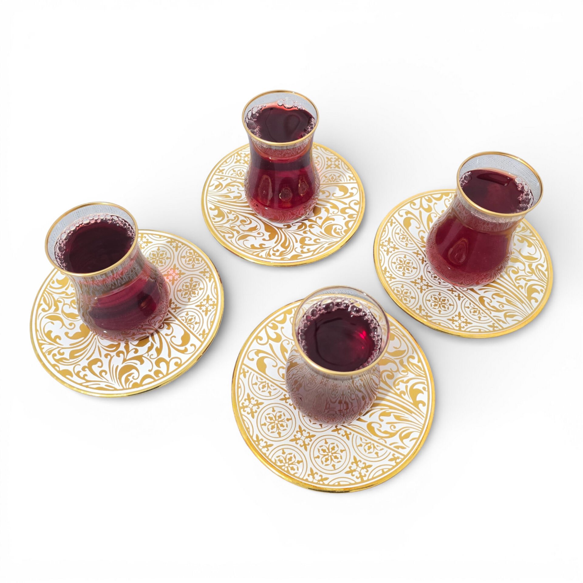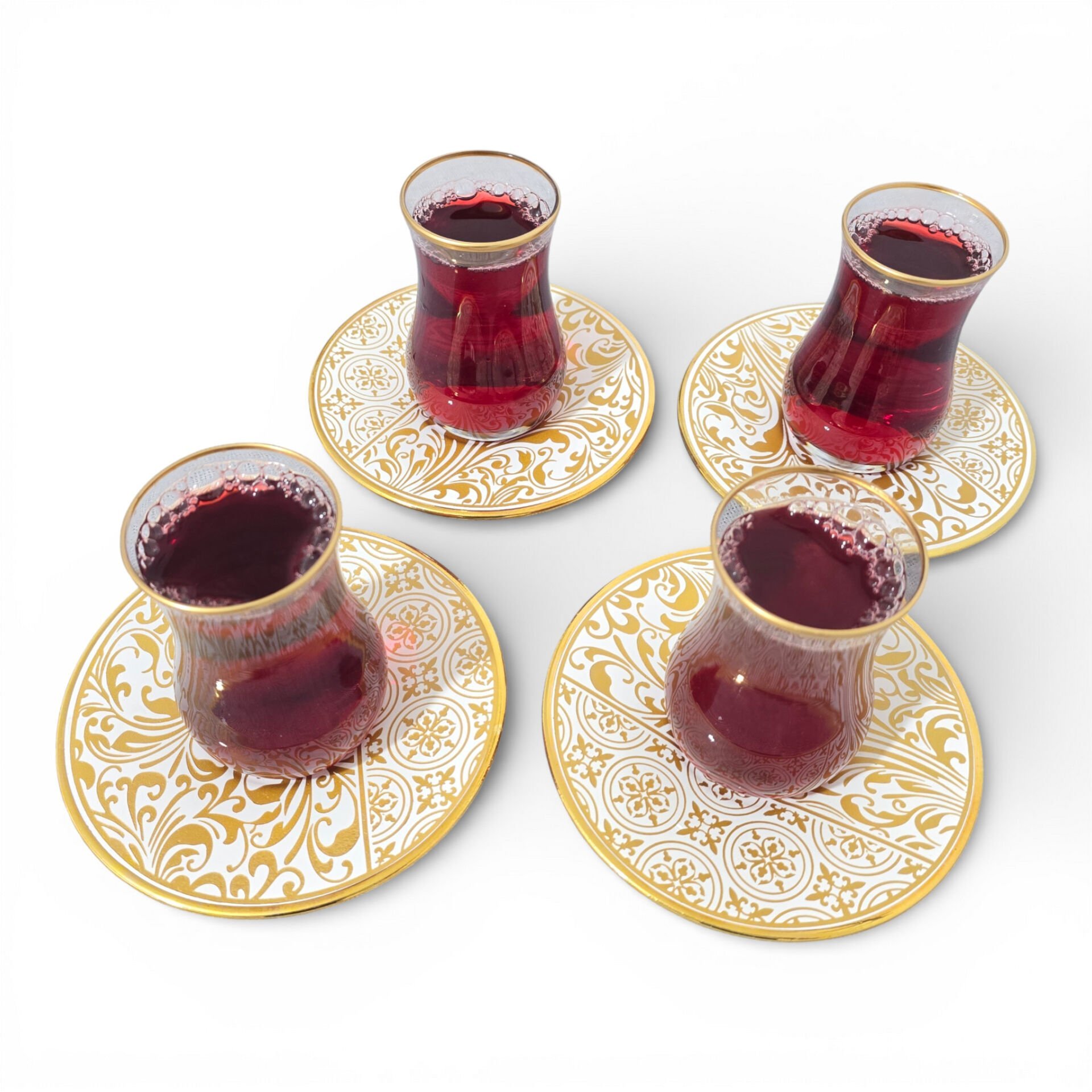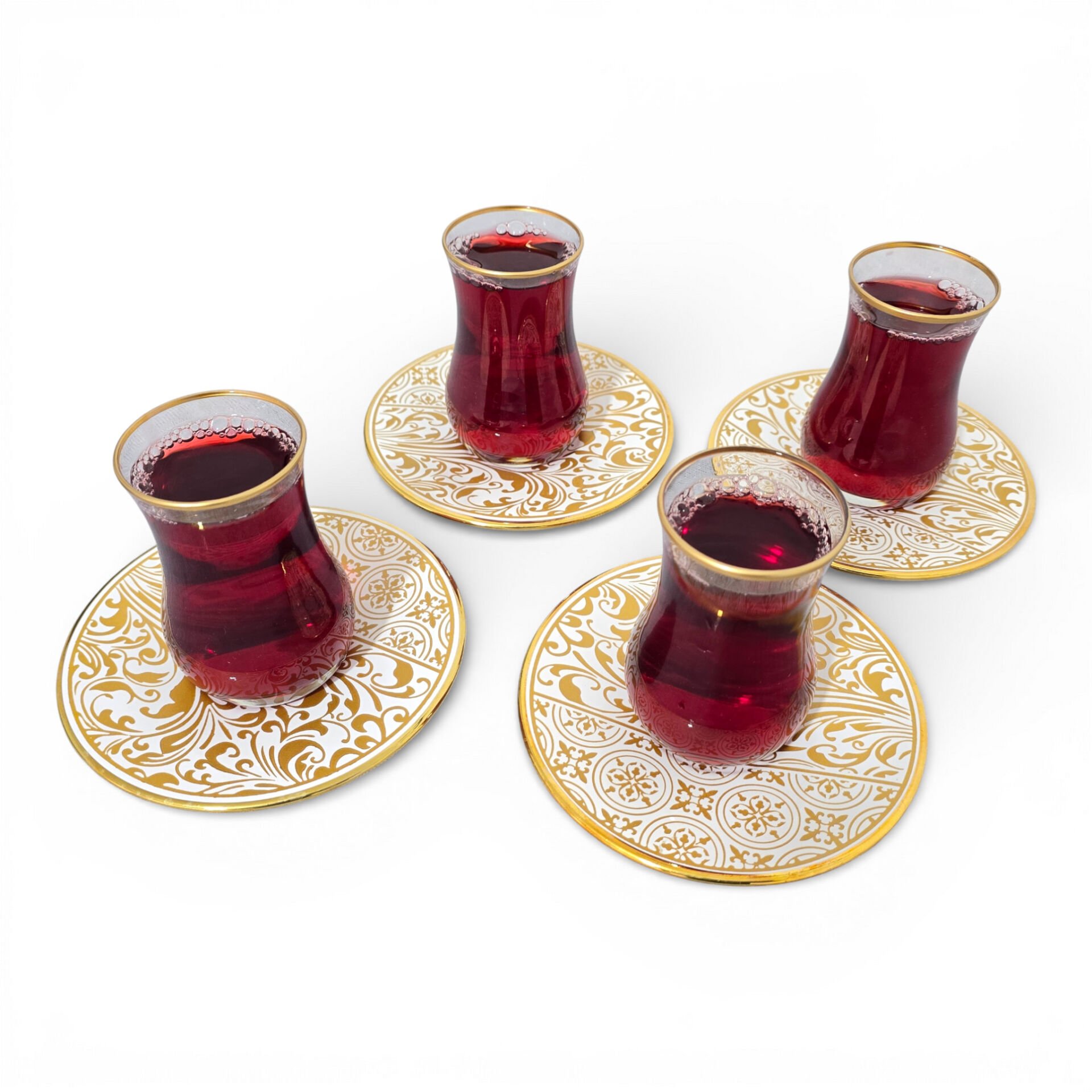 Sudedi Home Gold Yaldızlı Çay Bardağı Seti 4 Kişilik – Porselen Tabaklı | Hediyeli