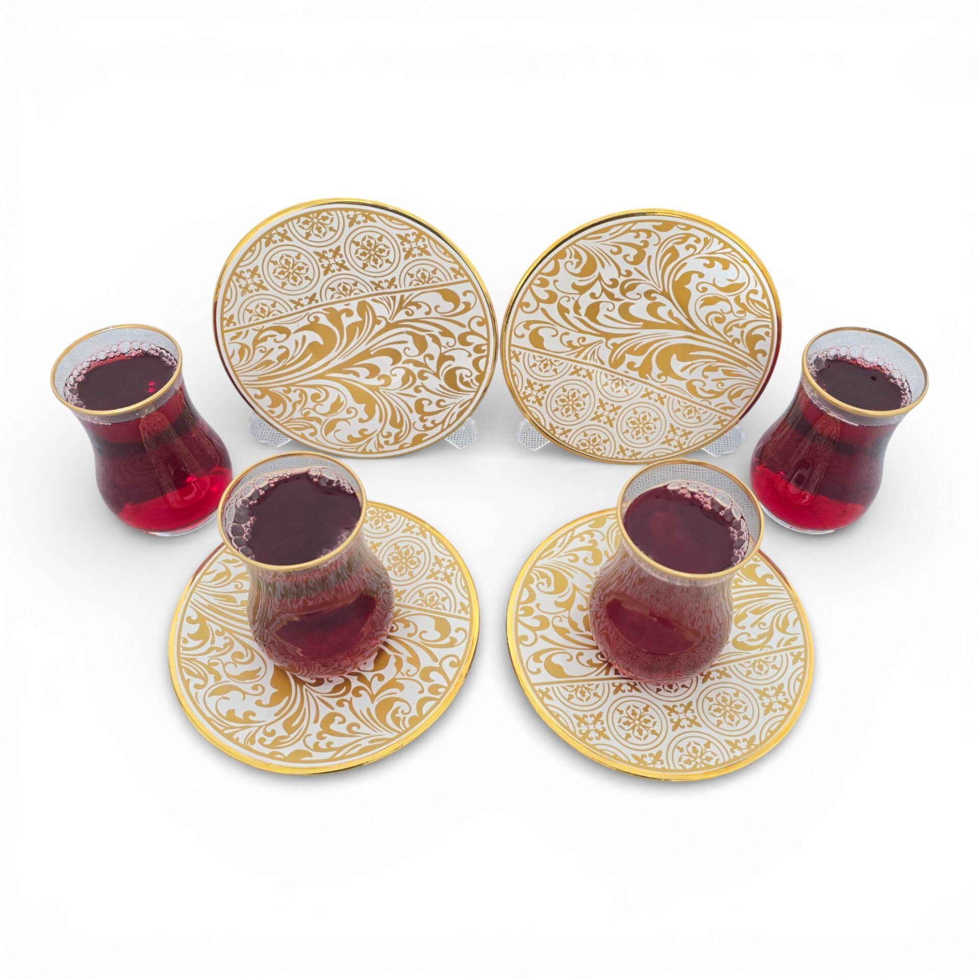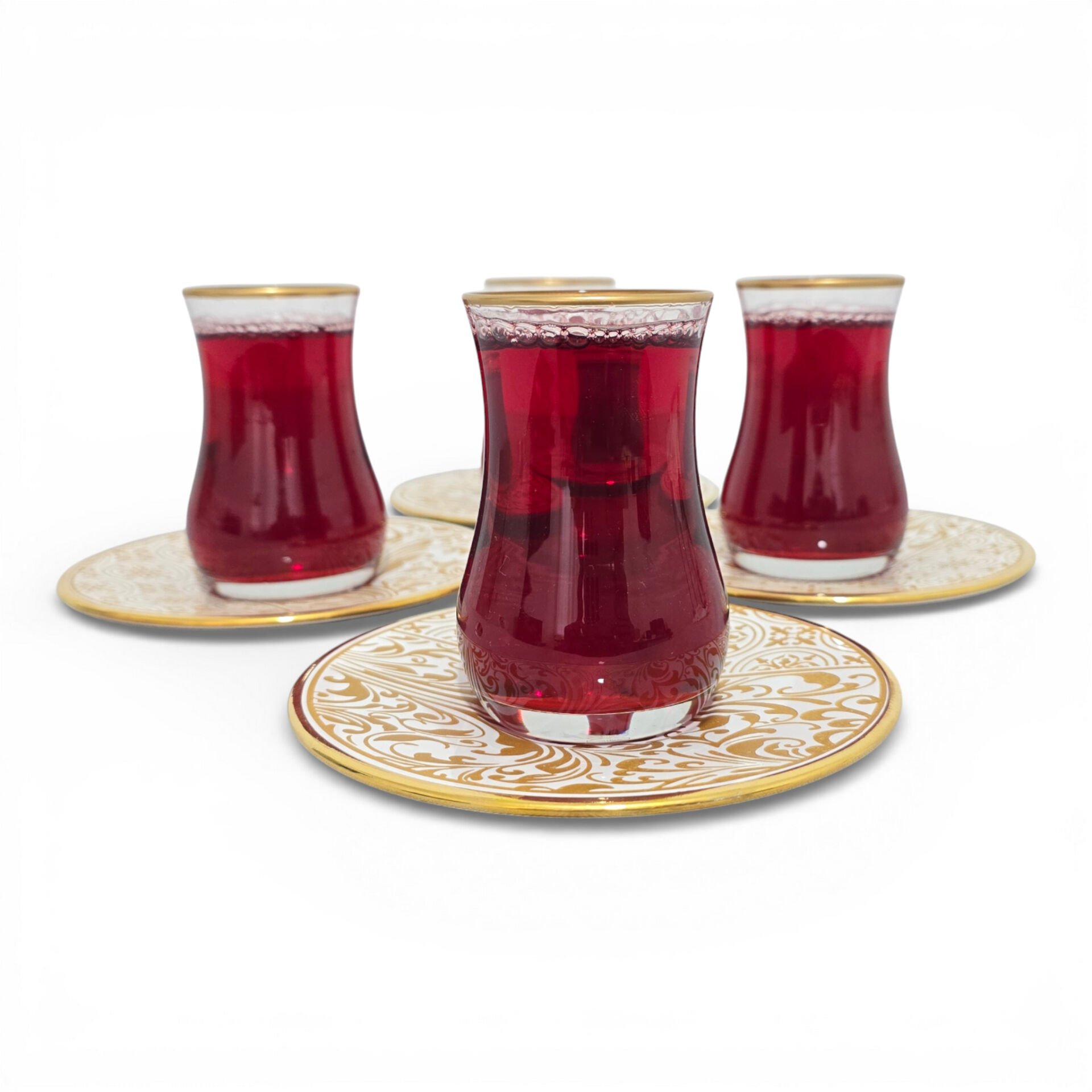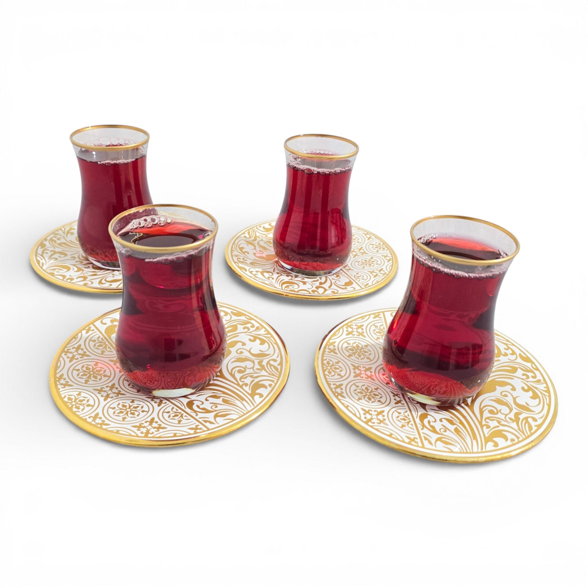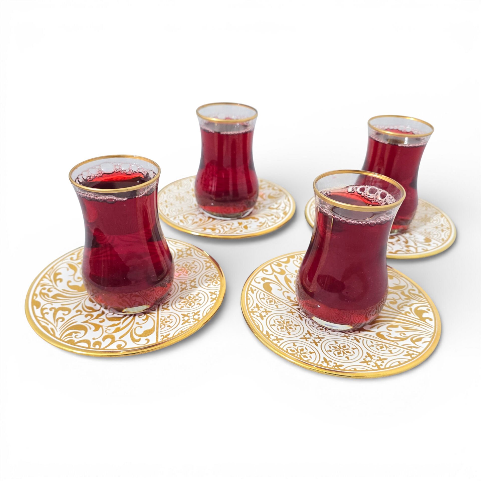 Sudedi Home Gold Yaldızlı Çay Bardağı Seti 4 Kişilik – Porselen Tabaklı | Hediyeli