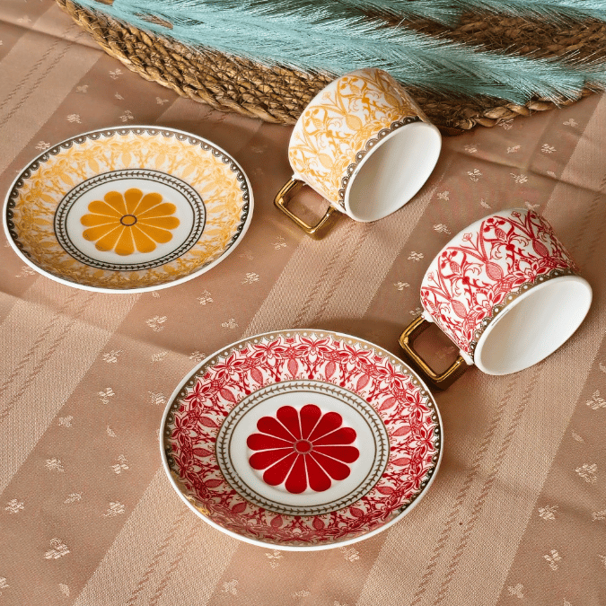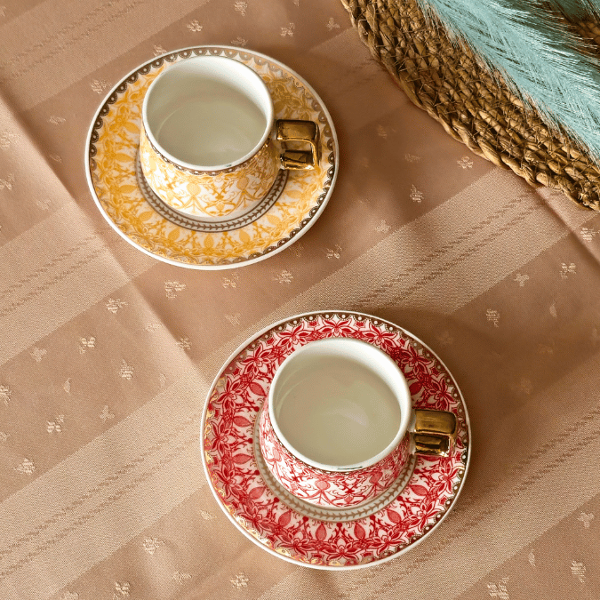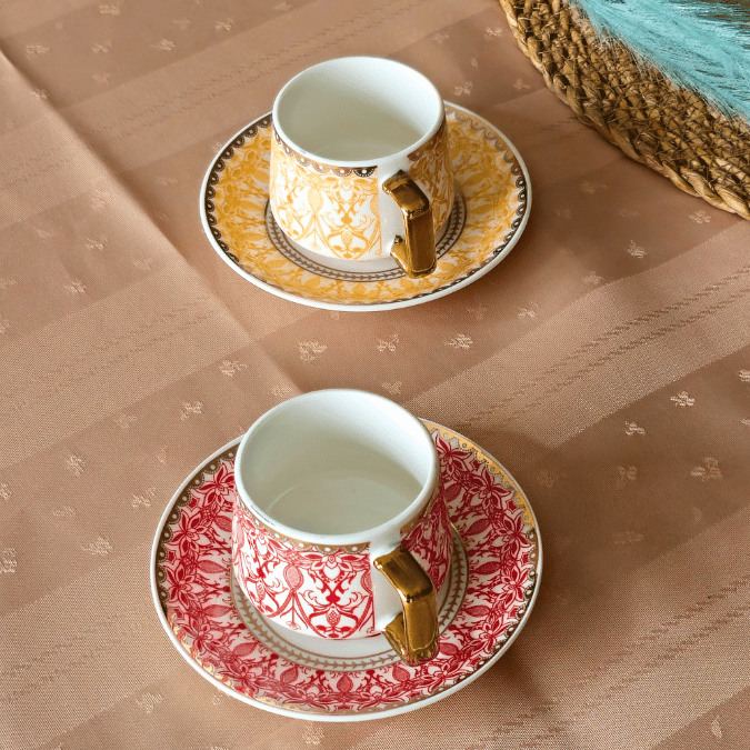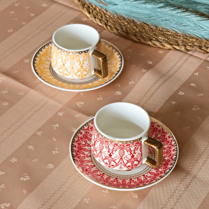 Art Works Renkli 2 Kişilik Porselen Fincan Takımı (Sarı-Kırmızı)