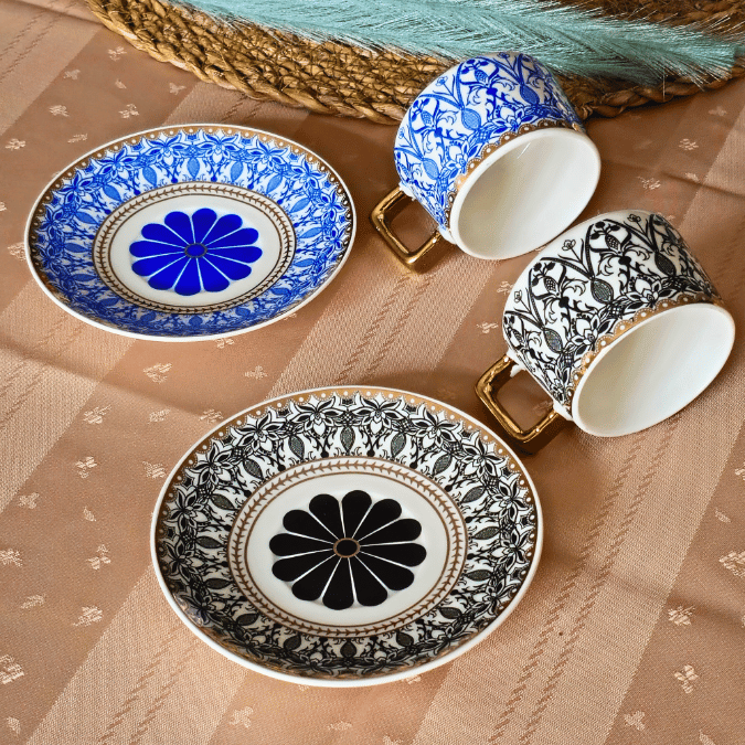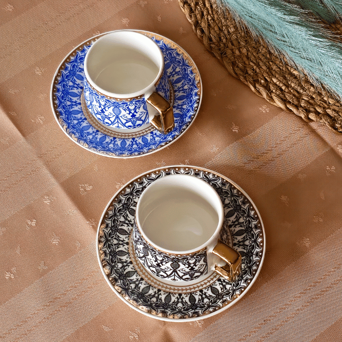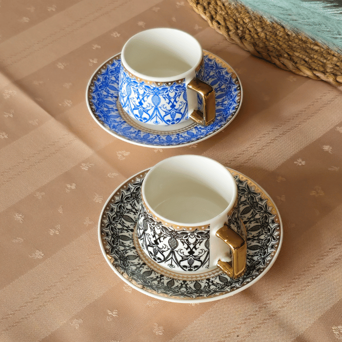 Art Works Renkli 2 Kişilik Porselen Fincan Takımı (Siyah-Mavi)