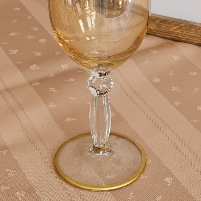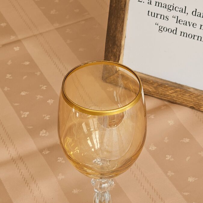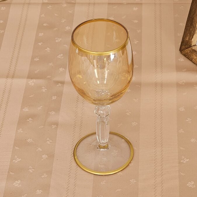 Ayaklı Renkli Gold Detaylı Bardak Kadeh (Sarı) 1 Adet