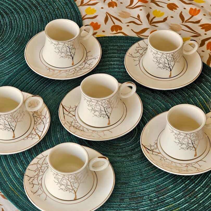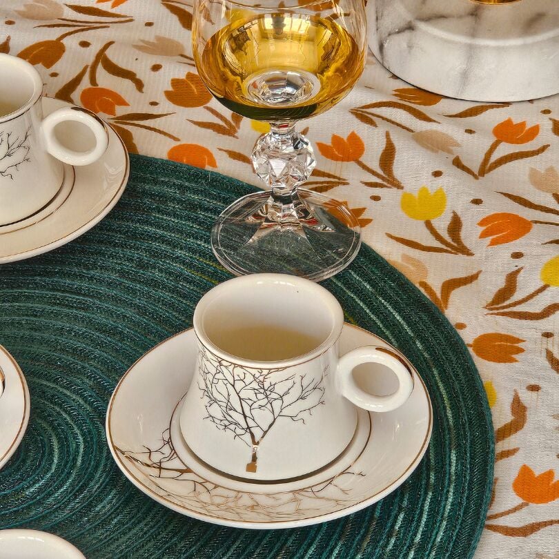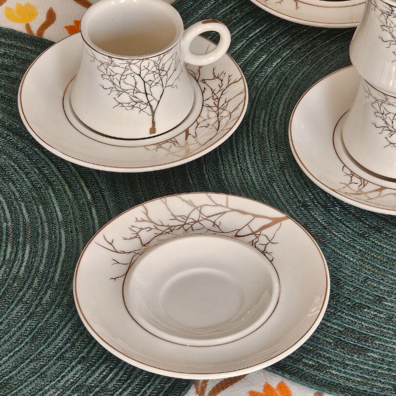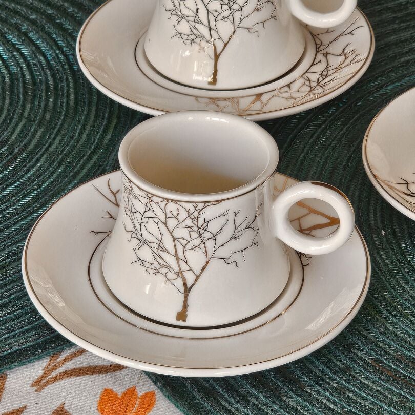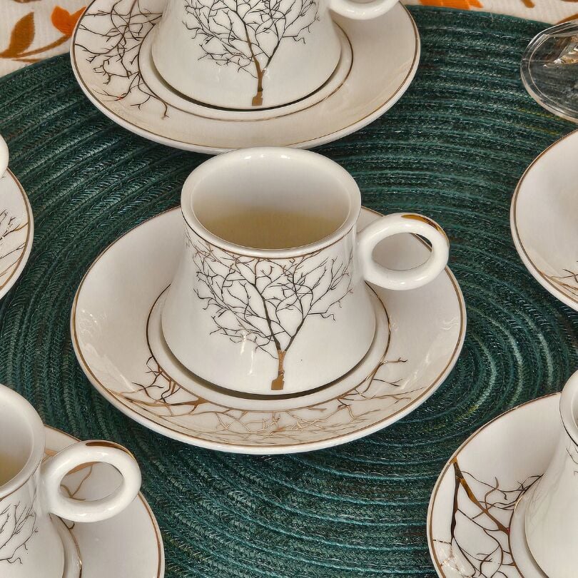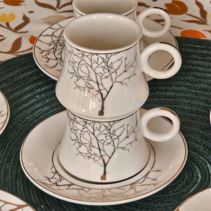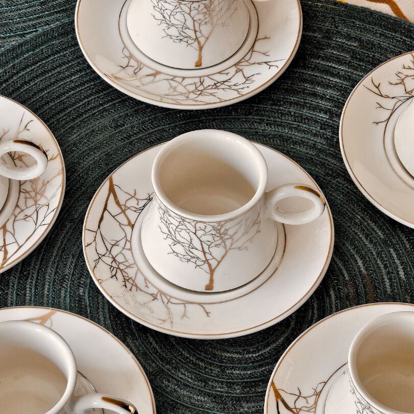Beyaz Altın Ağaç Desen 6 Kişilik Porselen Fincan Takımı TR-3787