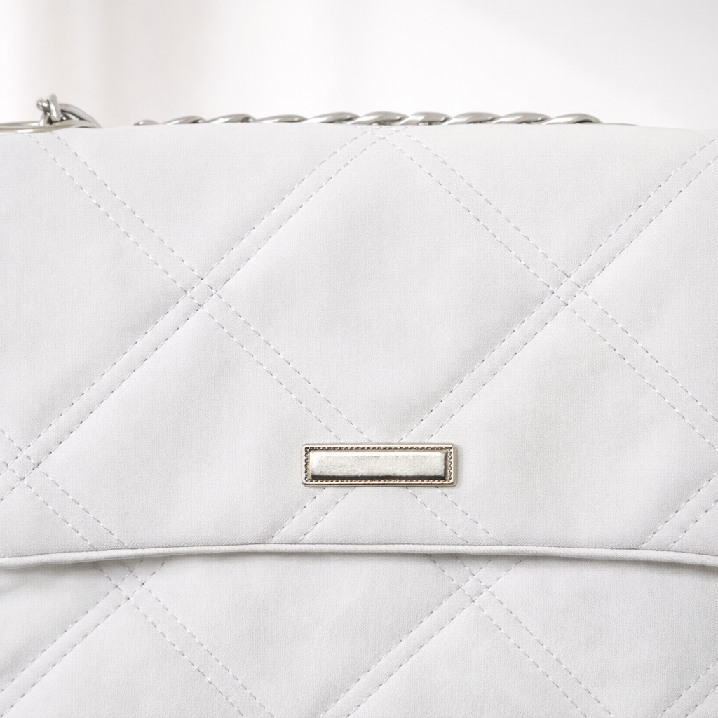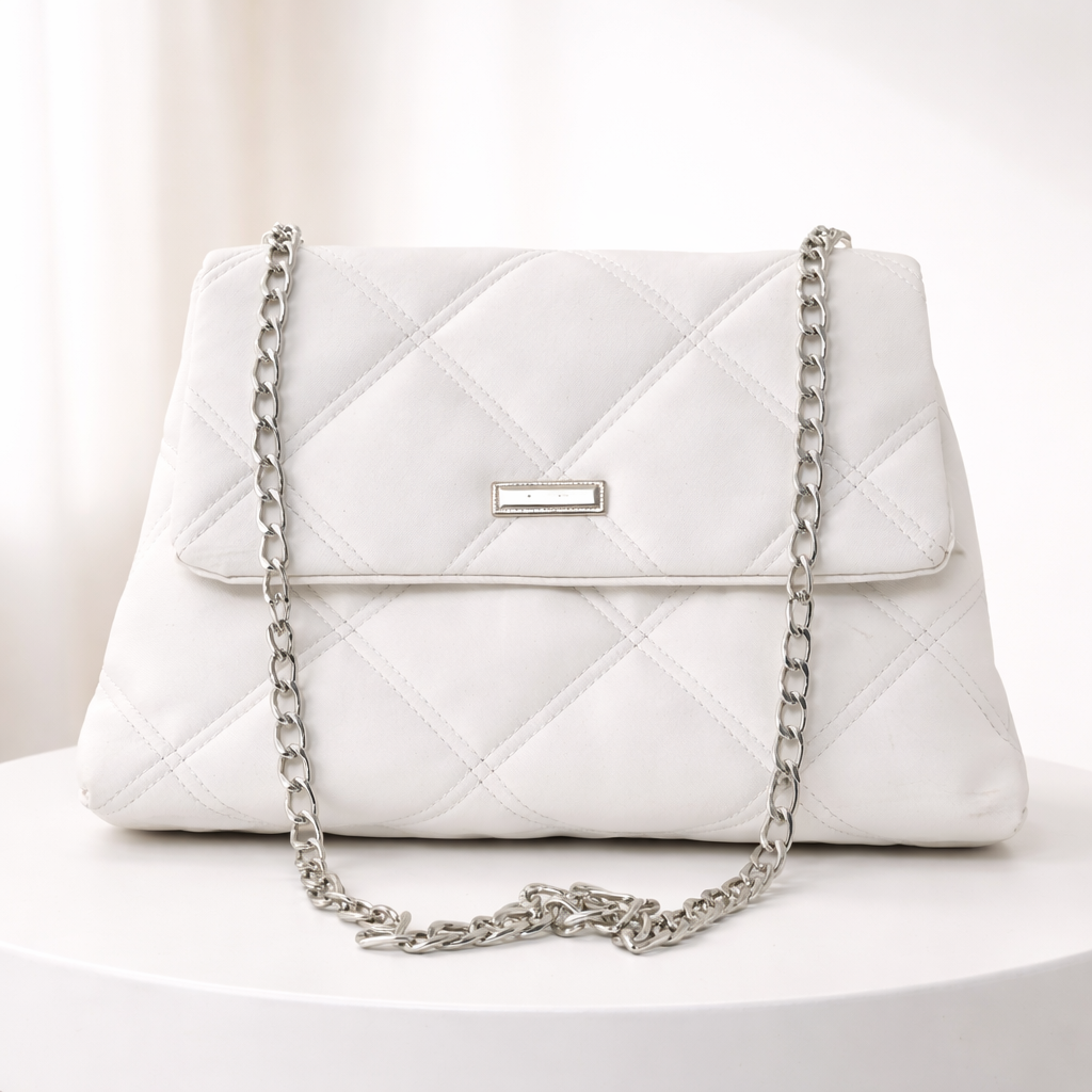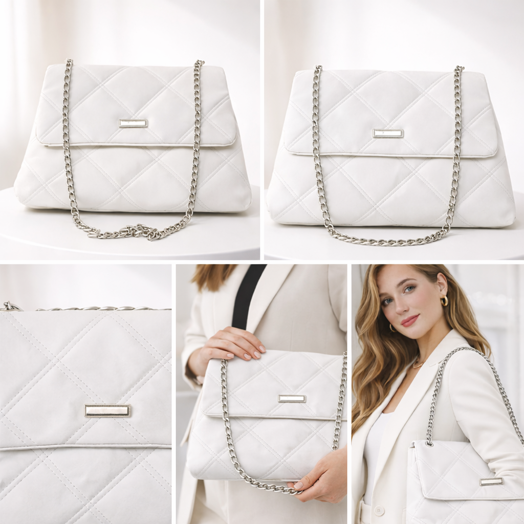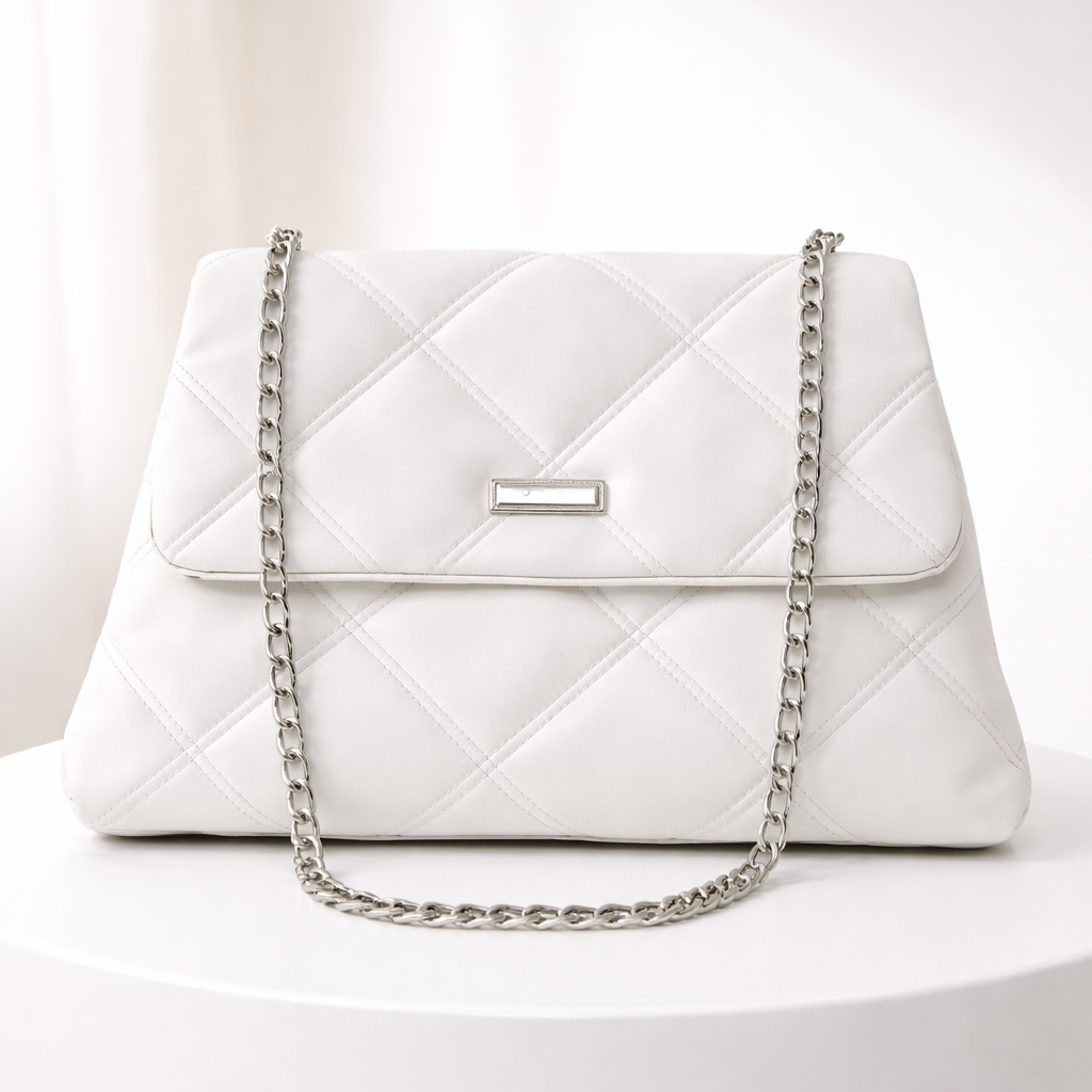 Beyaz Kapitone Zincir Askılı Kadın Omuz Çantası Şık Günlük Kullanım Modern Tasarım Kadın Çanta – Sudedi Home