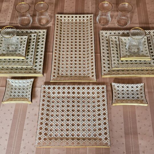 Boabab Kare Opal 31 Parça Altın Yaldızlı 6 Kişilik Kahvaltı Takımı