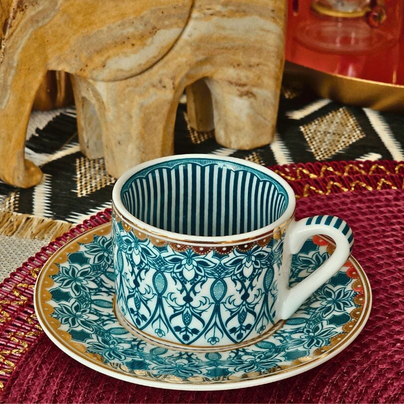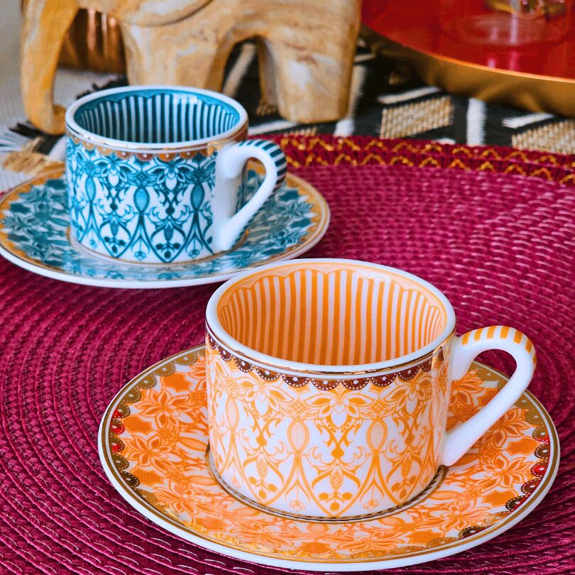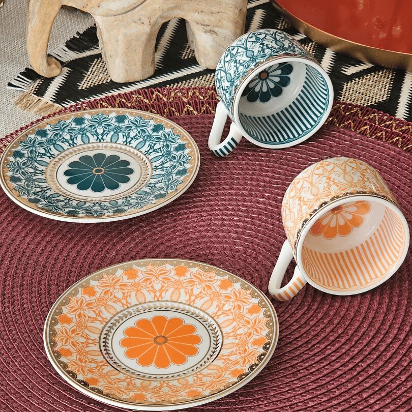 By Como Renkli 2 Kişilik Porselen Fincan Takımı (Turuncu-Yeşil)