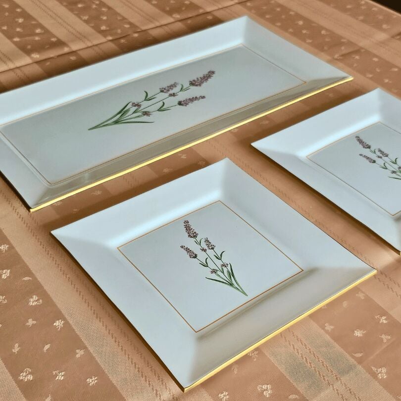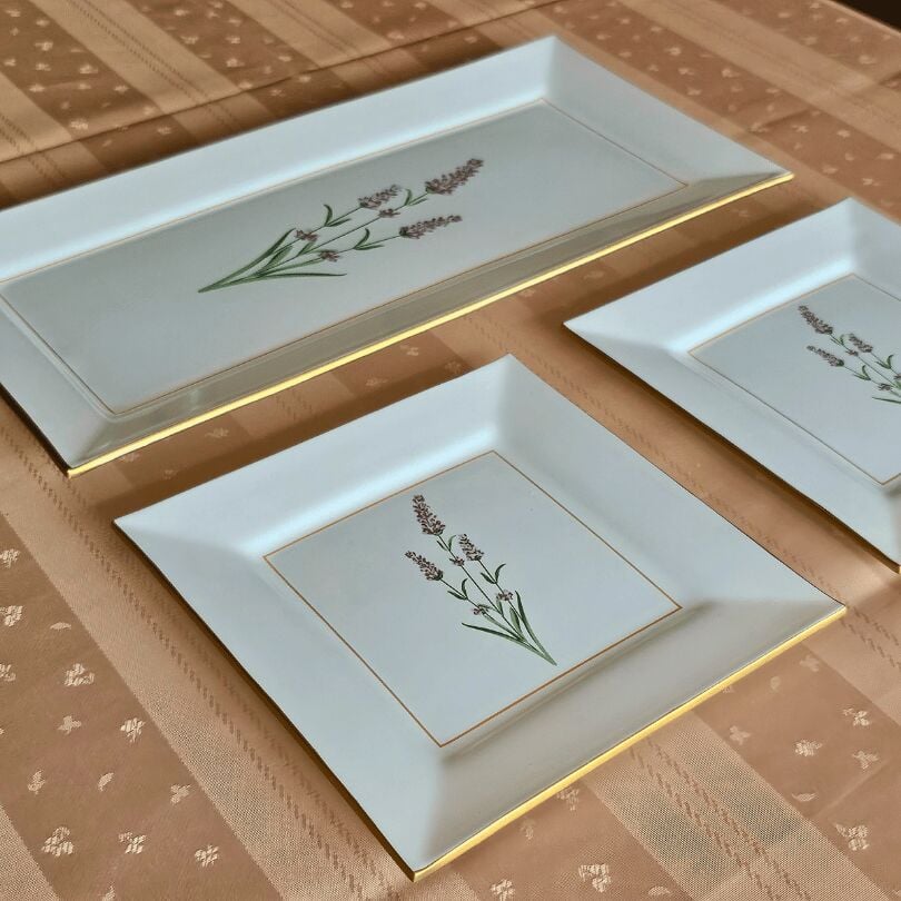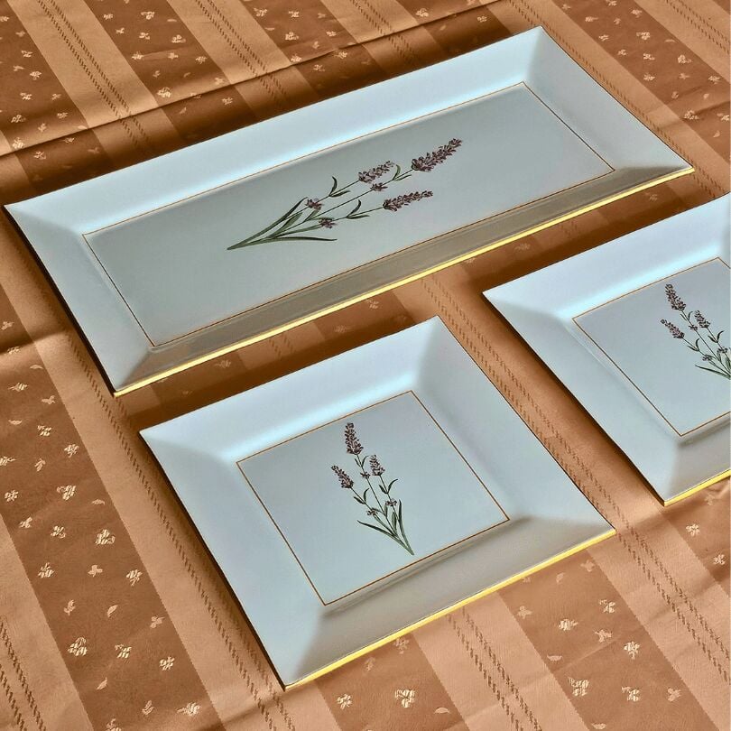Calabria Kare Opal Altın Yaldızlı Baton Tepsi + 2 Adet Pasta Tabağı