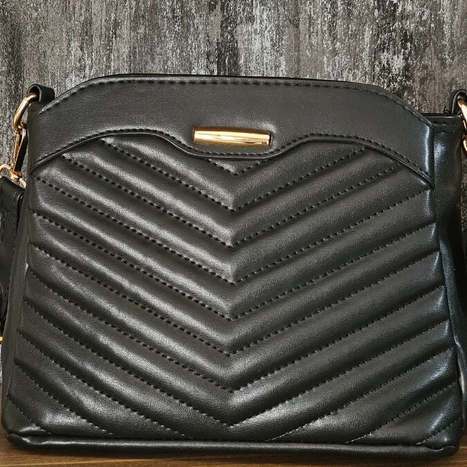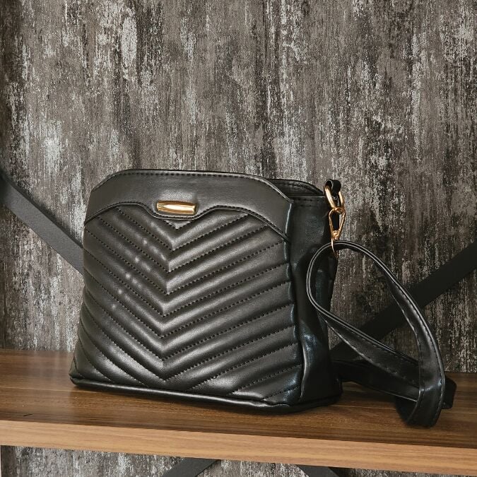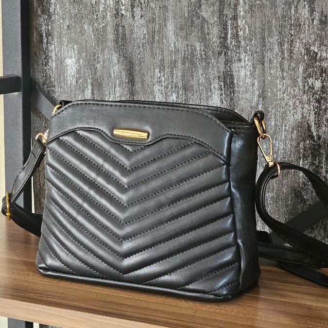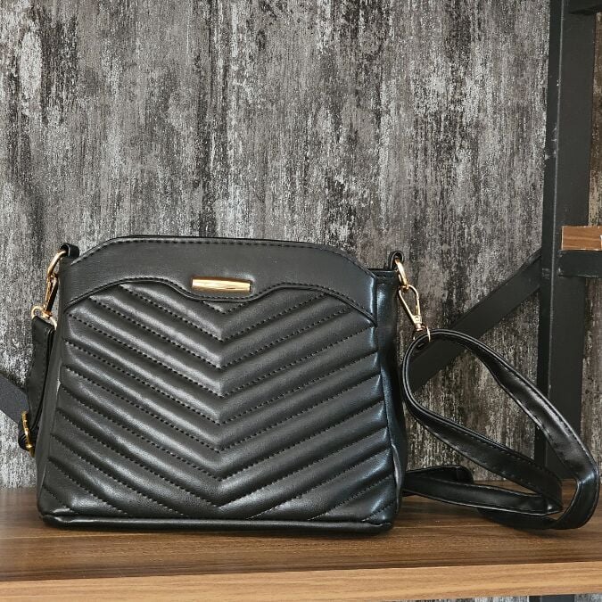 Modern ve dinamik chevron deseniyle dikkat çeken bu omuz çantası, ayarlanabilir askısı sayesinde farklı kullanım stillerine olanak tanır.