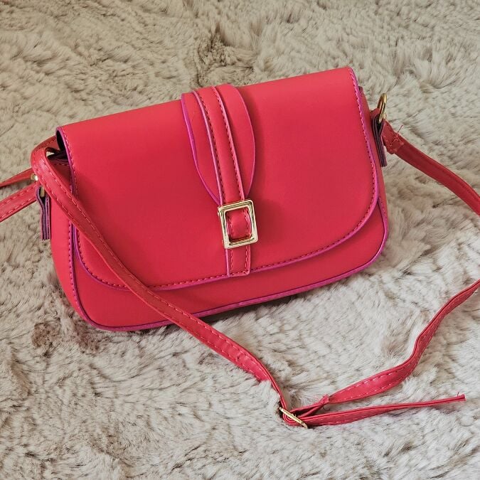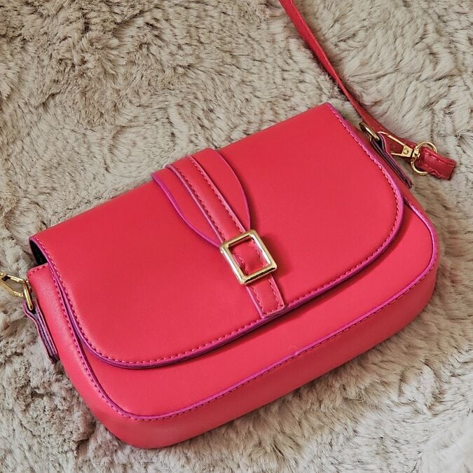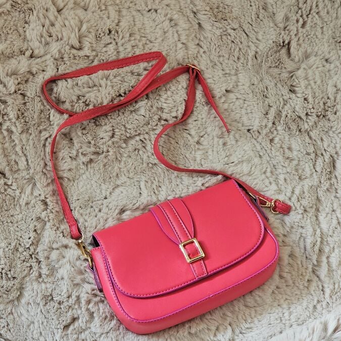 Bu göz alıcı fuşya pembe mini omuz çantası, zarif tokası ve modern kesimiyle öne çıkıyor.