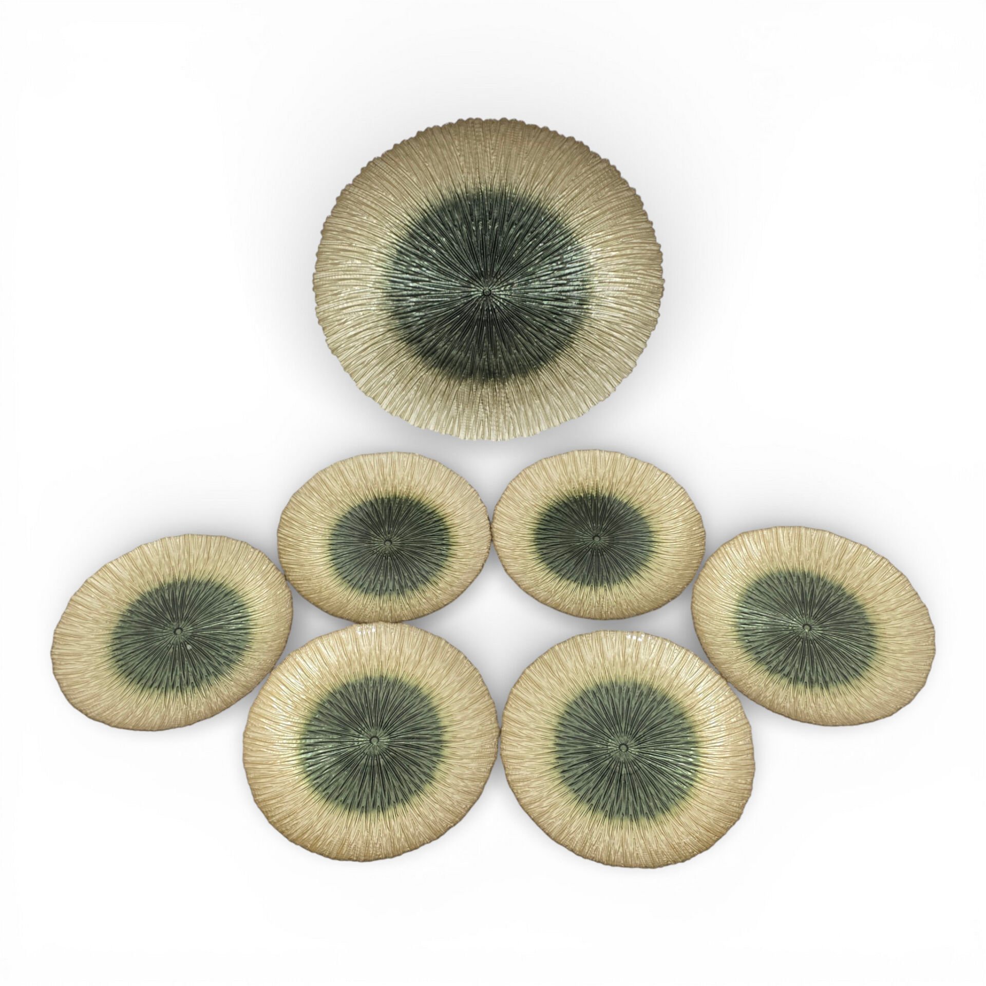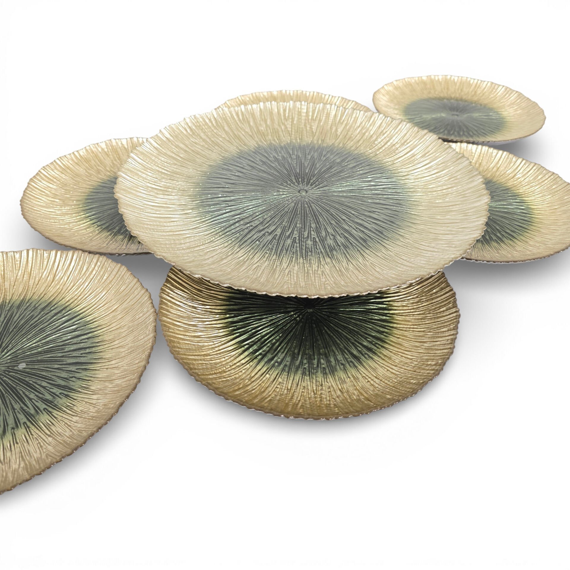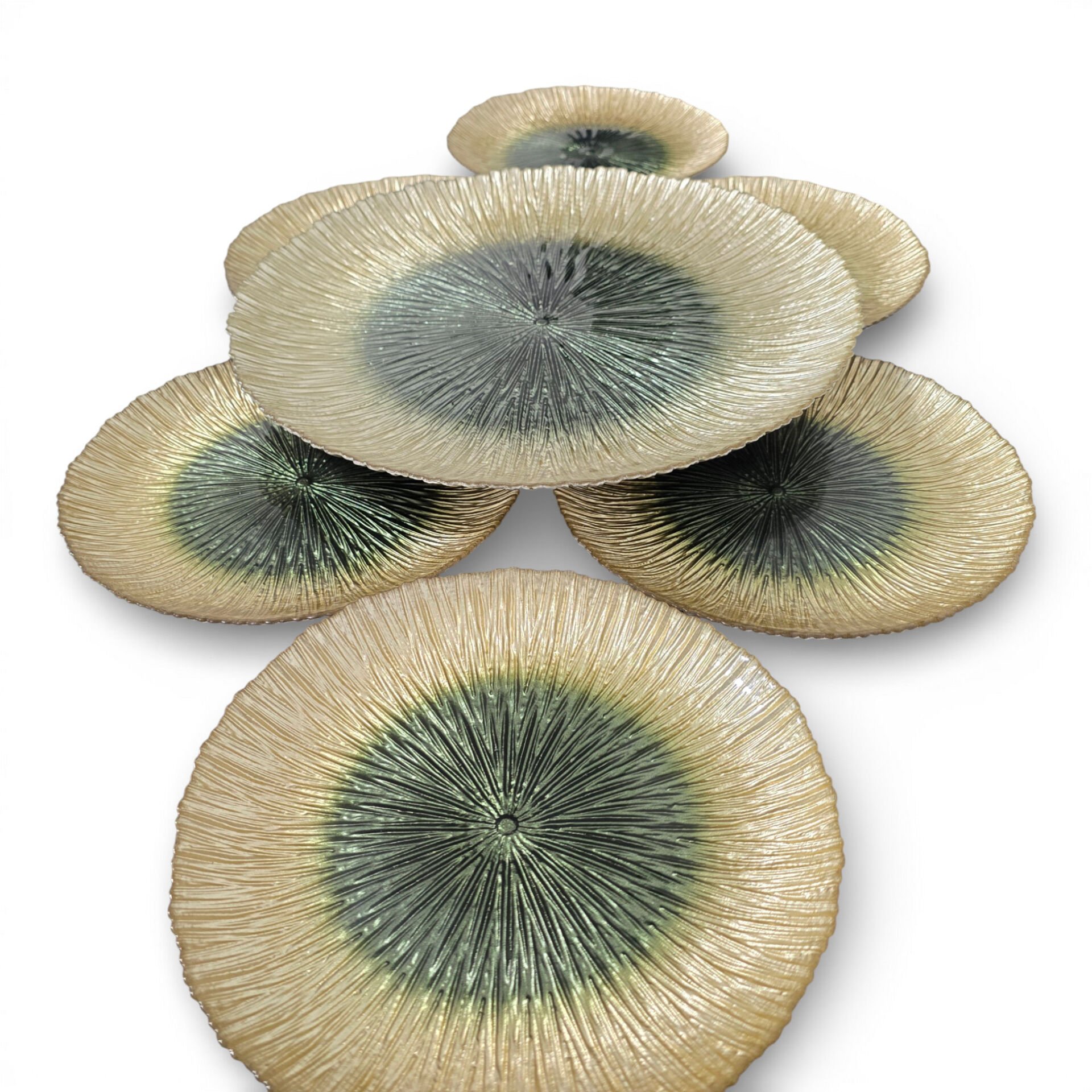 Sudedi Home Cam Pasta Tabağı ve Sunum Tepsisi Seti 7 Parça Yeşil Ton Detaylı