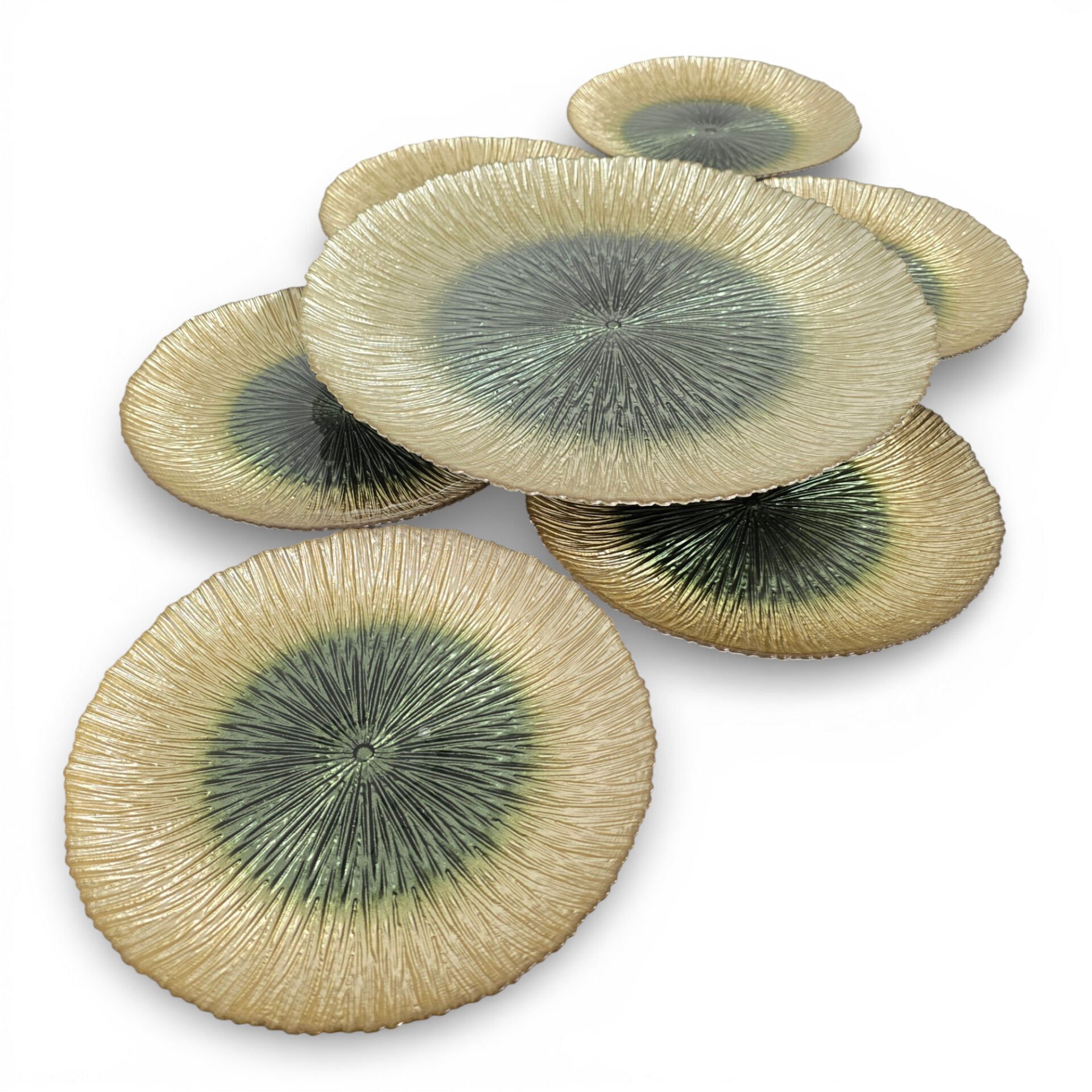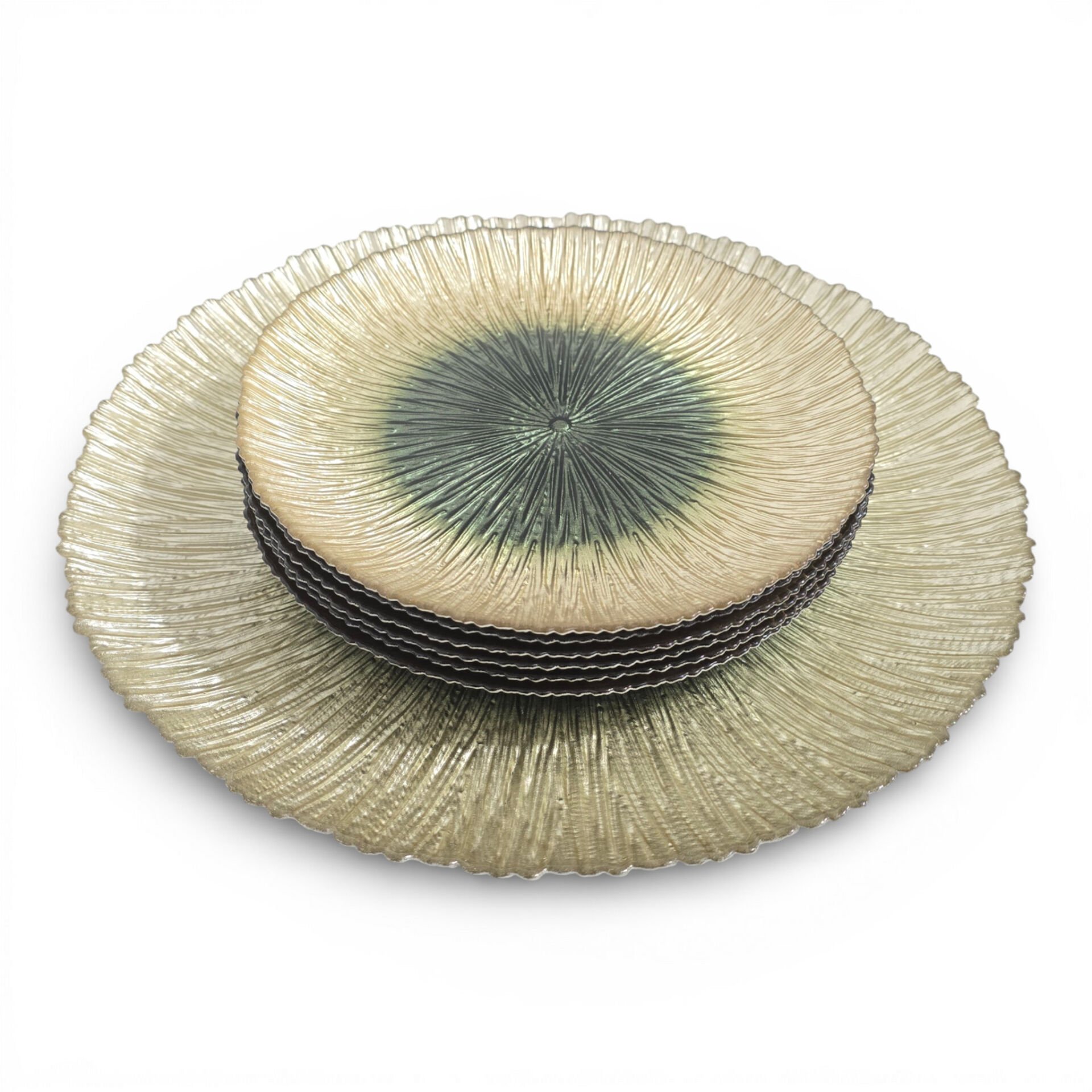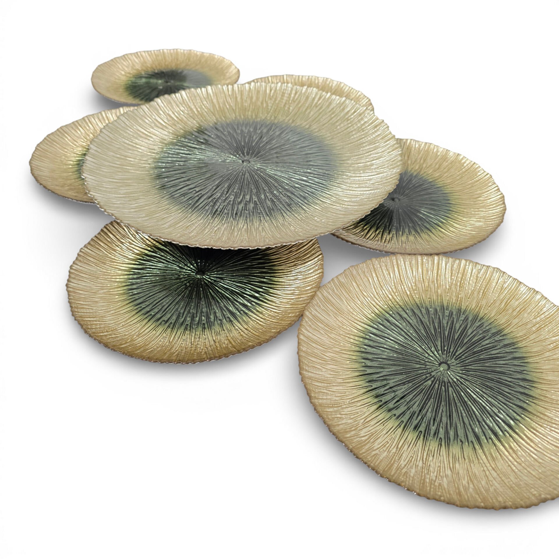 Sudedi Home Cam Pasta Tabağı ve Sunum Tepsisi Seti 7 Parça Yeşil Ton Detaylı