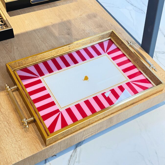 Glore A11-010-Pink Line Çerçeveli Tepsi 31x46