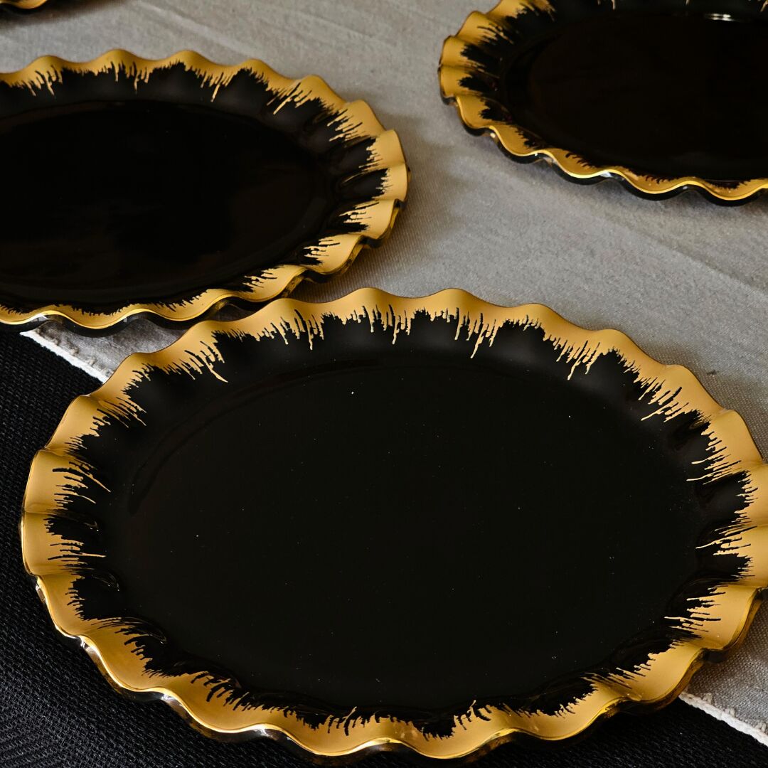 6 adet 21cm altın yaldızlı cam pasta tabağı