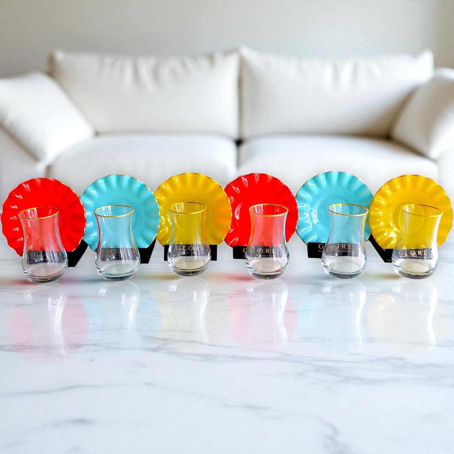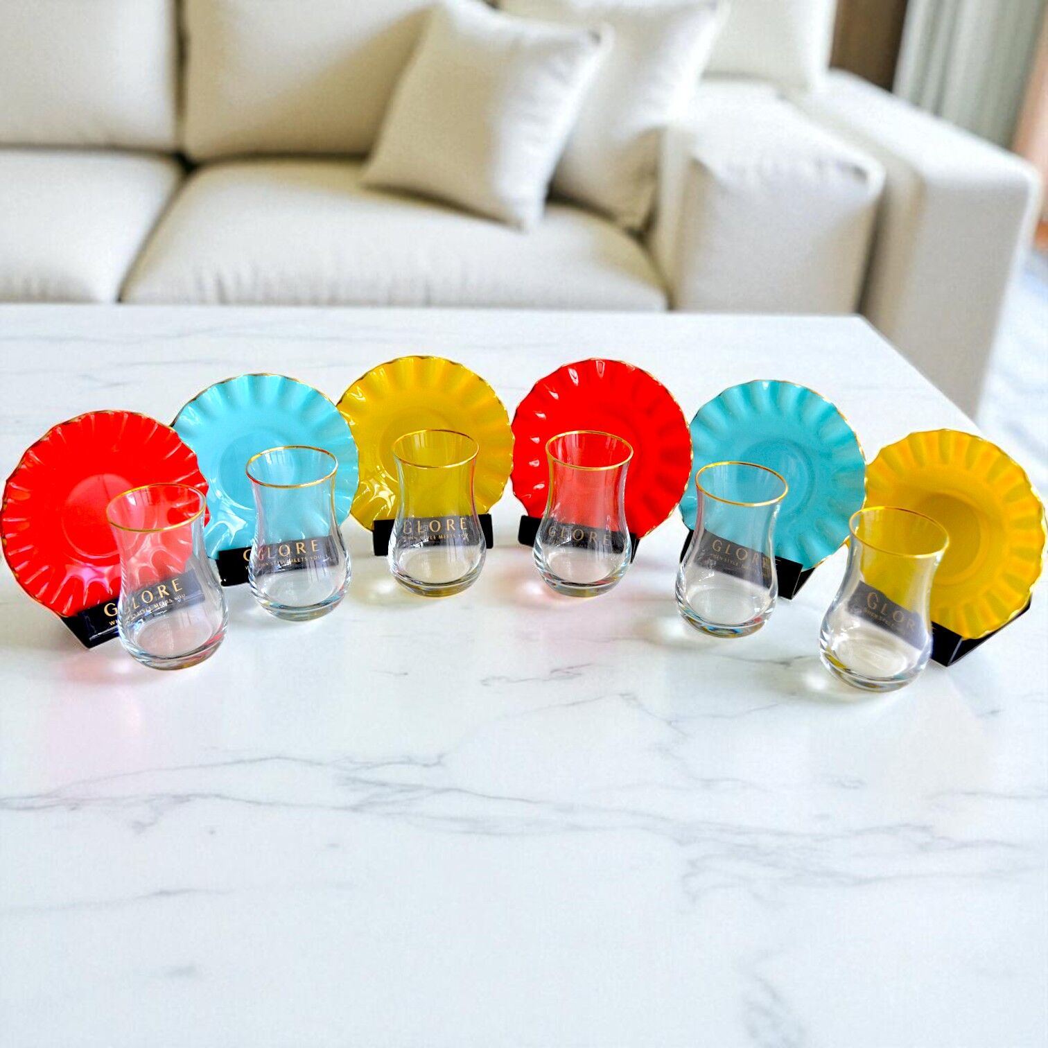 Glore Audra Altın Yaldızlı Cam Çay Bardağı Seti