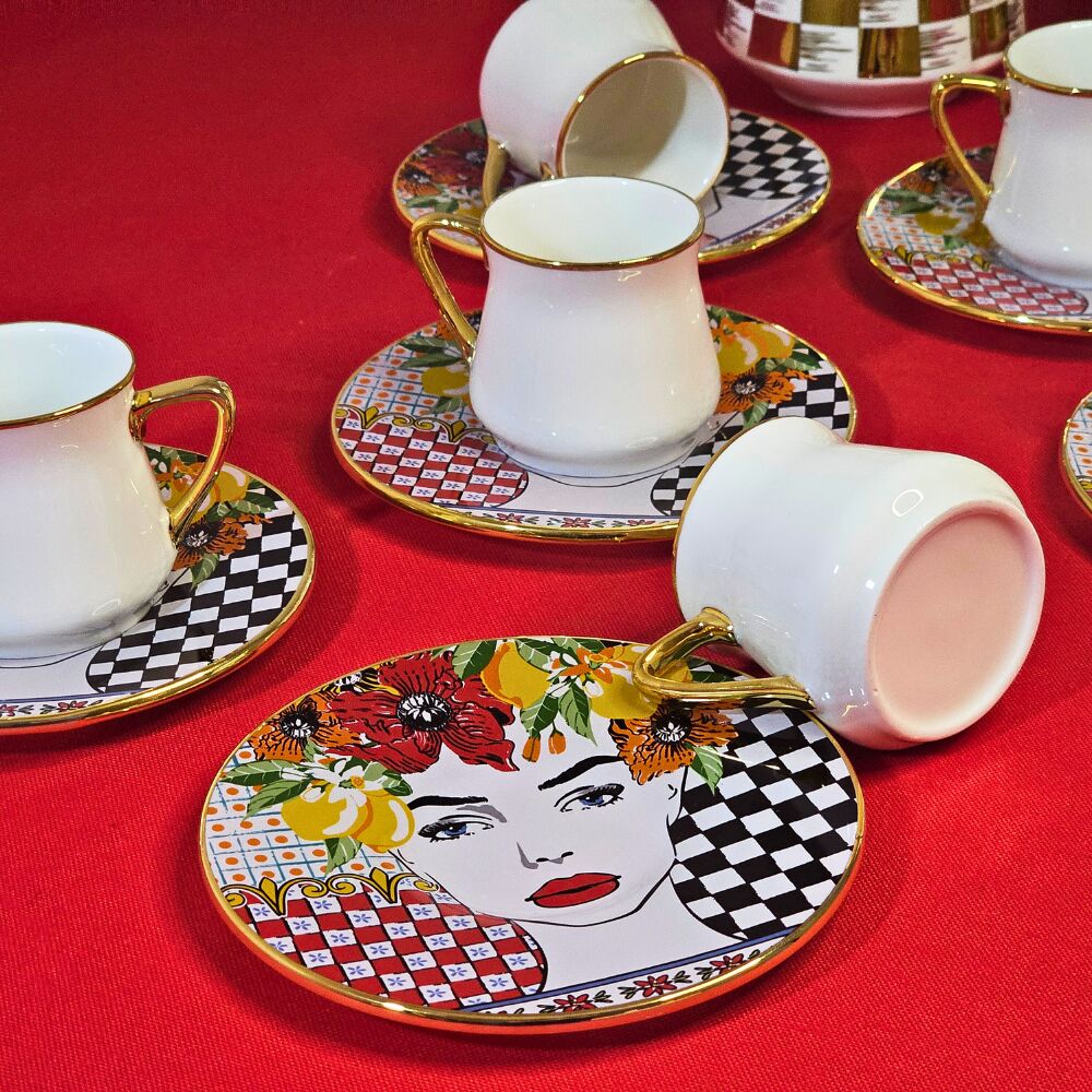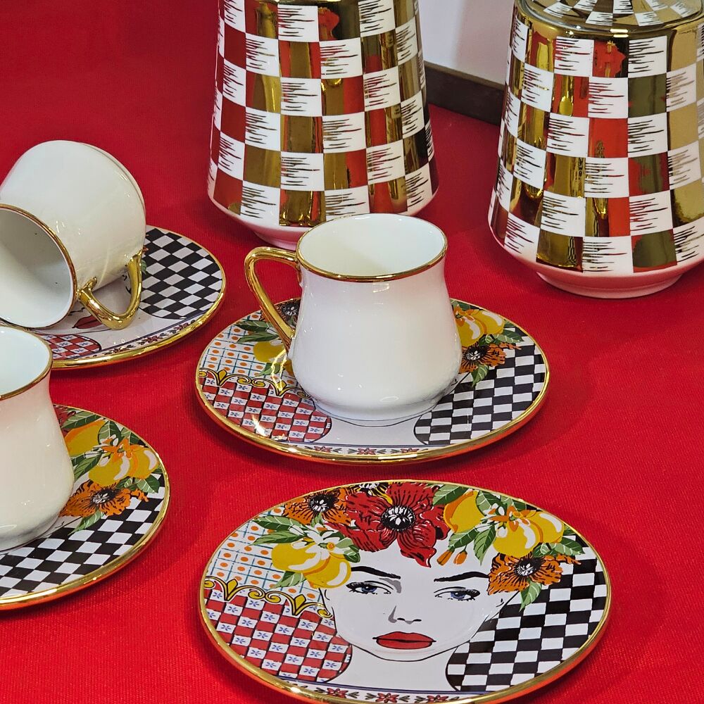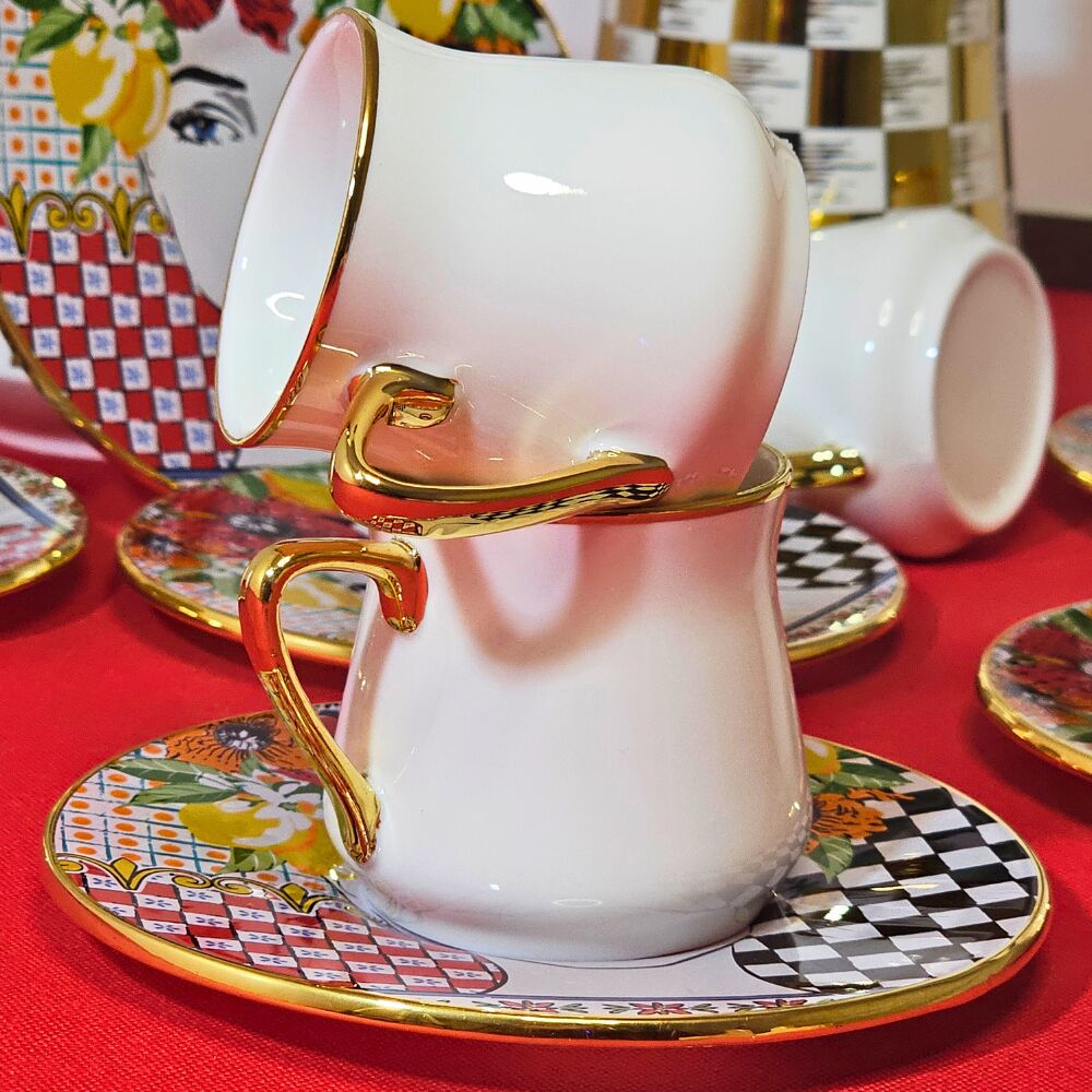 Glore Bellissimo Altın Yaldızlı Kahve Fincan Takımı