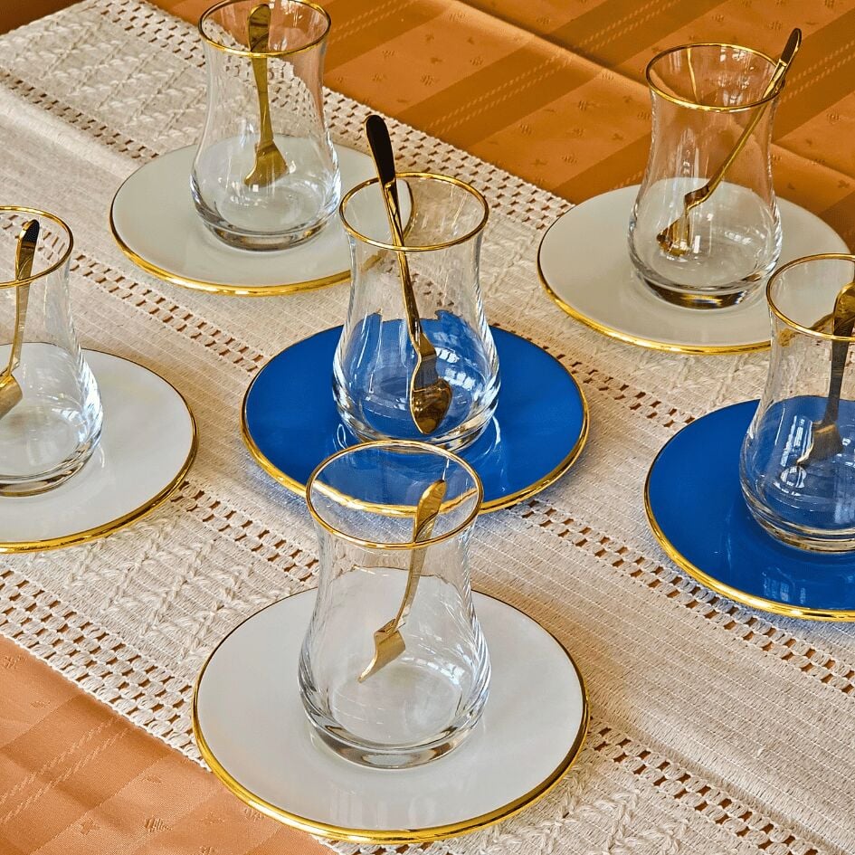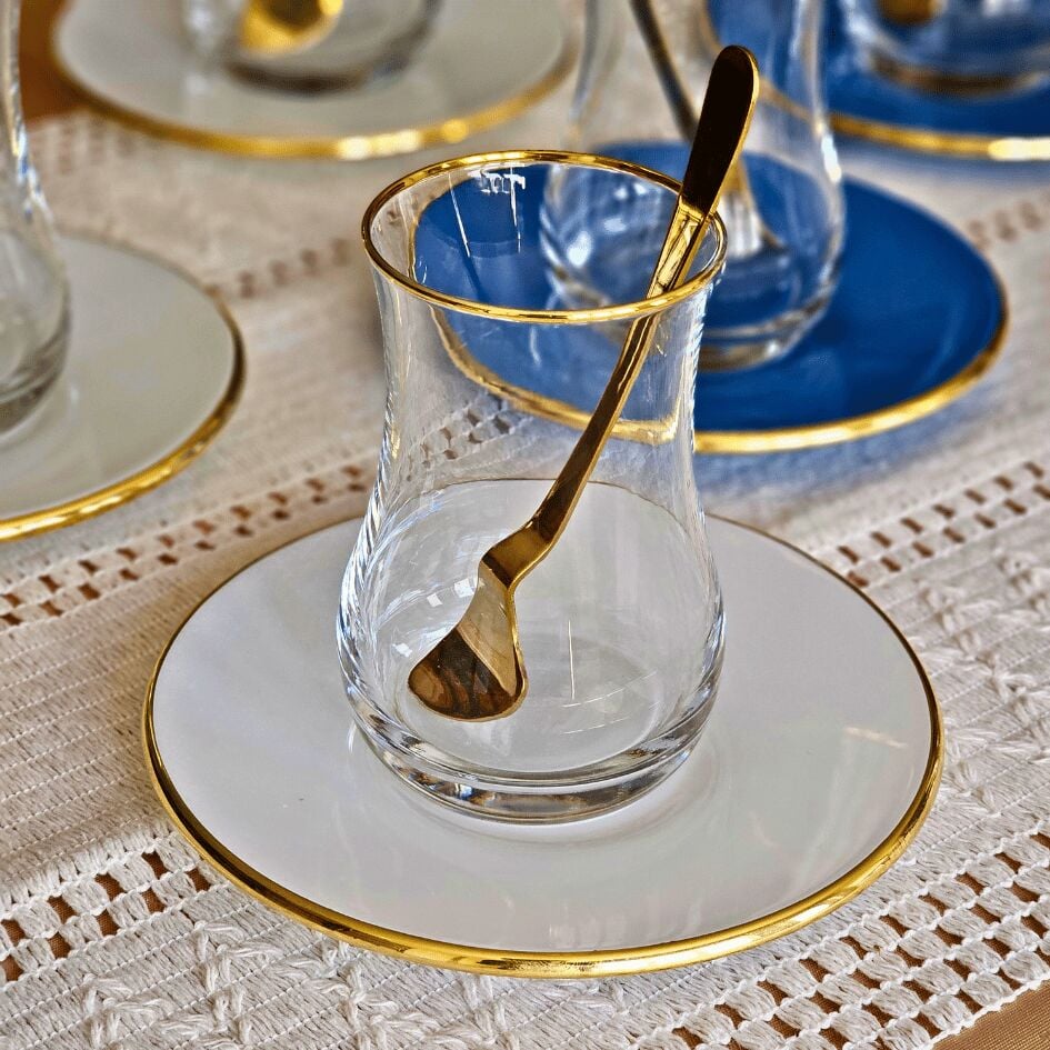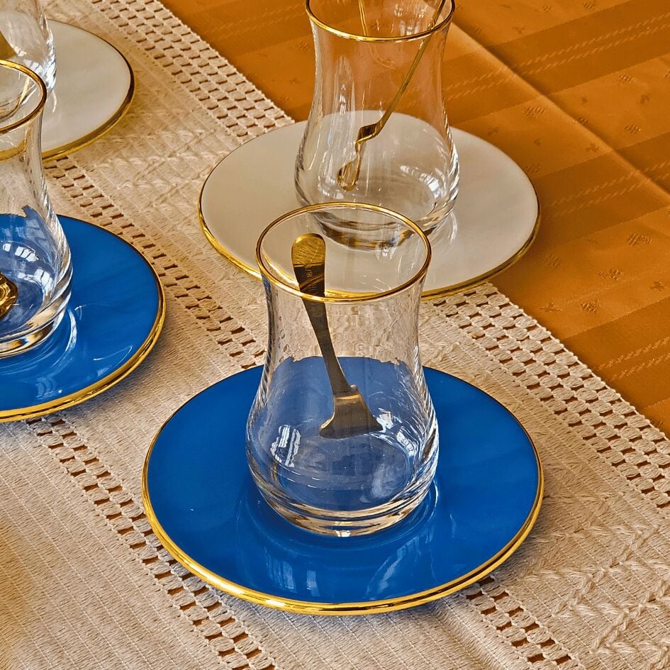 Glore Blue Rose Altın Yaldızlı 6 Kişilik Cam Çay Bardağı Seti