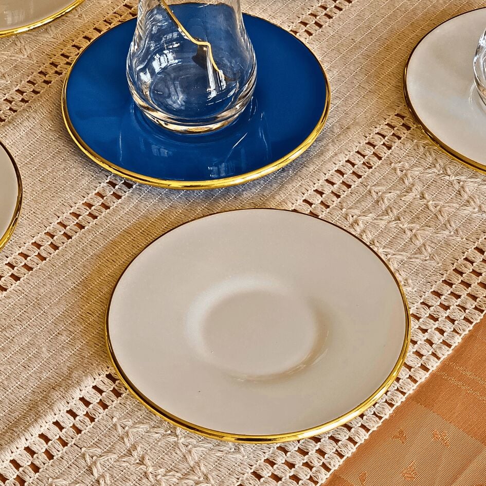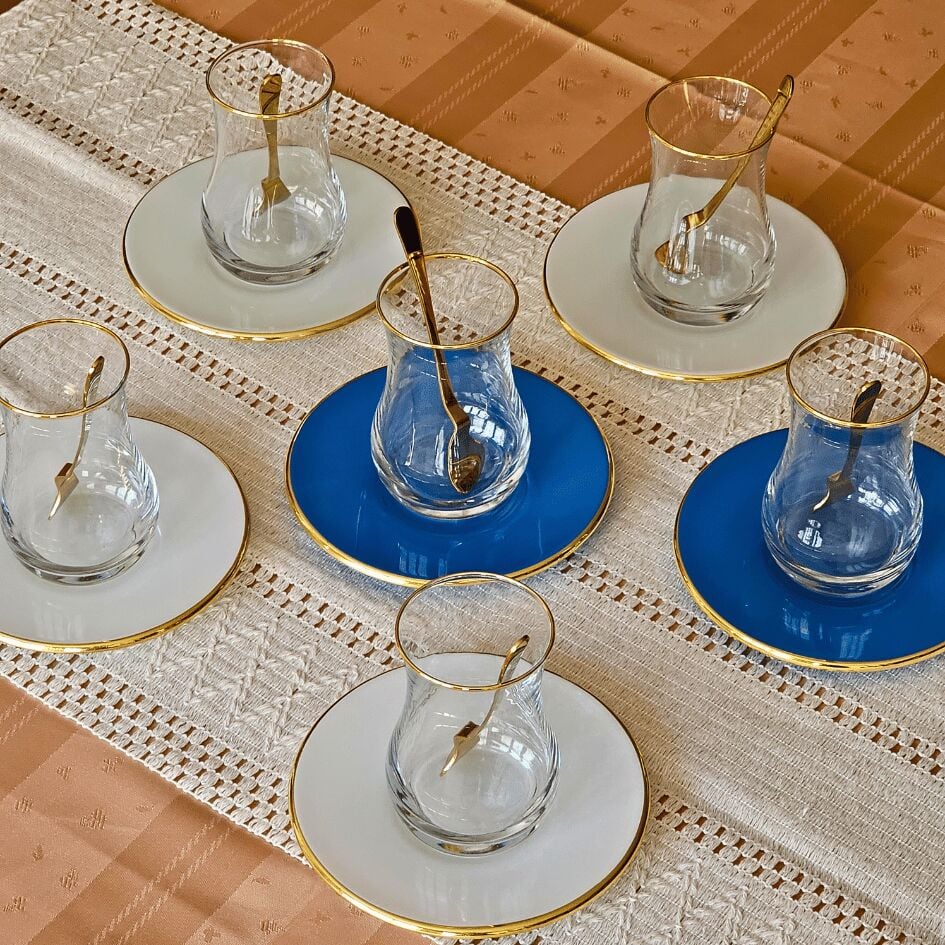 6 adet altın yaldızlı cam çay tabağı