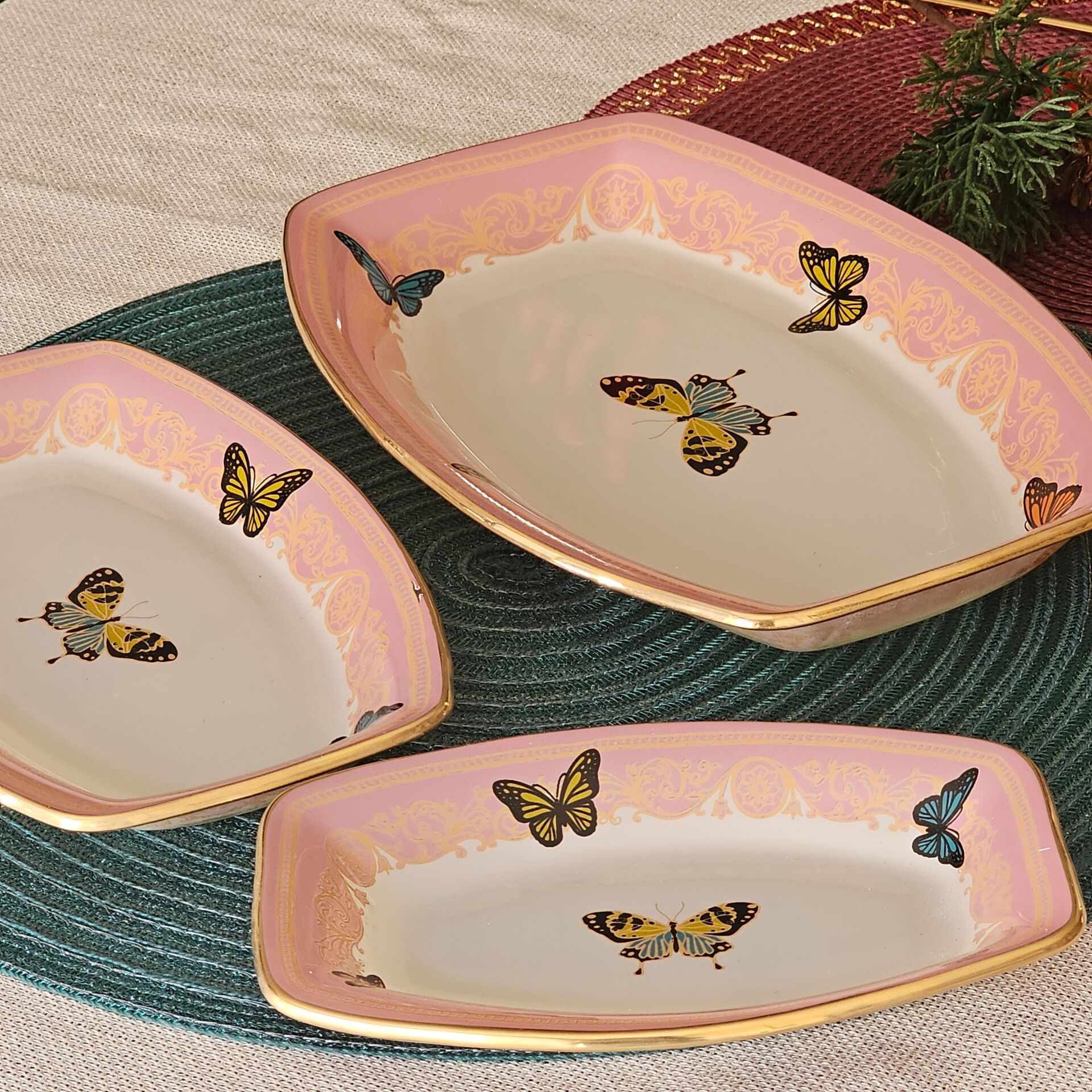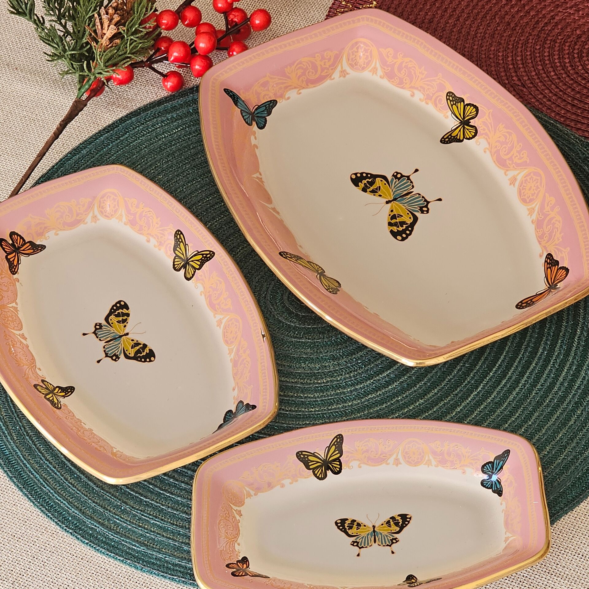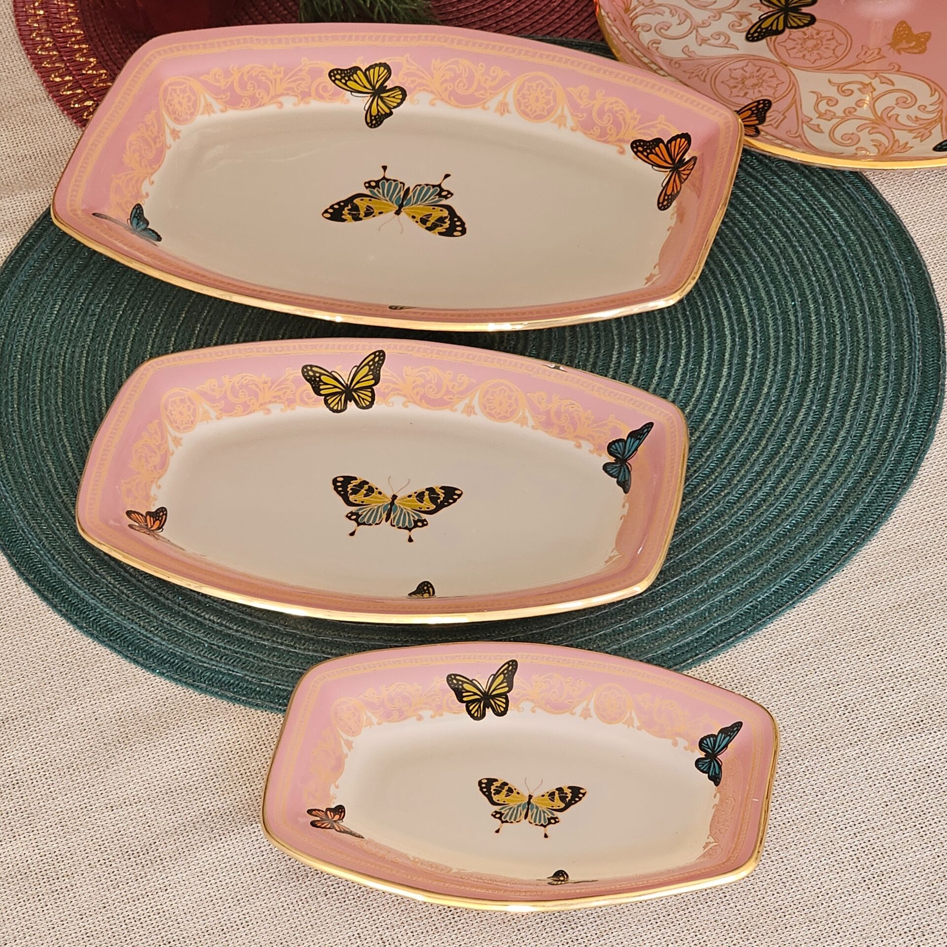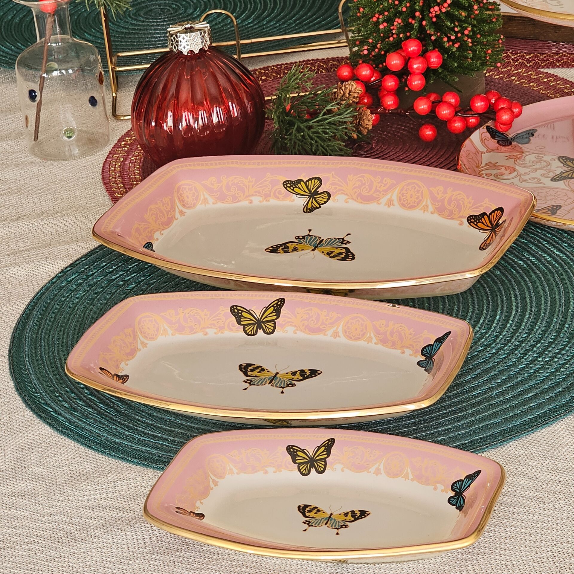 Glore Butterfly Effect Altın Yaldızlı Pembe Kayık Tabak