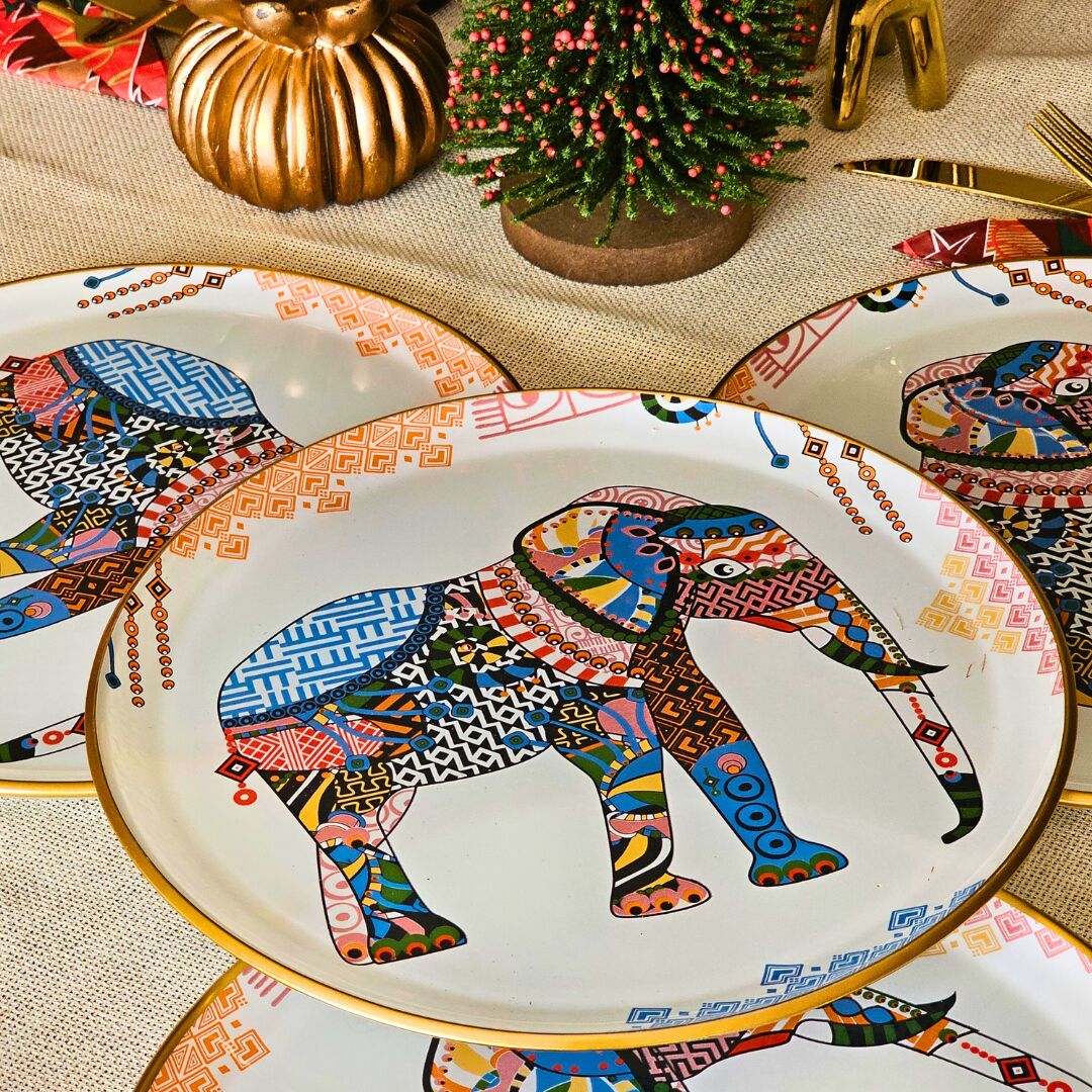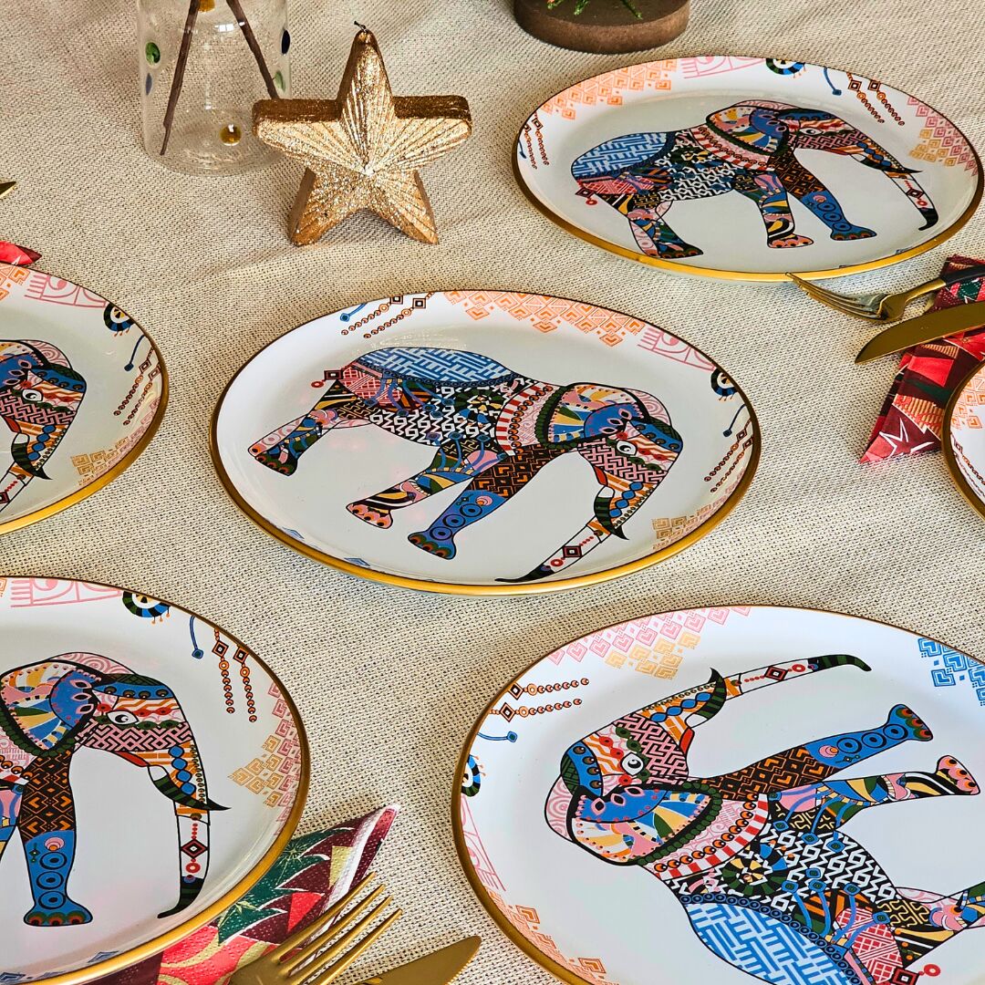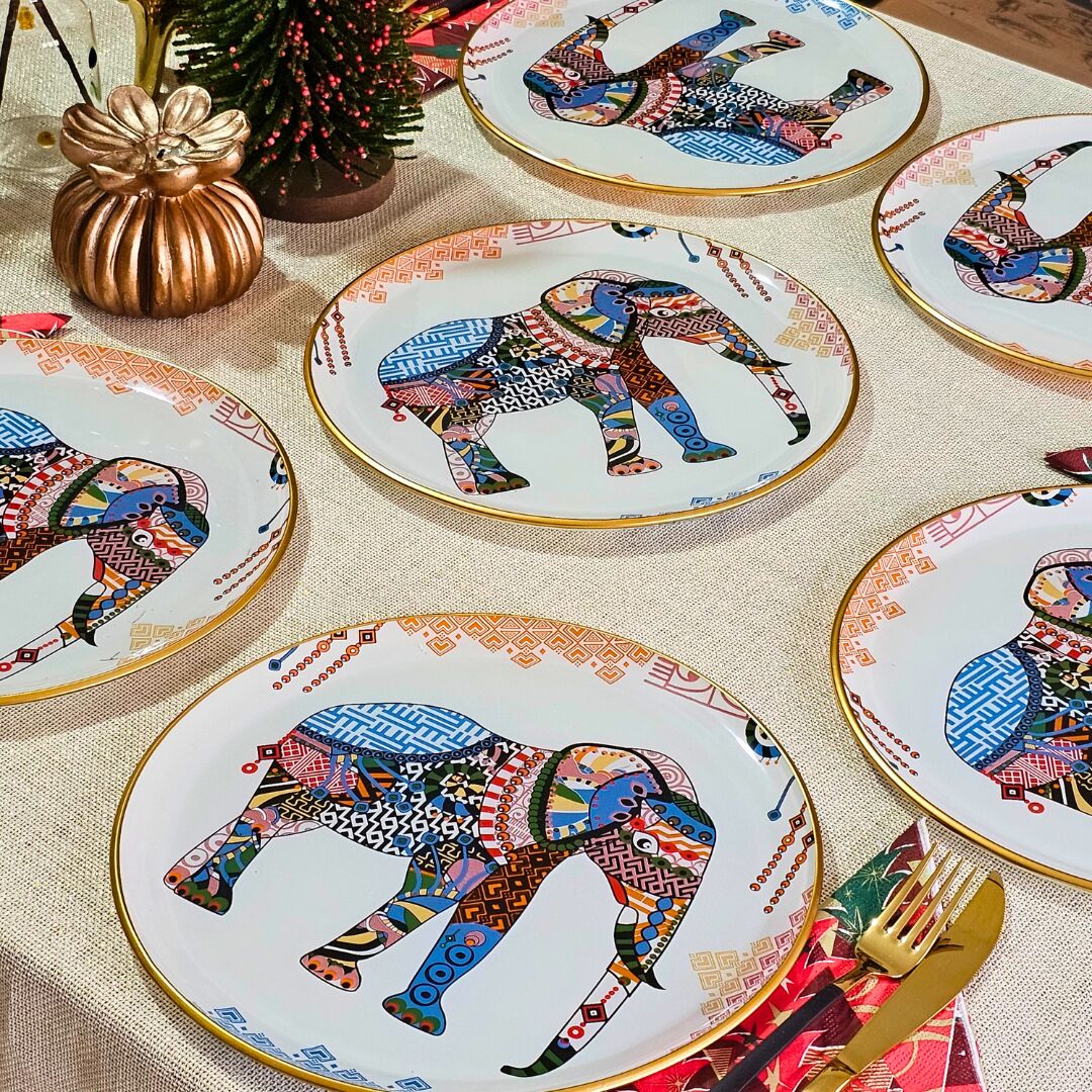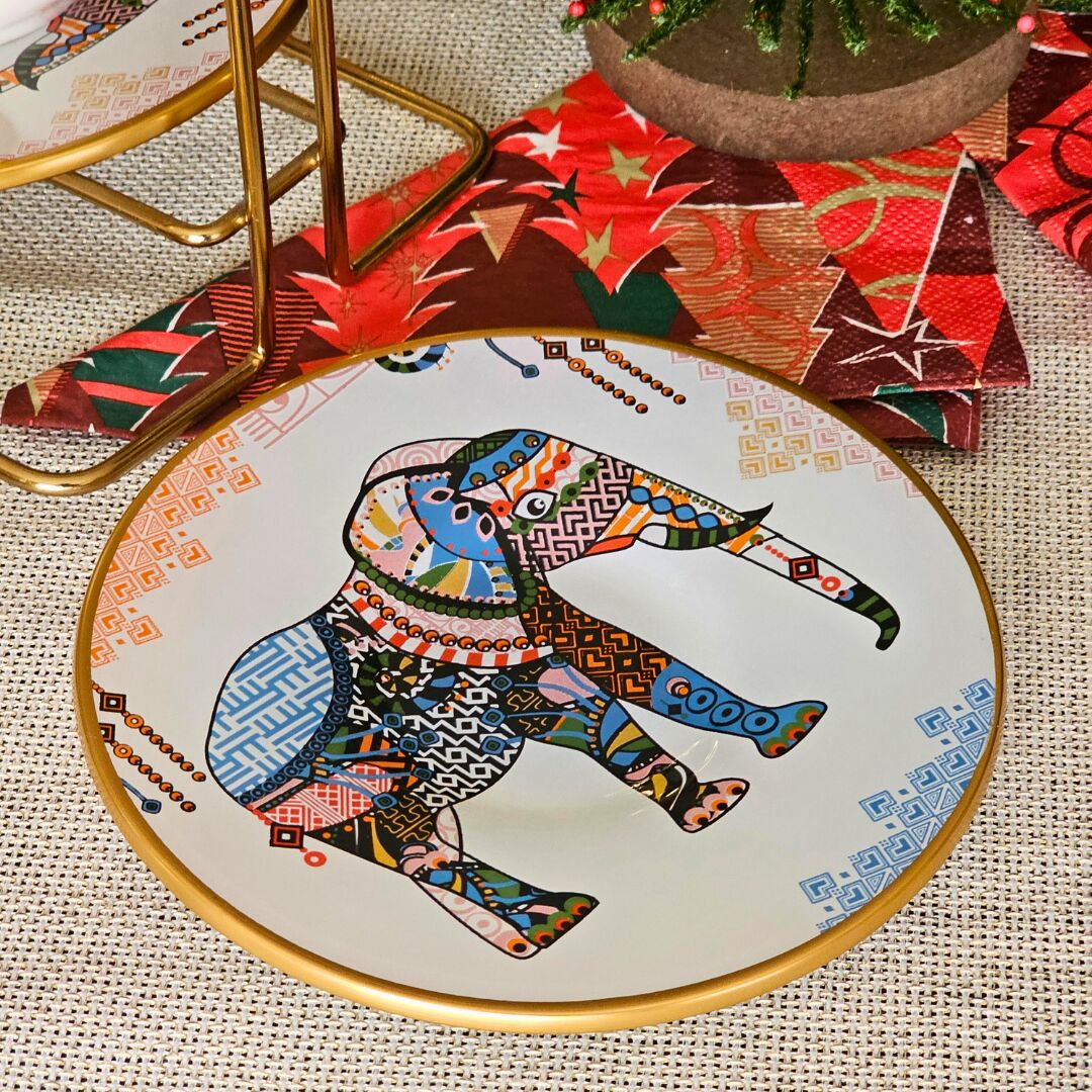 Glore Elephant Altın Yaldızlı Cam Pasta Tabağı Takımı