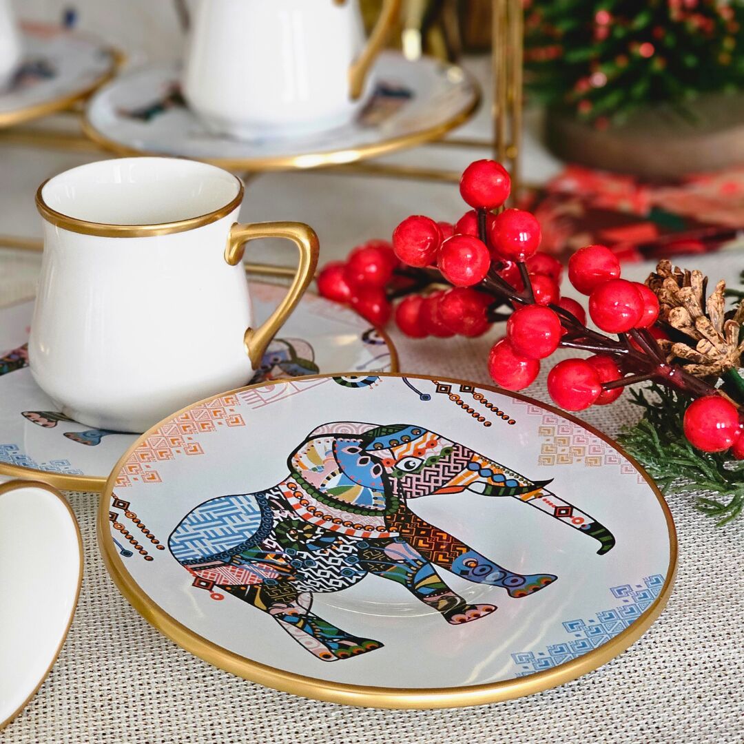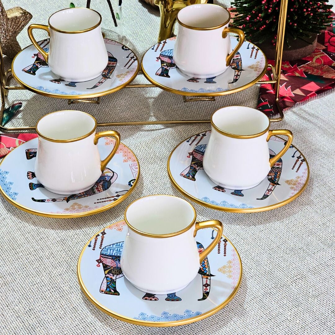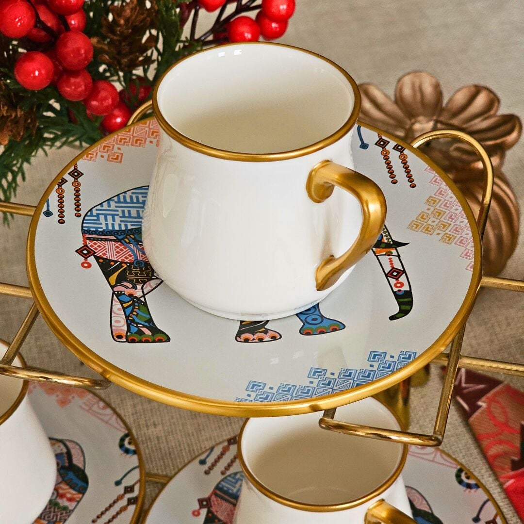 Glore Elephant Altın Yaldızlı Kahve Fincan Takımı