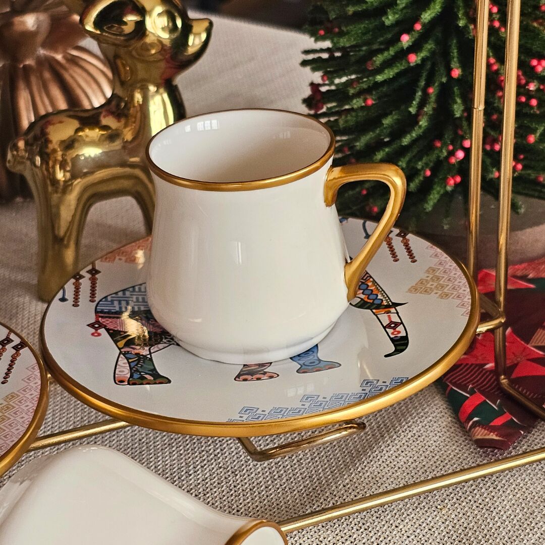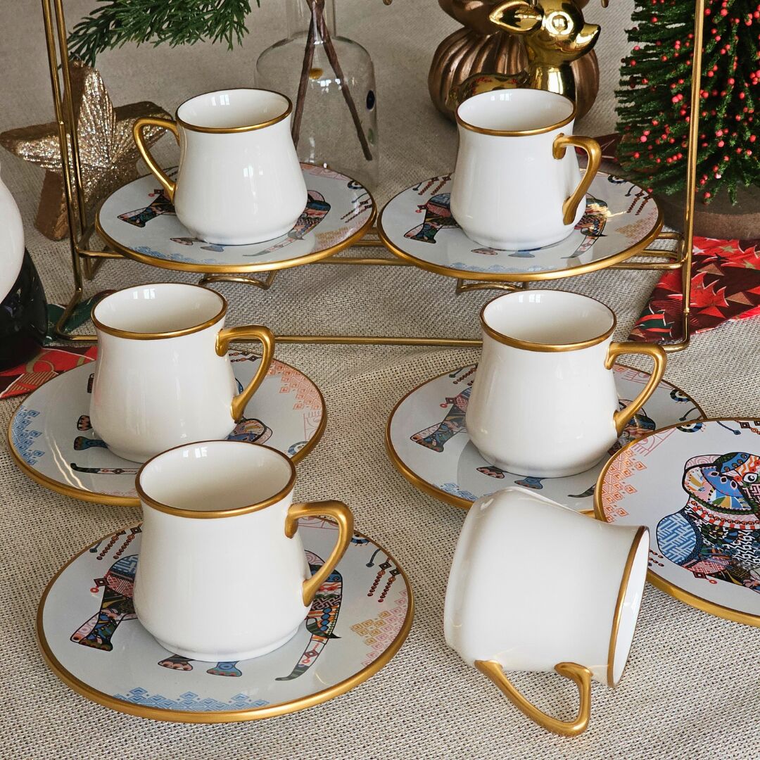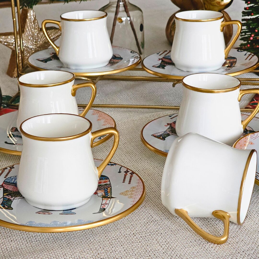 Glore Elephant Altın Yaldızlı Kahve Fincan Takımı