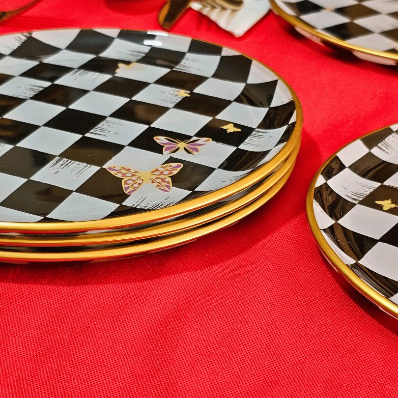 Glore Emma Altın Yaldızlı Cam Pasta Tabağı Takımı