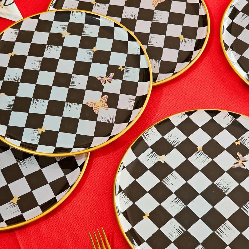 6 adet 21cm altın yaldızlı cam pasta tabağı