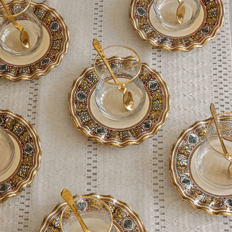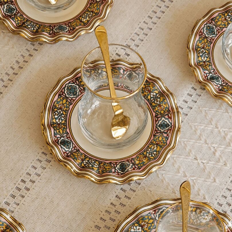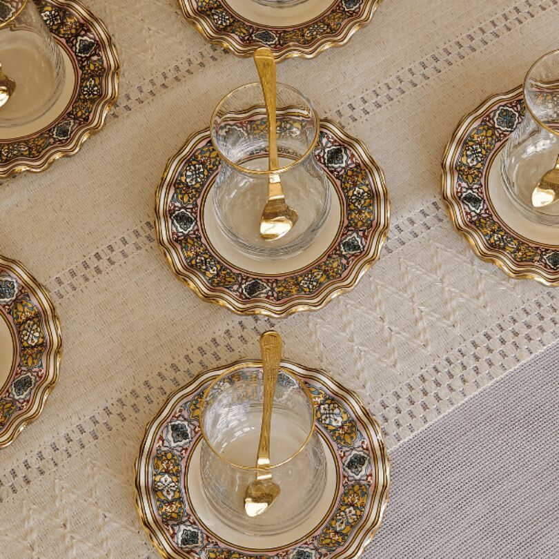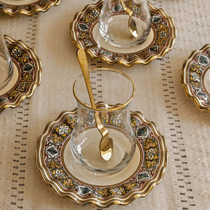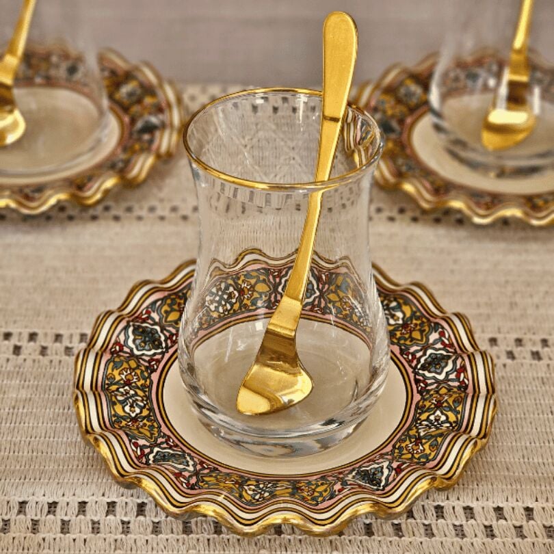 Glore Gisele Altın Yaldızlı Cam Çay Bardağı Seti