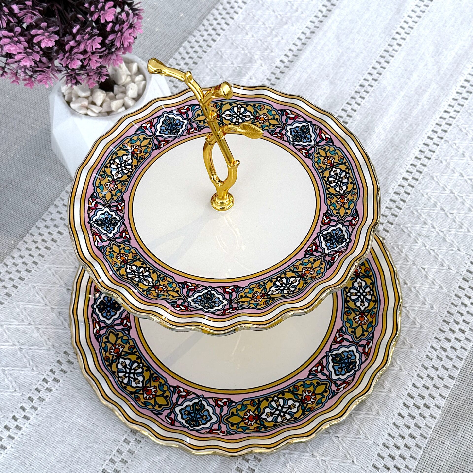 1 adet 26cm altın yaldızlı cam kurabiyelik tabak