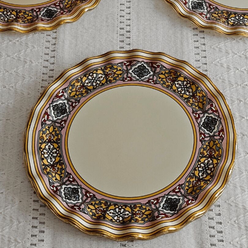 6 adet 21cm altın yaldızlı cam pasta tabağı