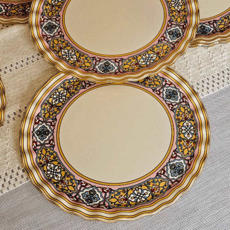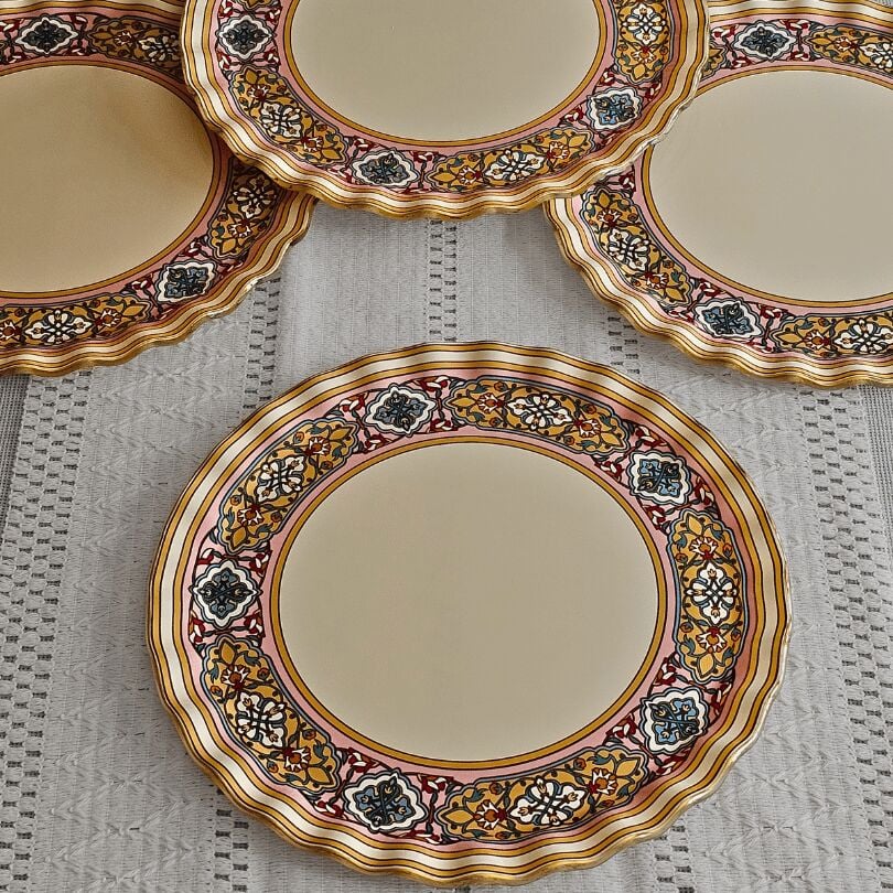 6 adet 26cm altın yaldızlı cam servis tabağı