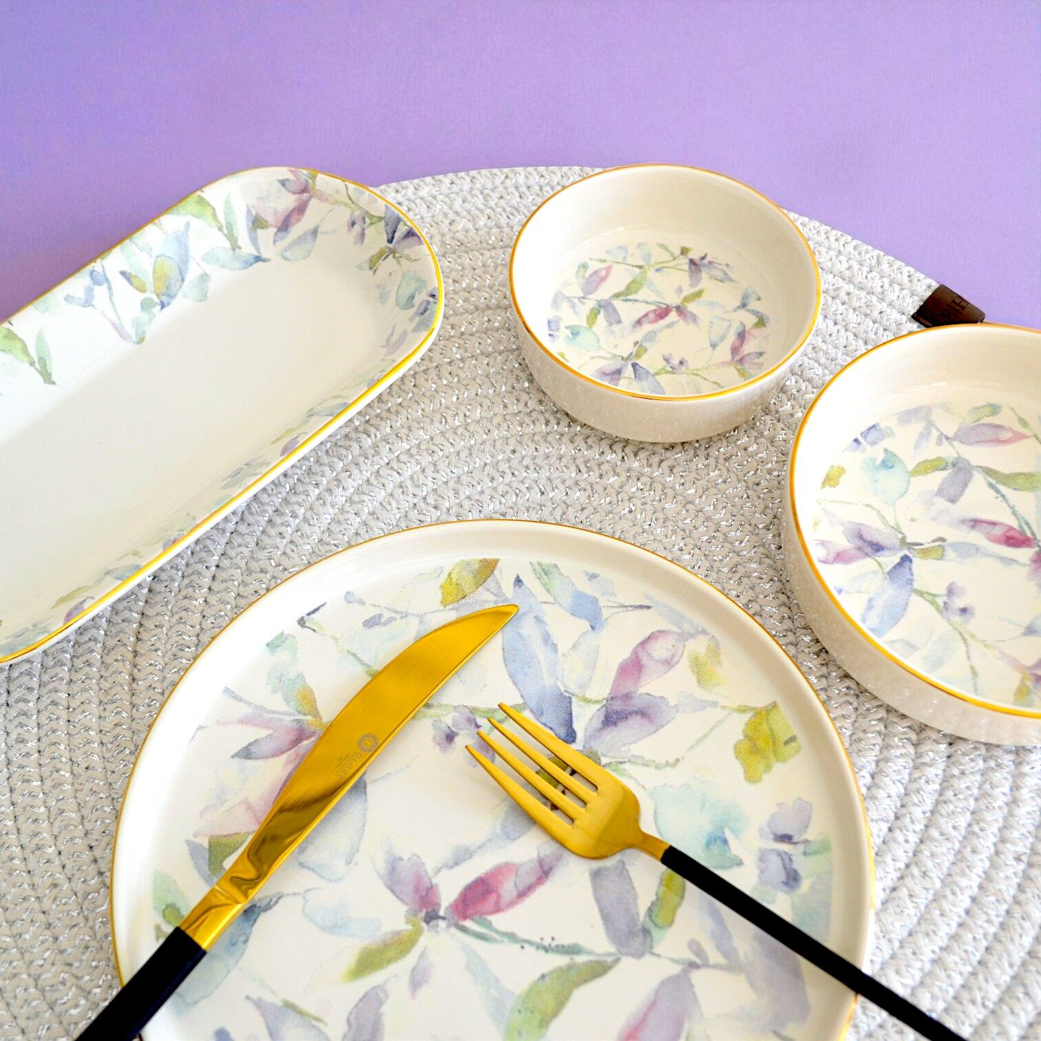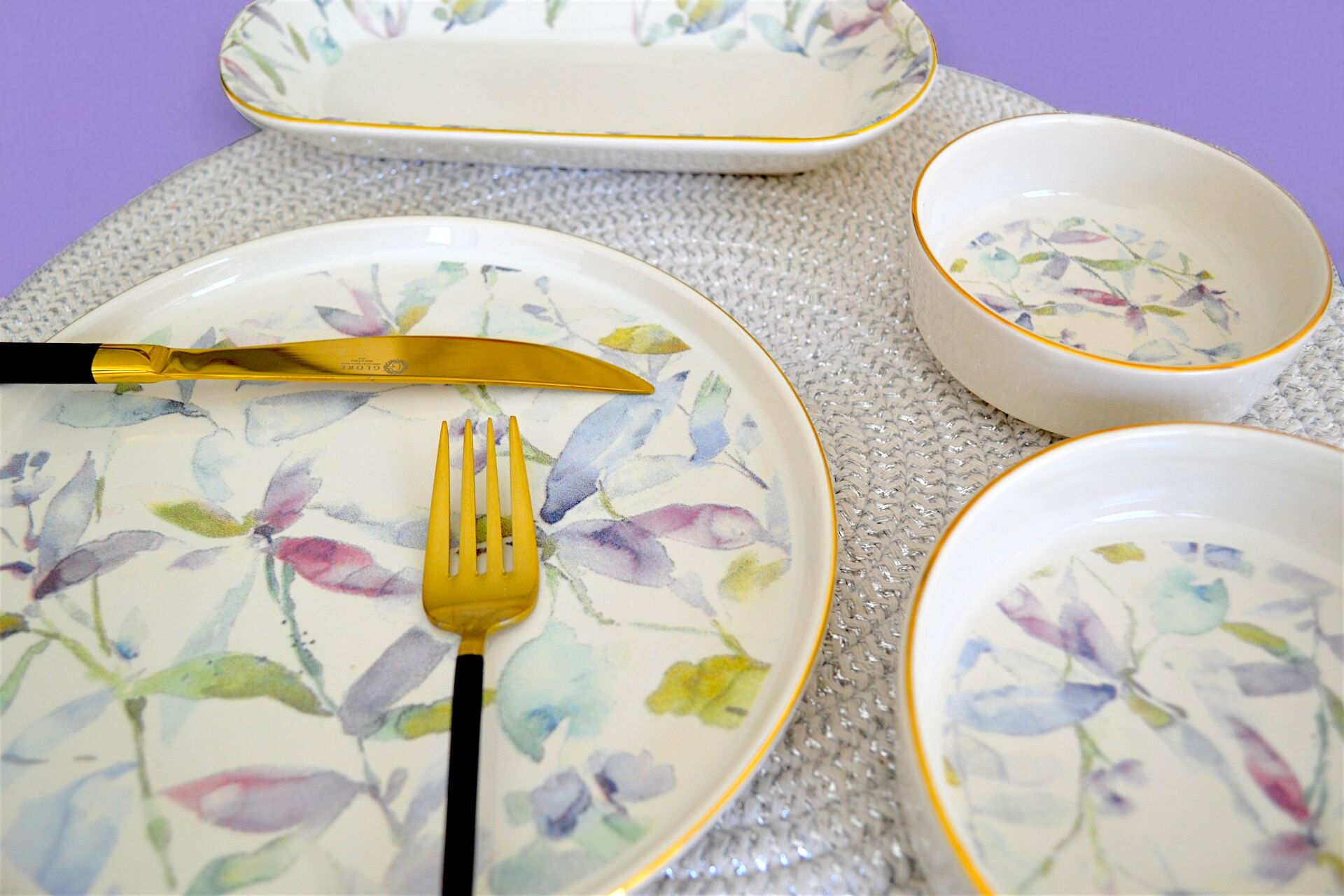 Glore Harmony Altın Yaldızlı 14 Parça 6 Kişilik Seramik Kahvaltı Takımı