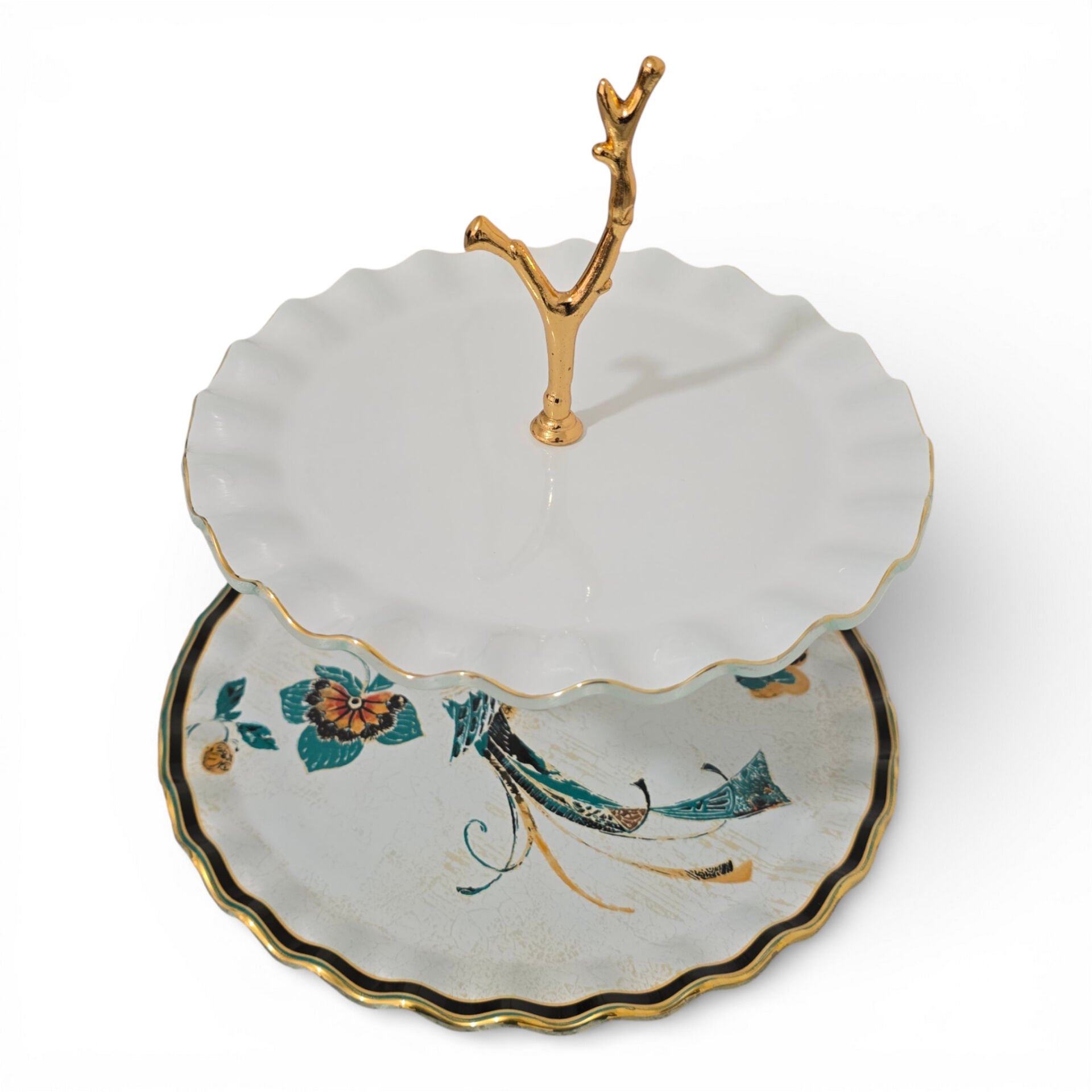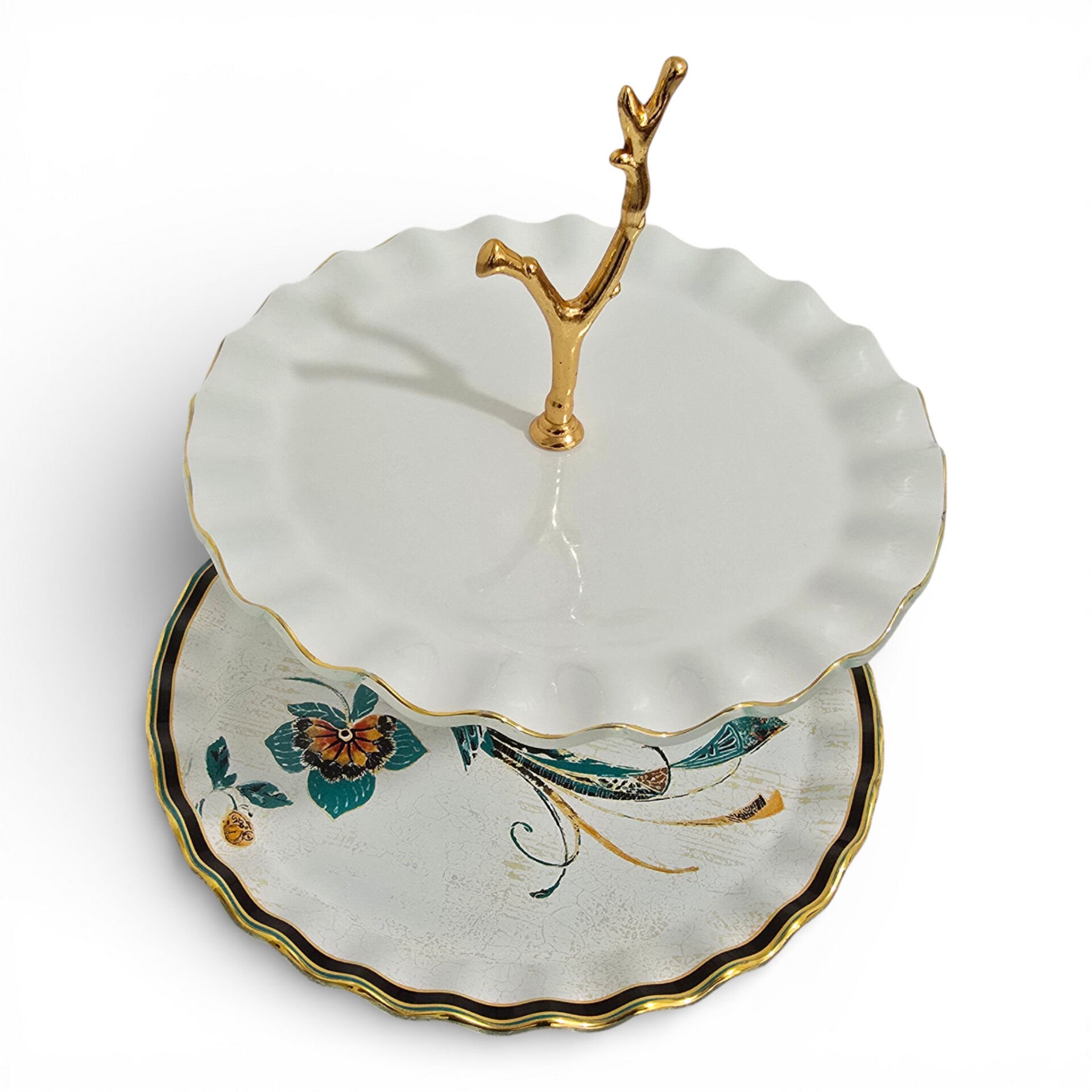 İki katlı yapısı ve dekoratif formu ile sunumlarınıza estetik ve düzen kazandırır.