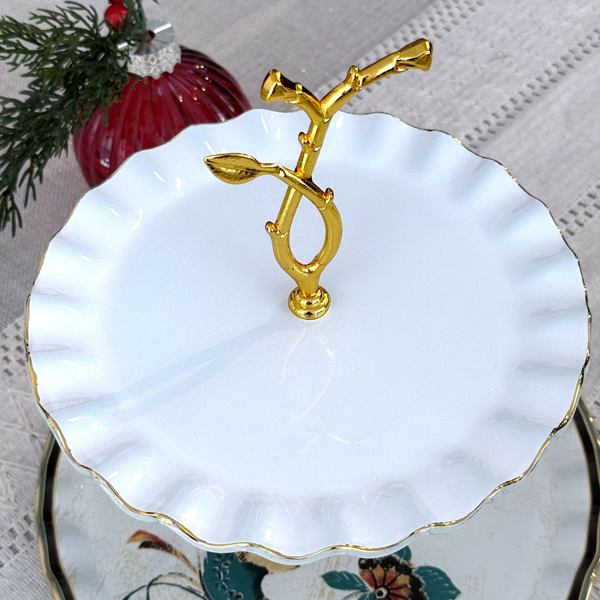 1 adet 26cm altın yaldızlı cam kurabiyelik tabak