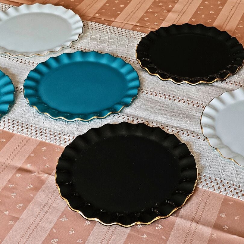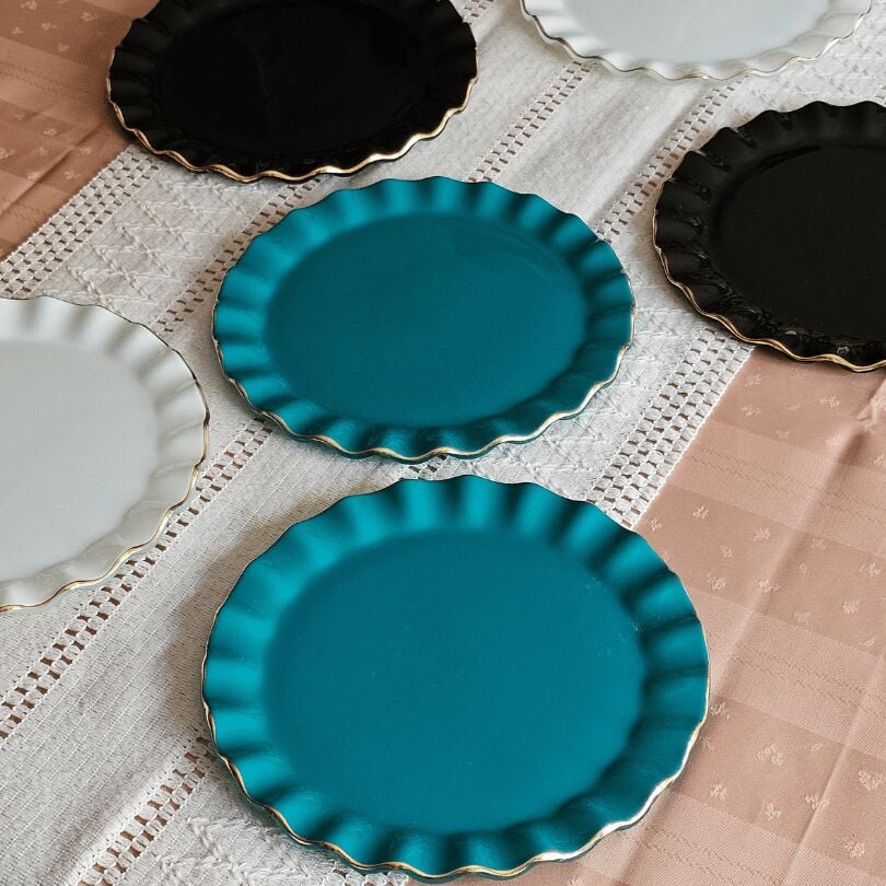 6 adet 21cm altın yaldızlı cam pasta tabağı