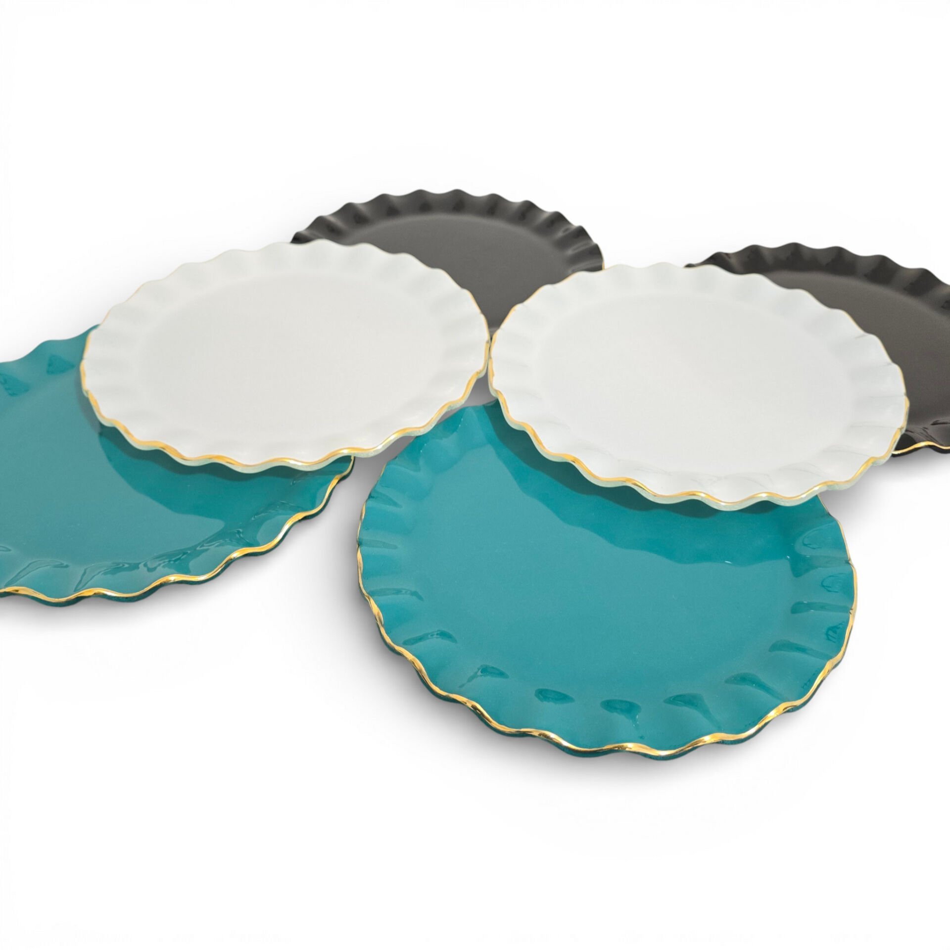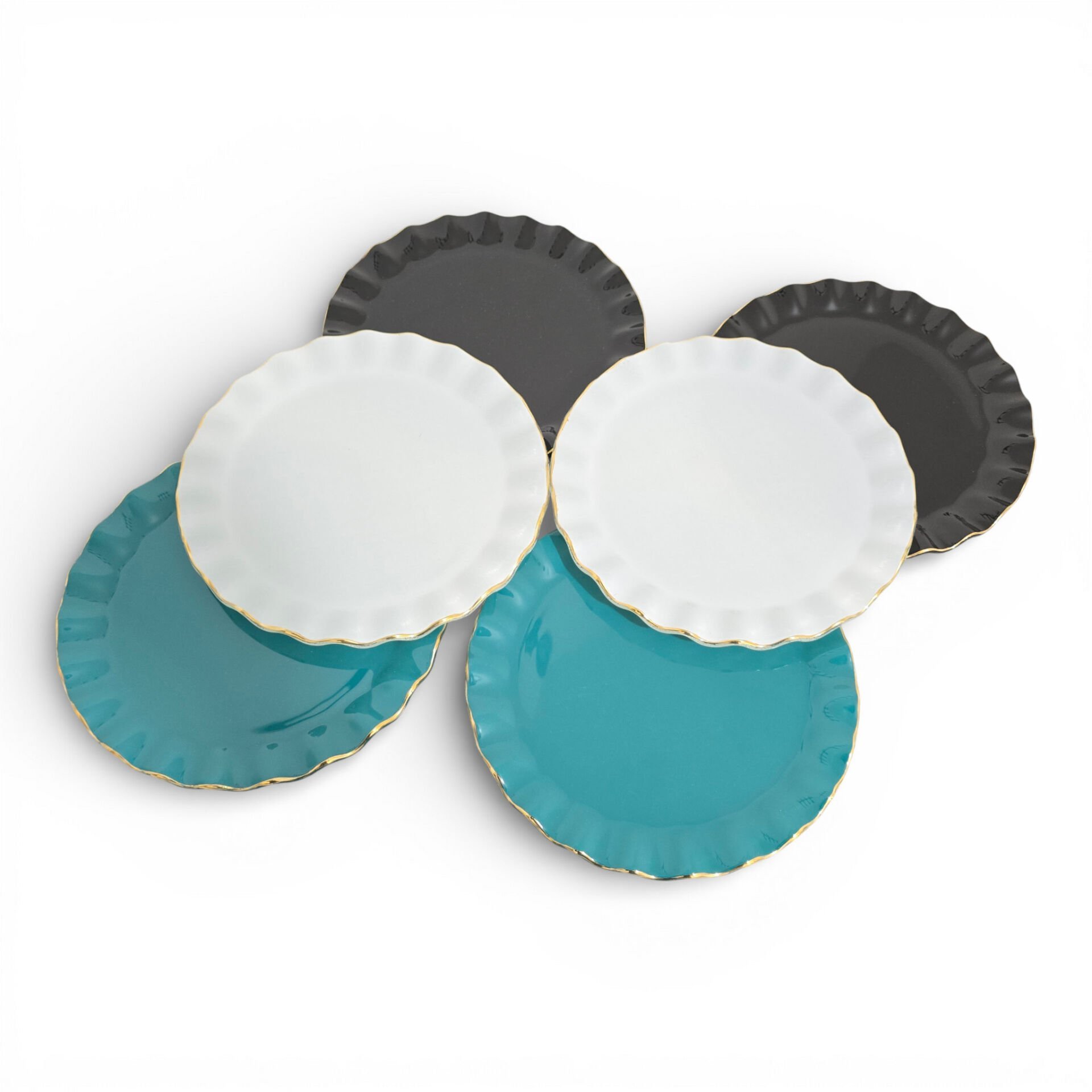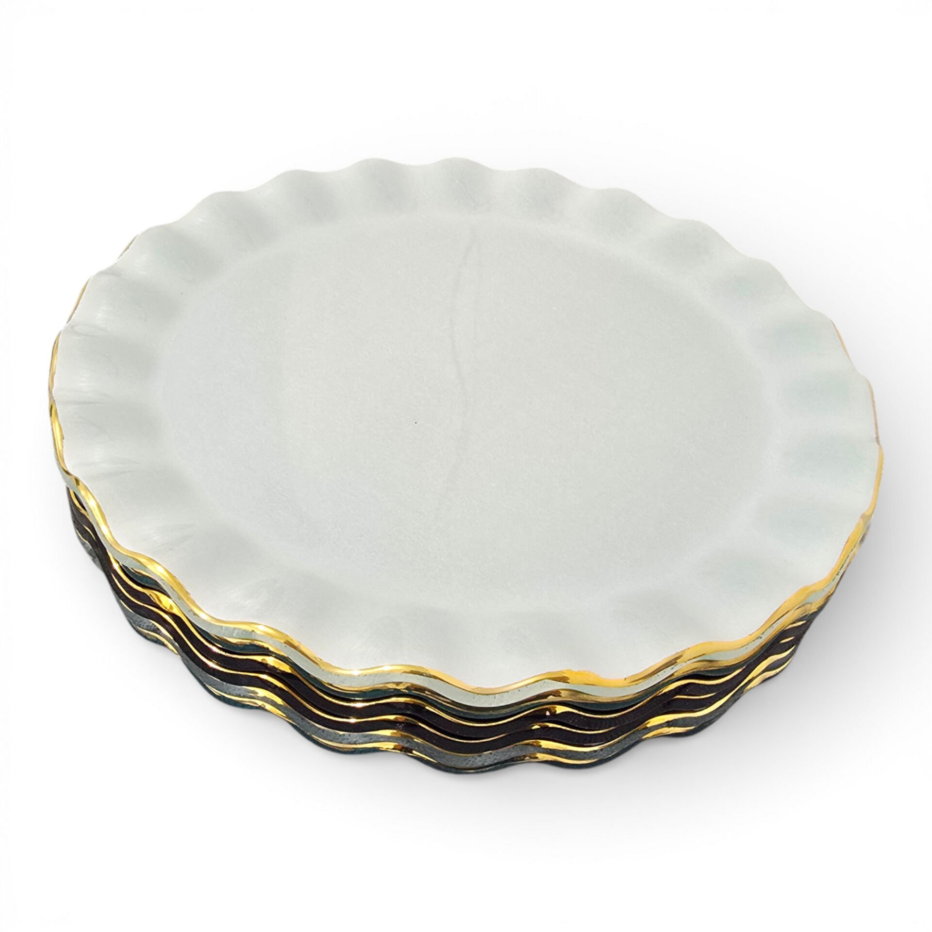• Toplam 6 adet 21 cm altın yaldızlı cam pasta tabağı