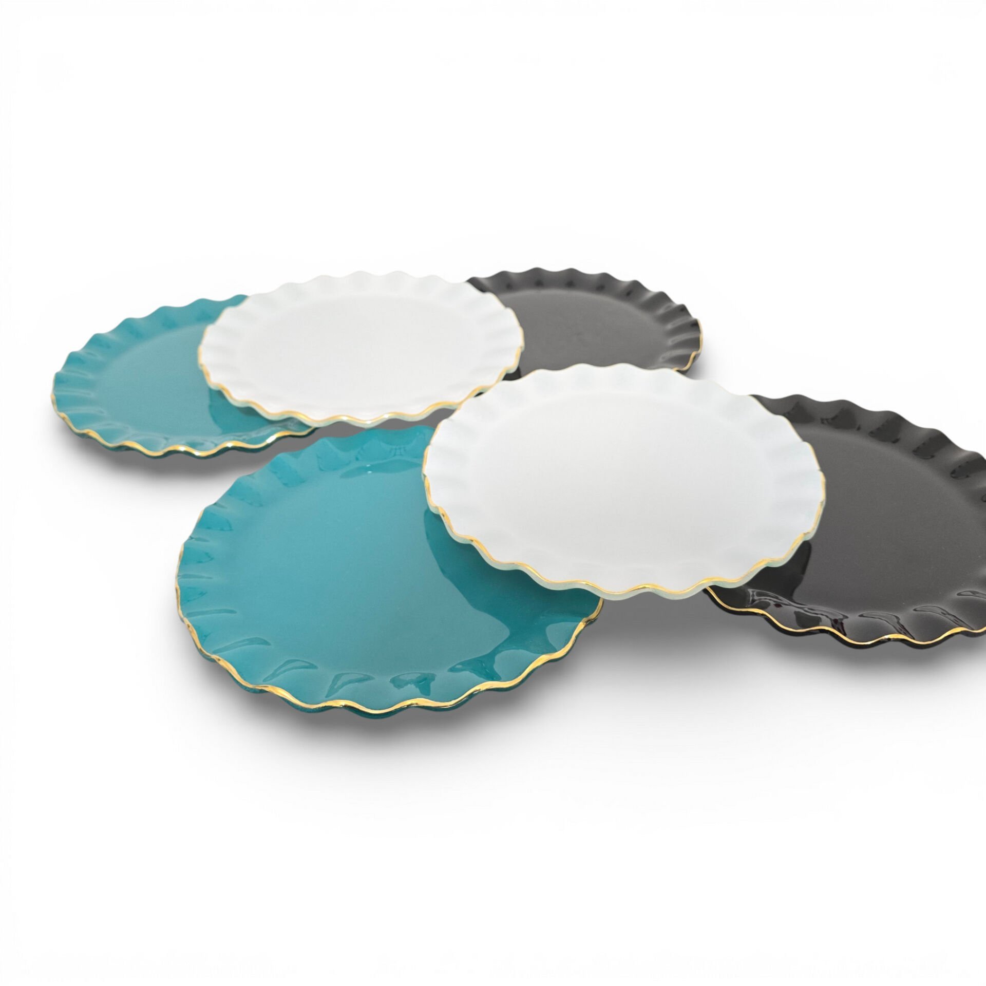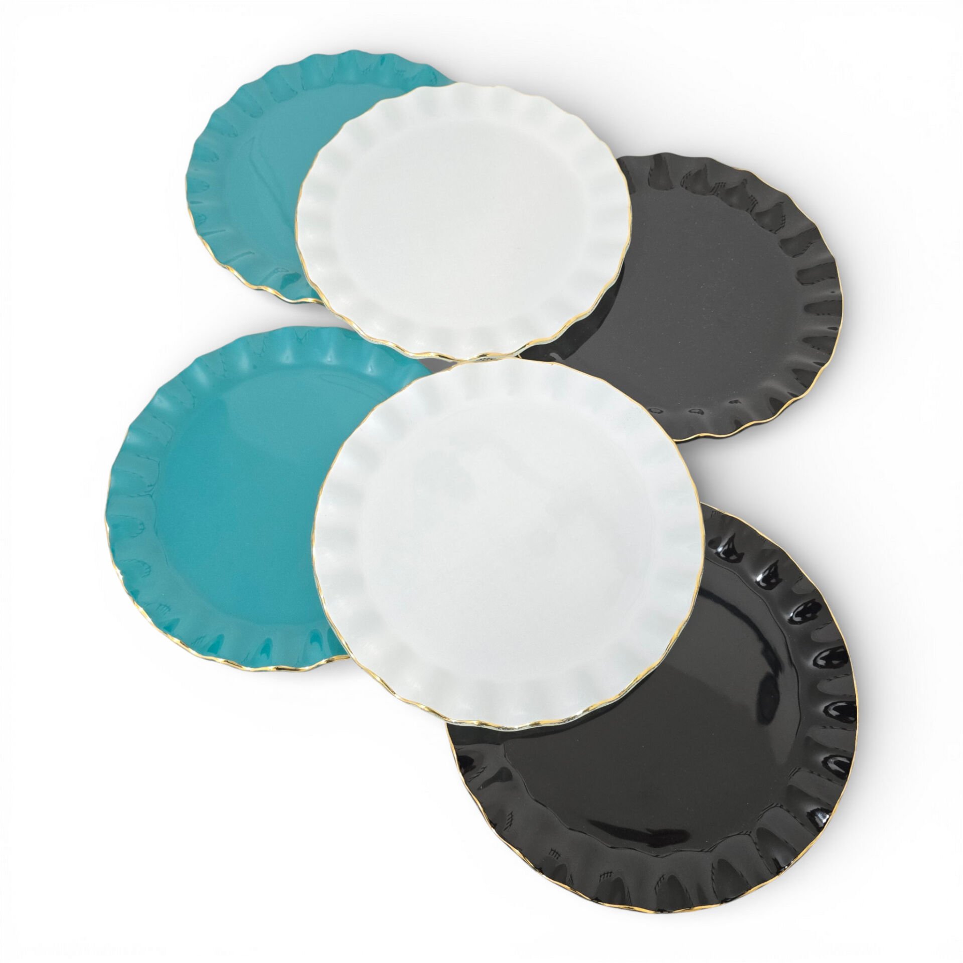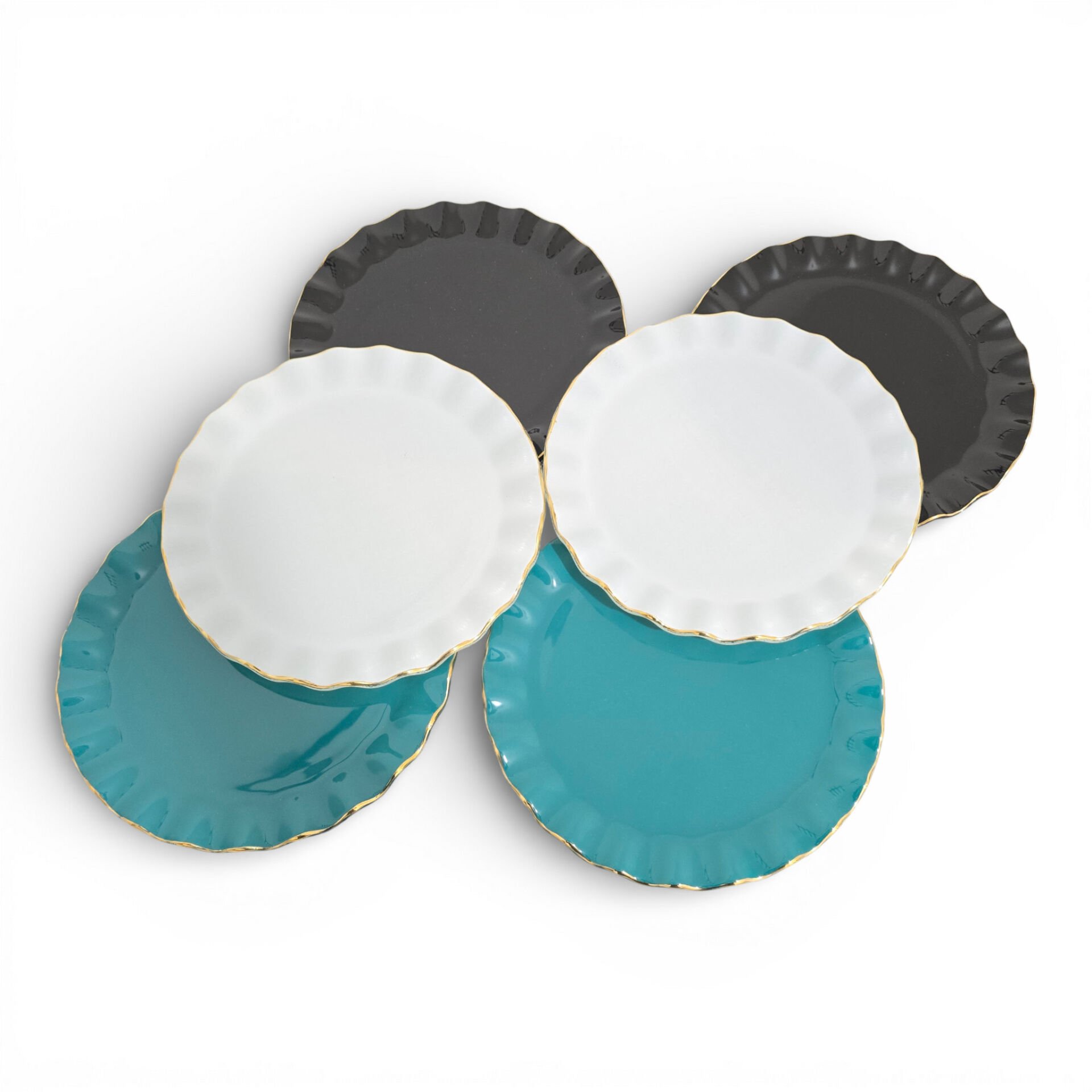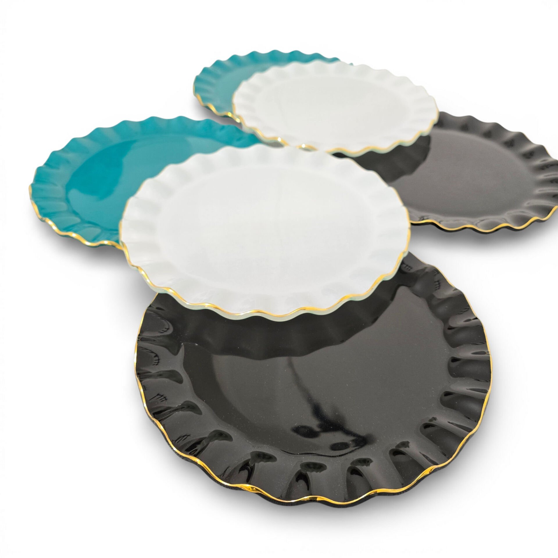 • Toplam 6 adet 21 cm altın yaldızlı cam pasta tabağı