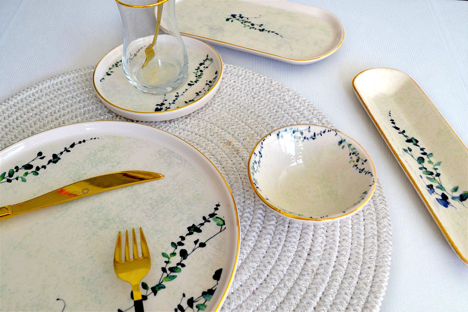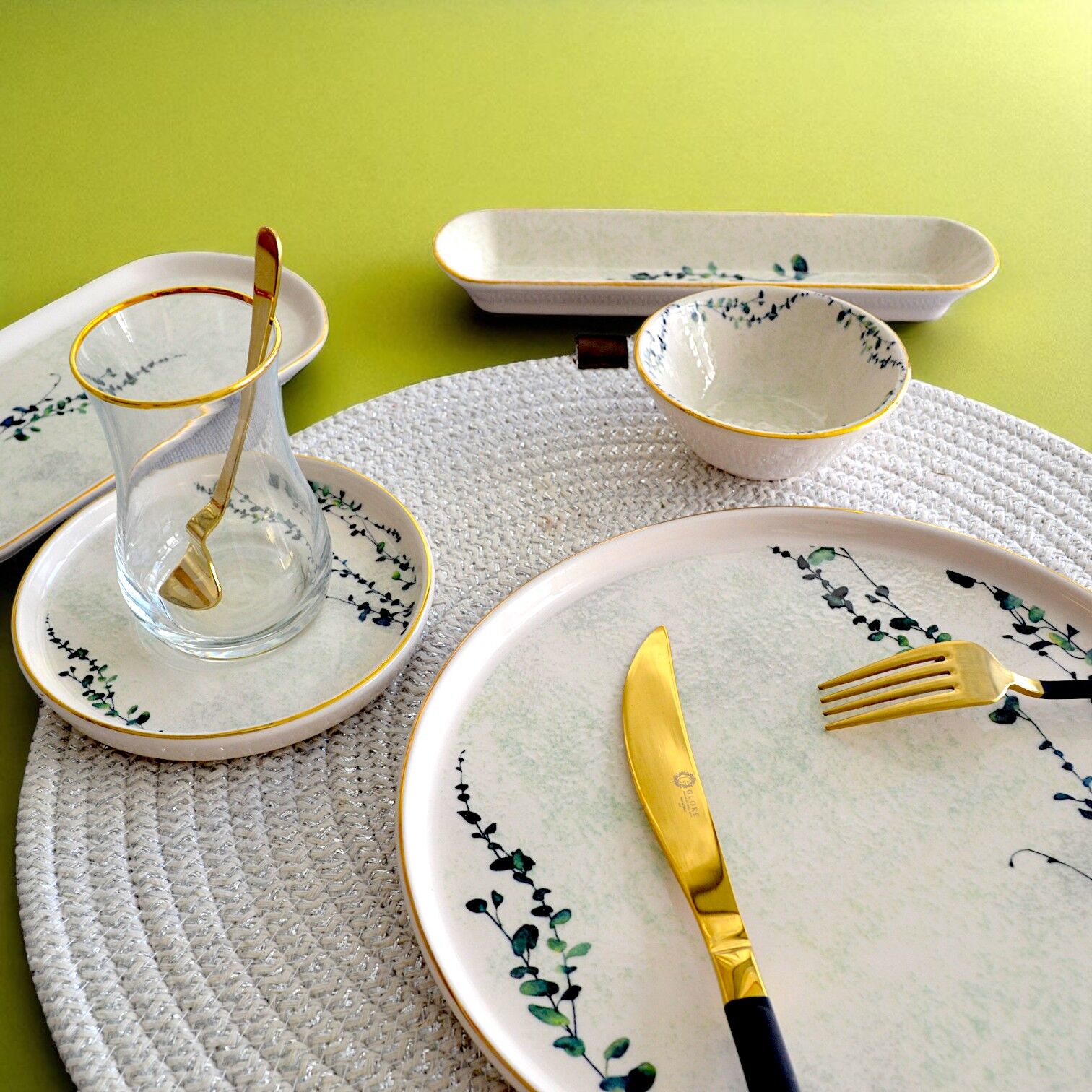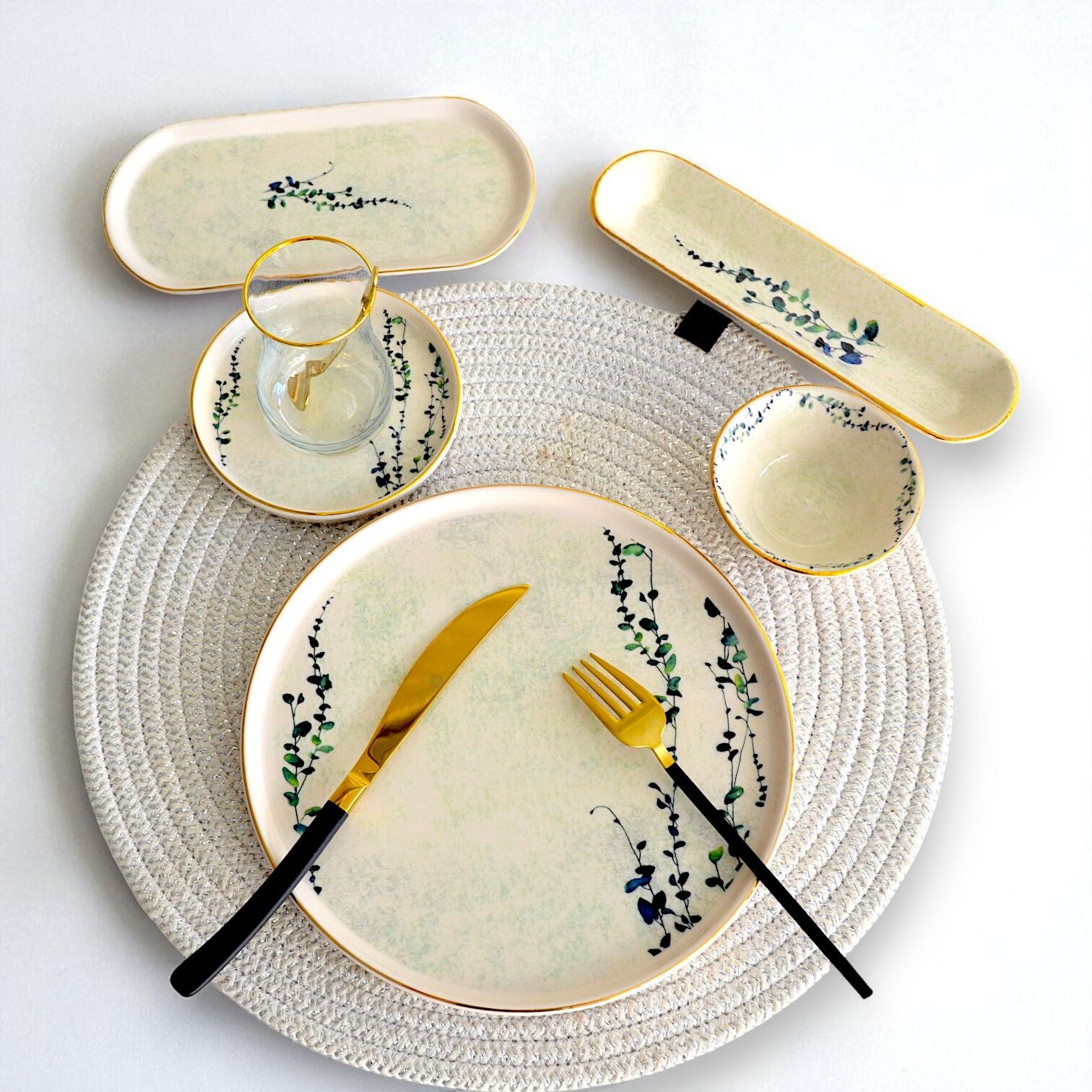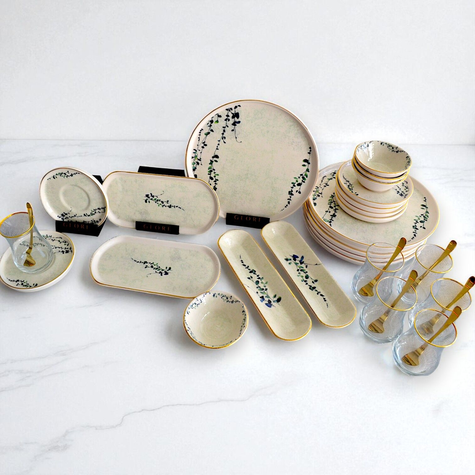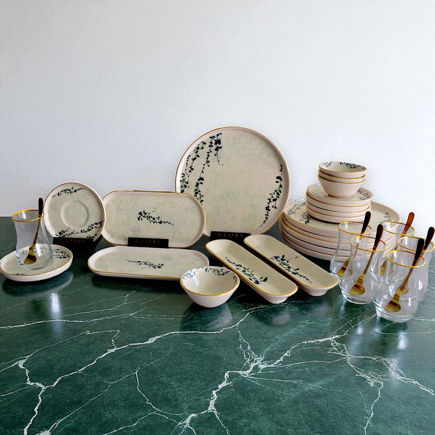 Glore İstanbul Sytlish 32 Parça 6 Kişilik Altın Yaldızlı Seramik Kahvaltı Takımı