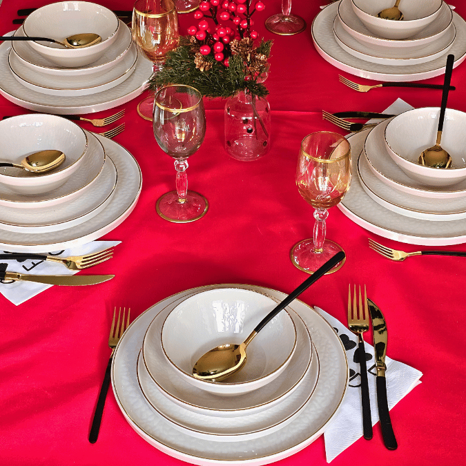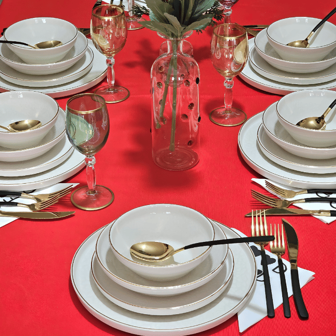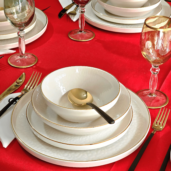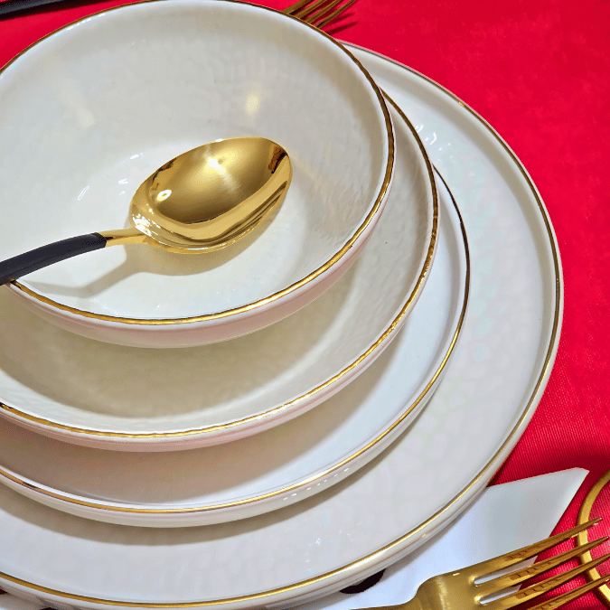 Glore Krem Altın Yaldızlı Seramik 24 Parça 6 Kişilik Yemek Takımı