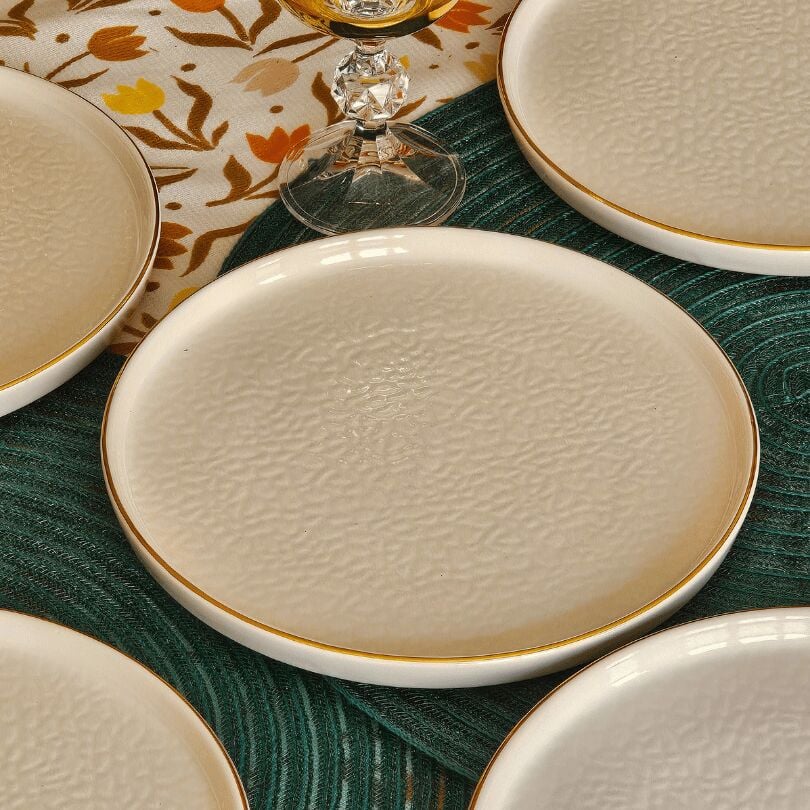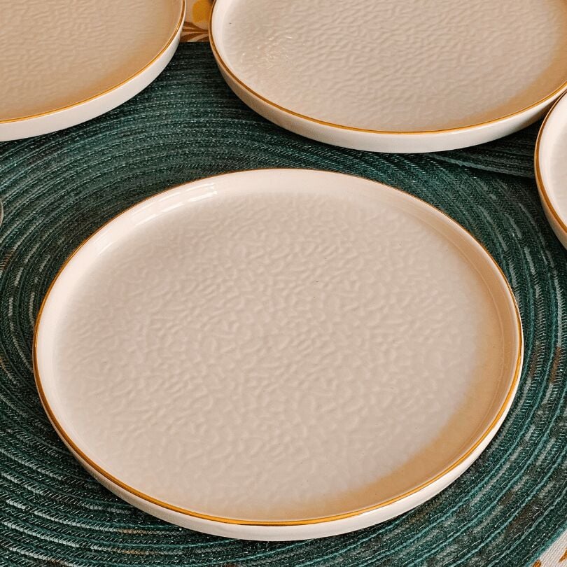 Glore Krem Altın Yaldızlı Seramik Pasta Tabağı