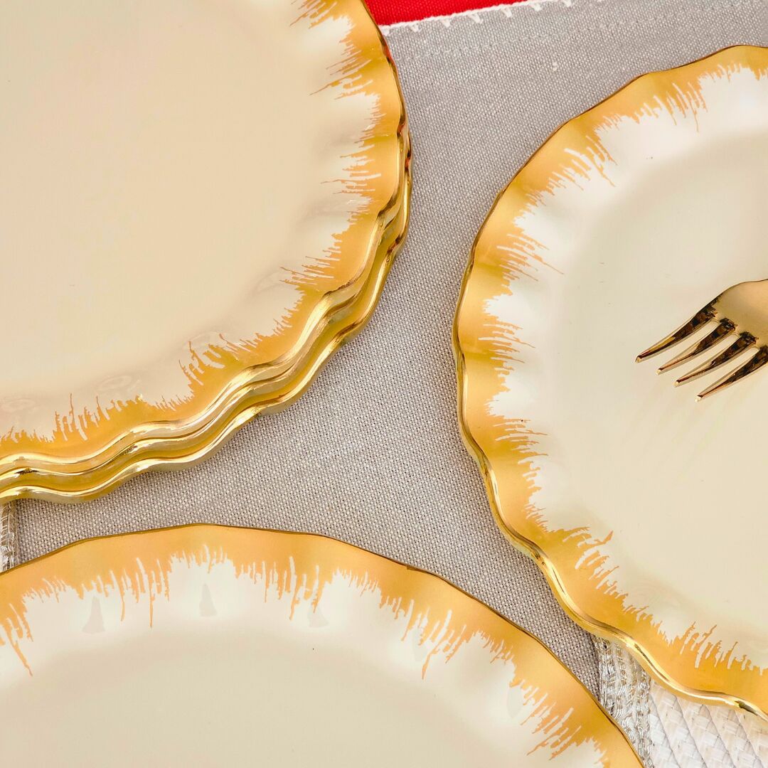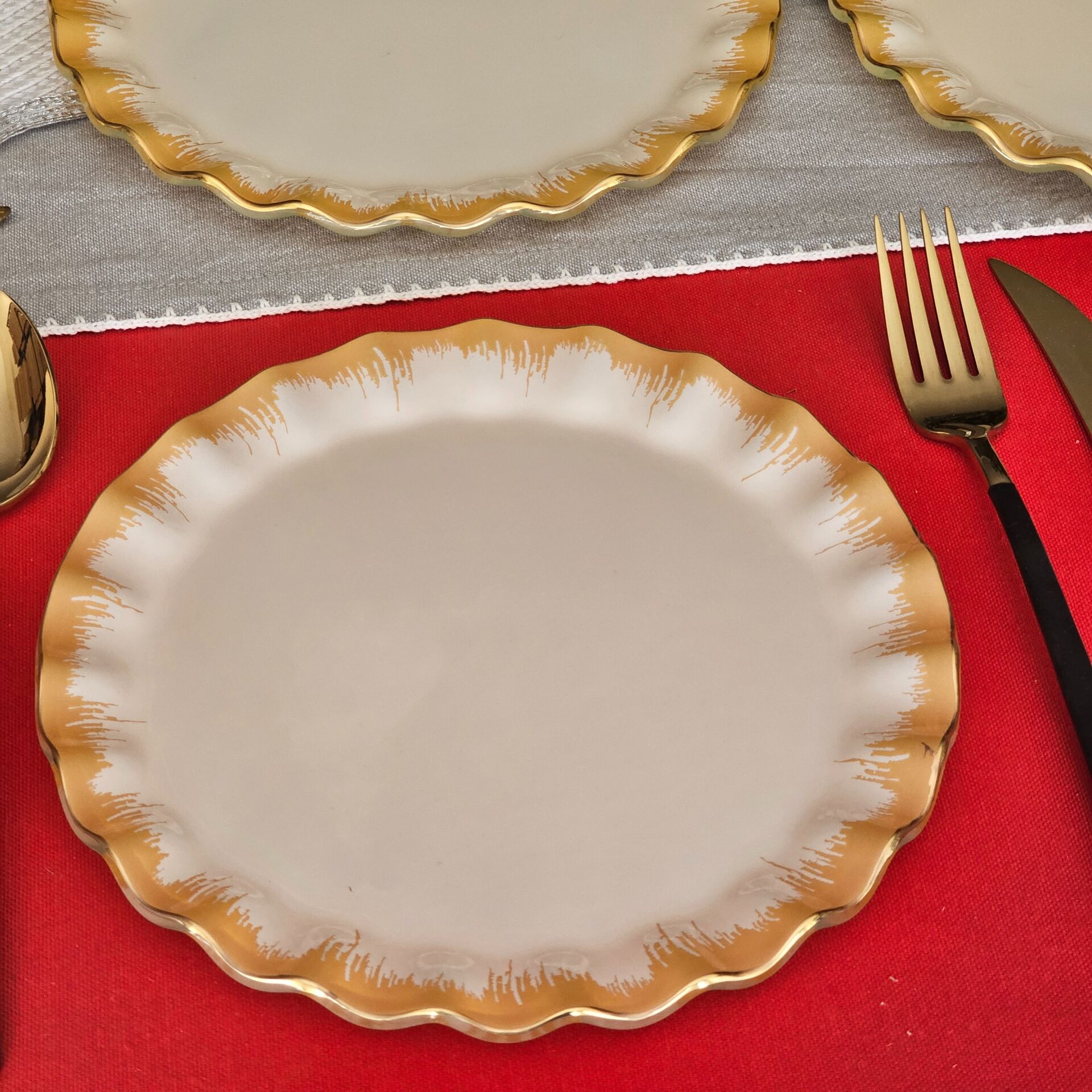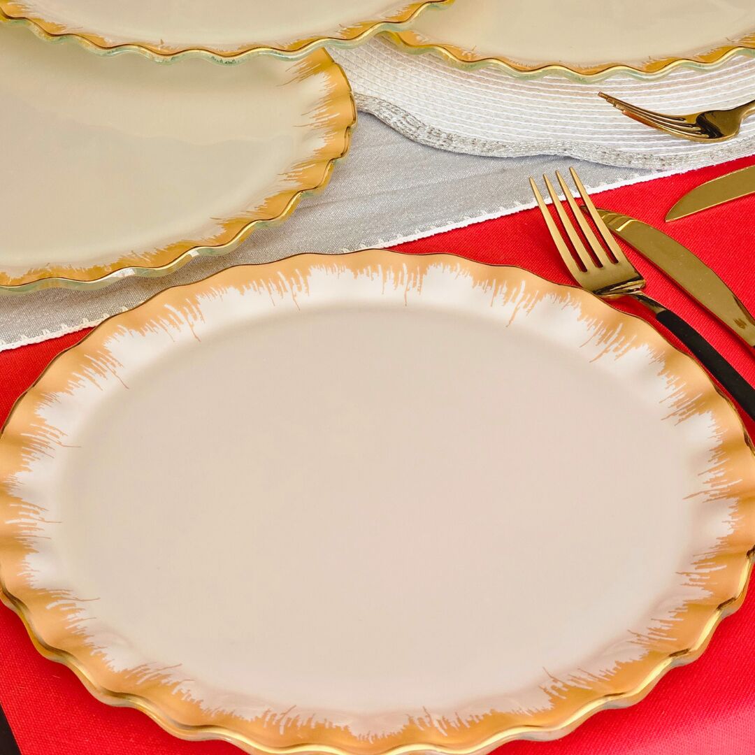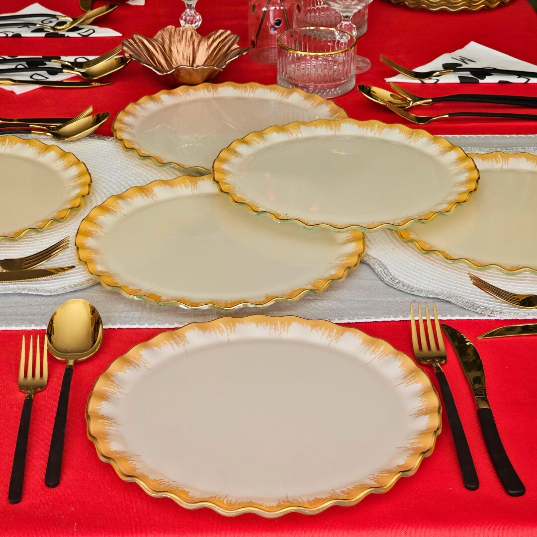 6 adet 21cm altın yaldızlı cam pasta tabağı