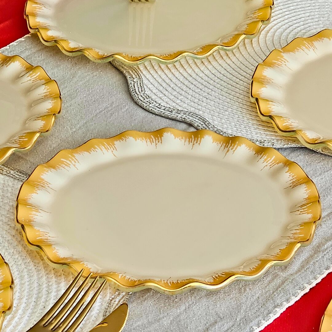 Glore Latte Altın Yaldızlı Cam Pasta Tabağı Seti