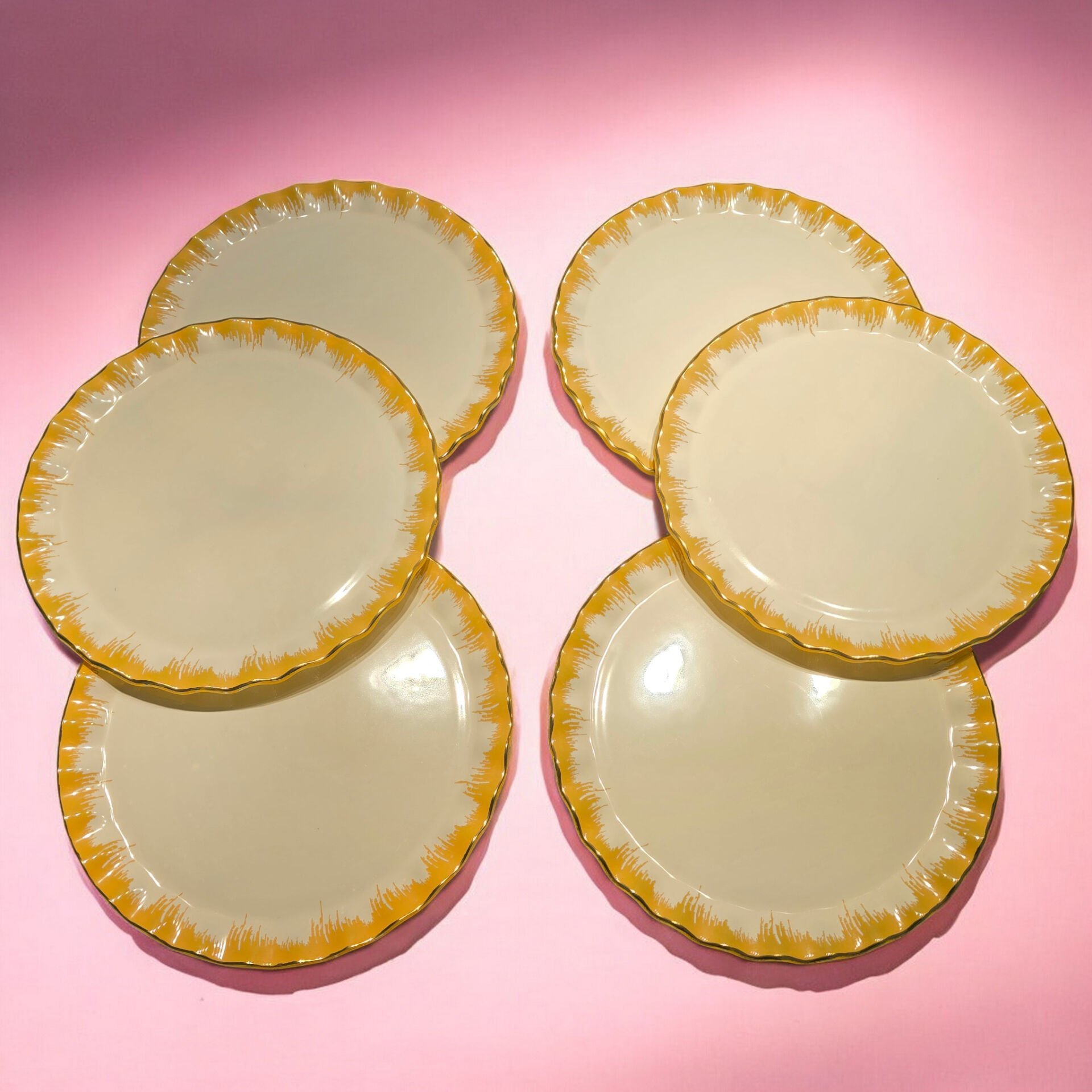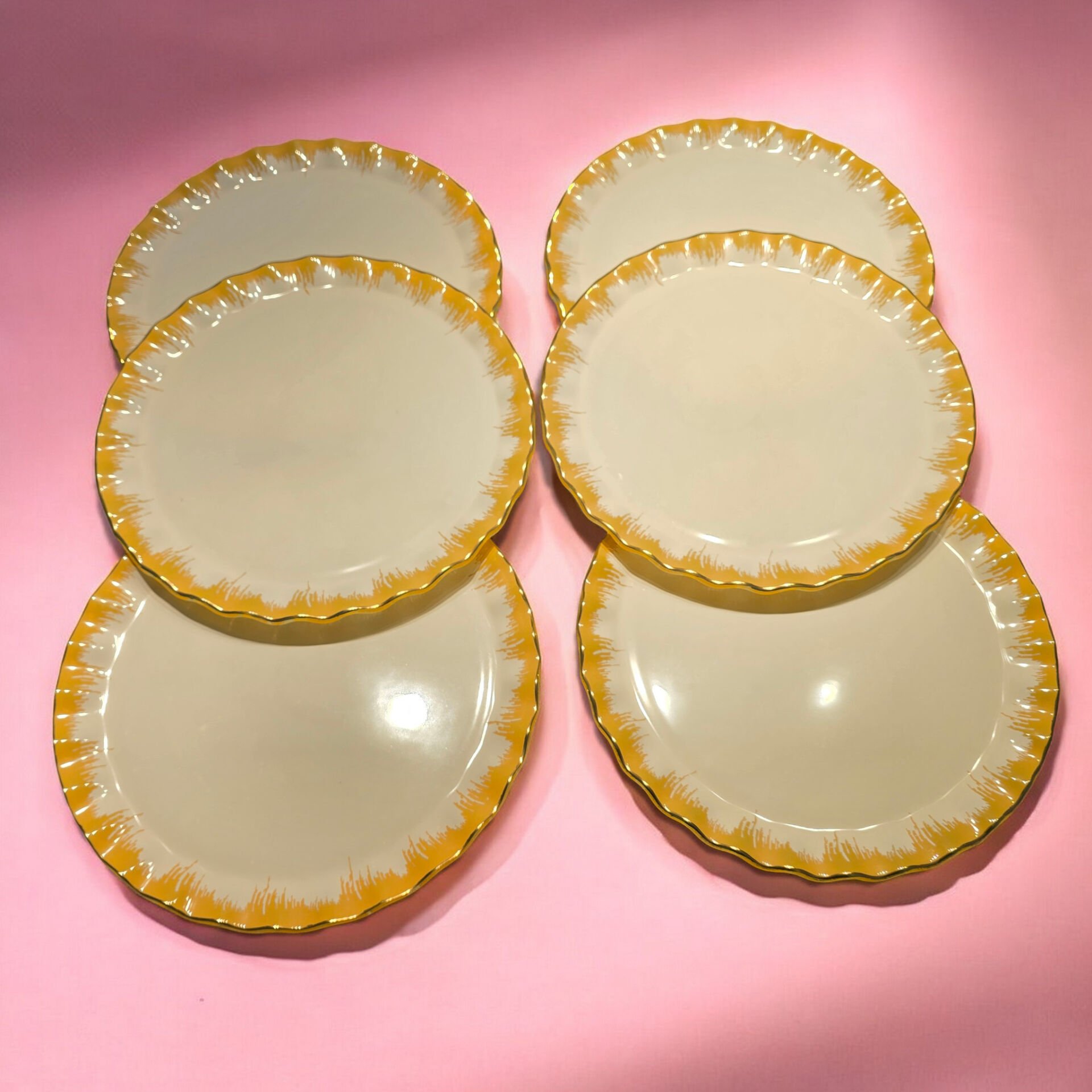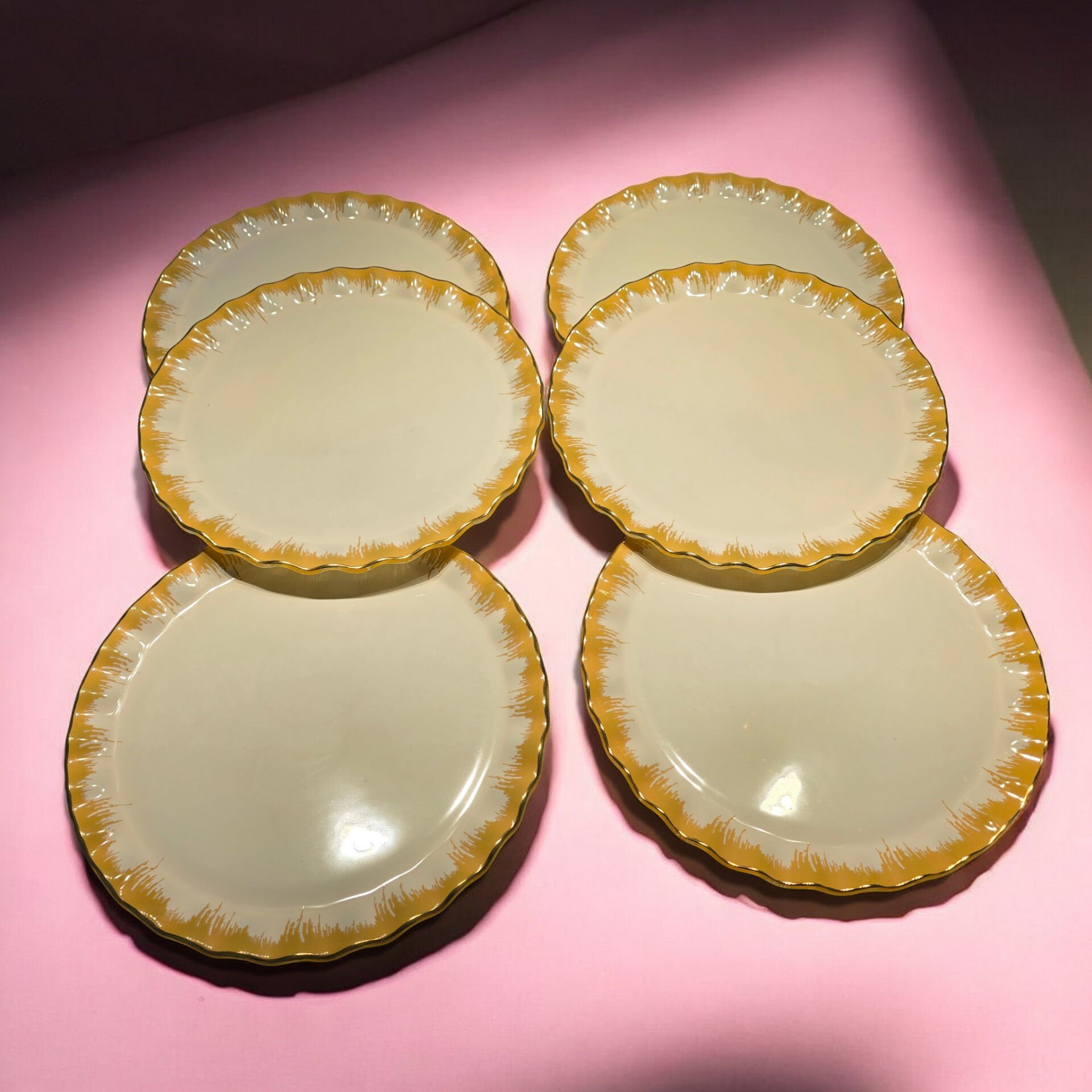 6 adet 26cm altın yaldızlı cam servis tabağı