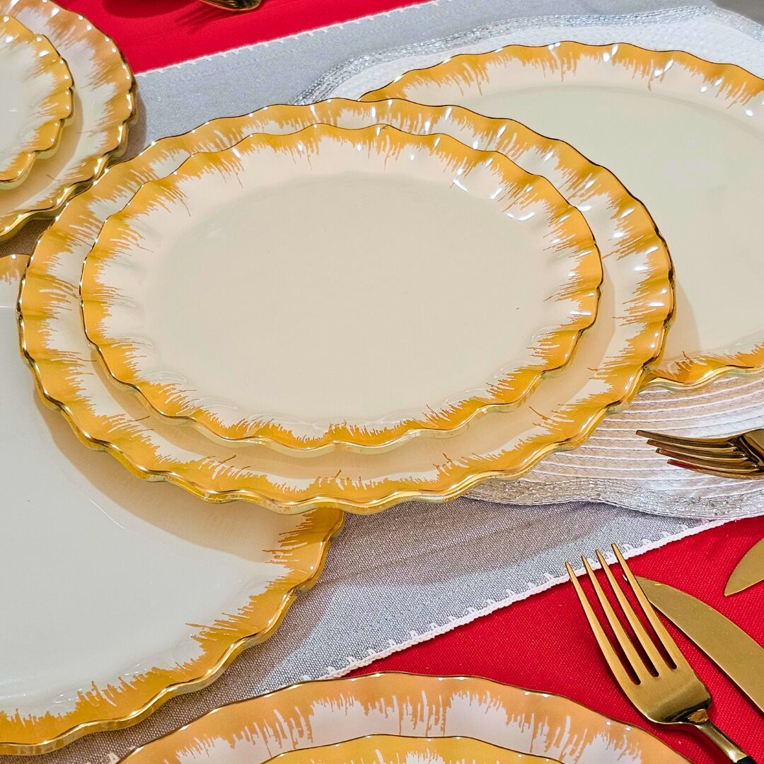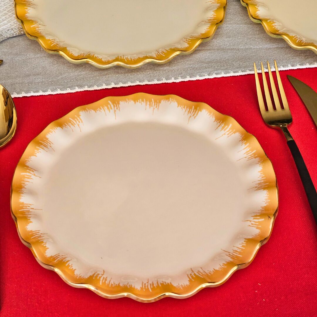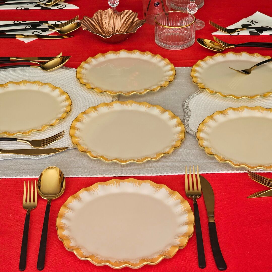 Glore Latte Altın Yaldızlı Servis Tabağı Seti